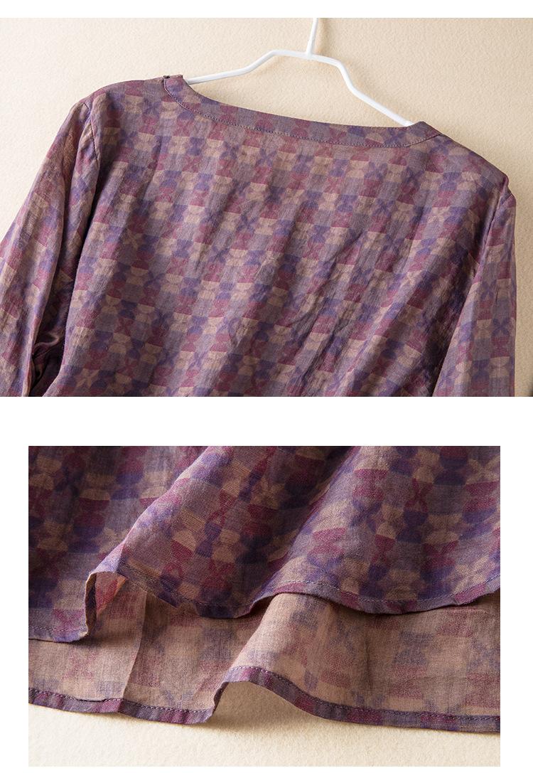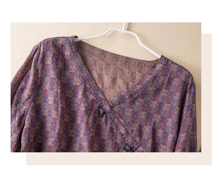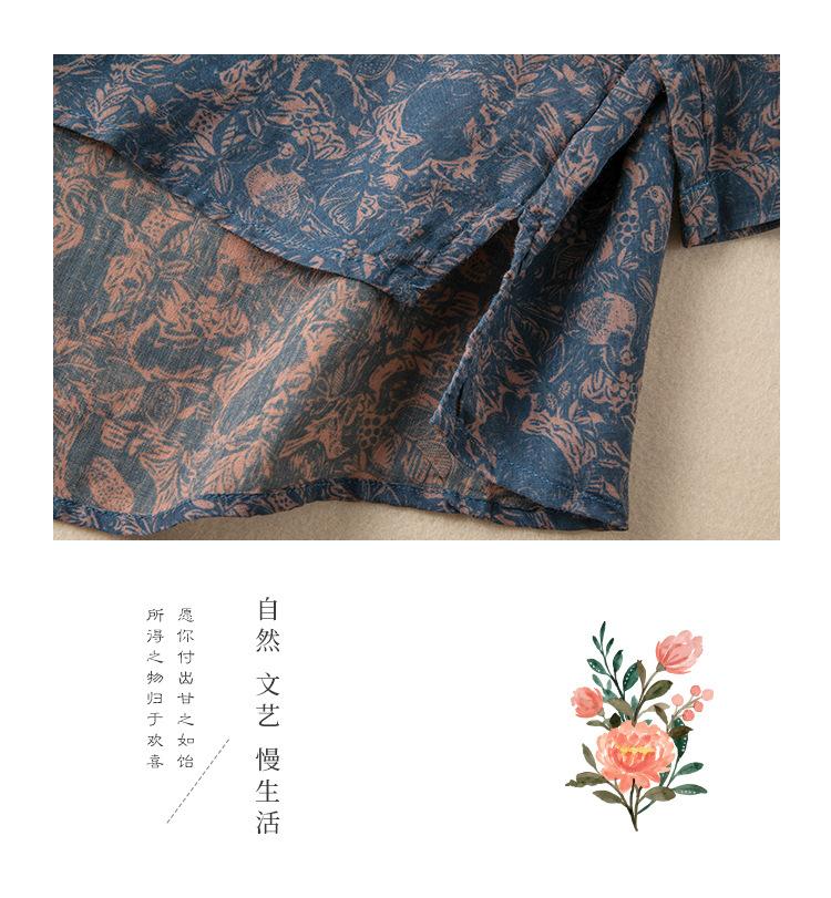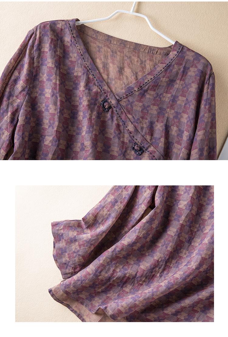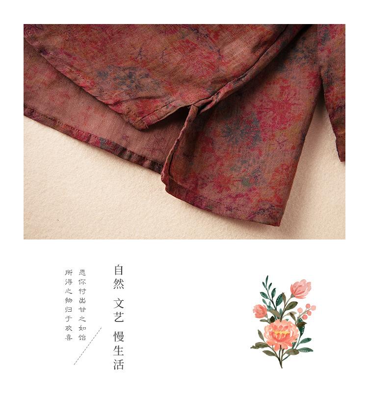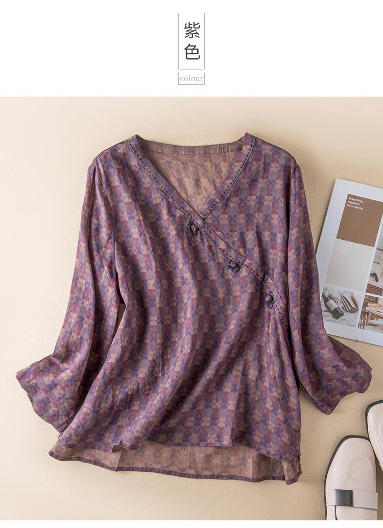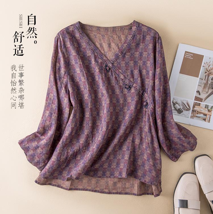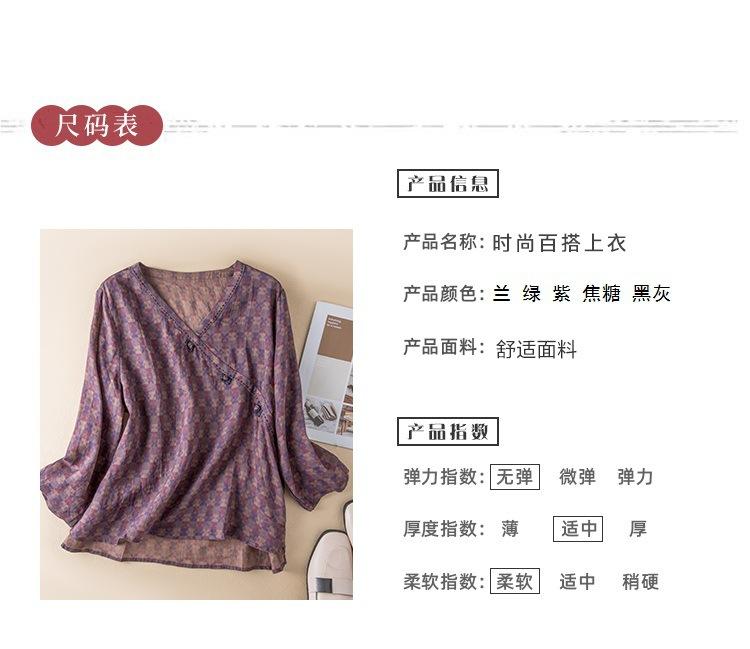 2025 Primavera Nuevo Simple Cuello en V Floral Vintage Literario Camisa Suelta Manga Larga Top Versátil Mujer
