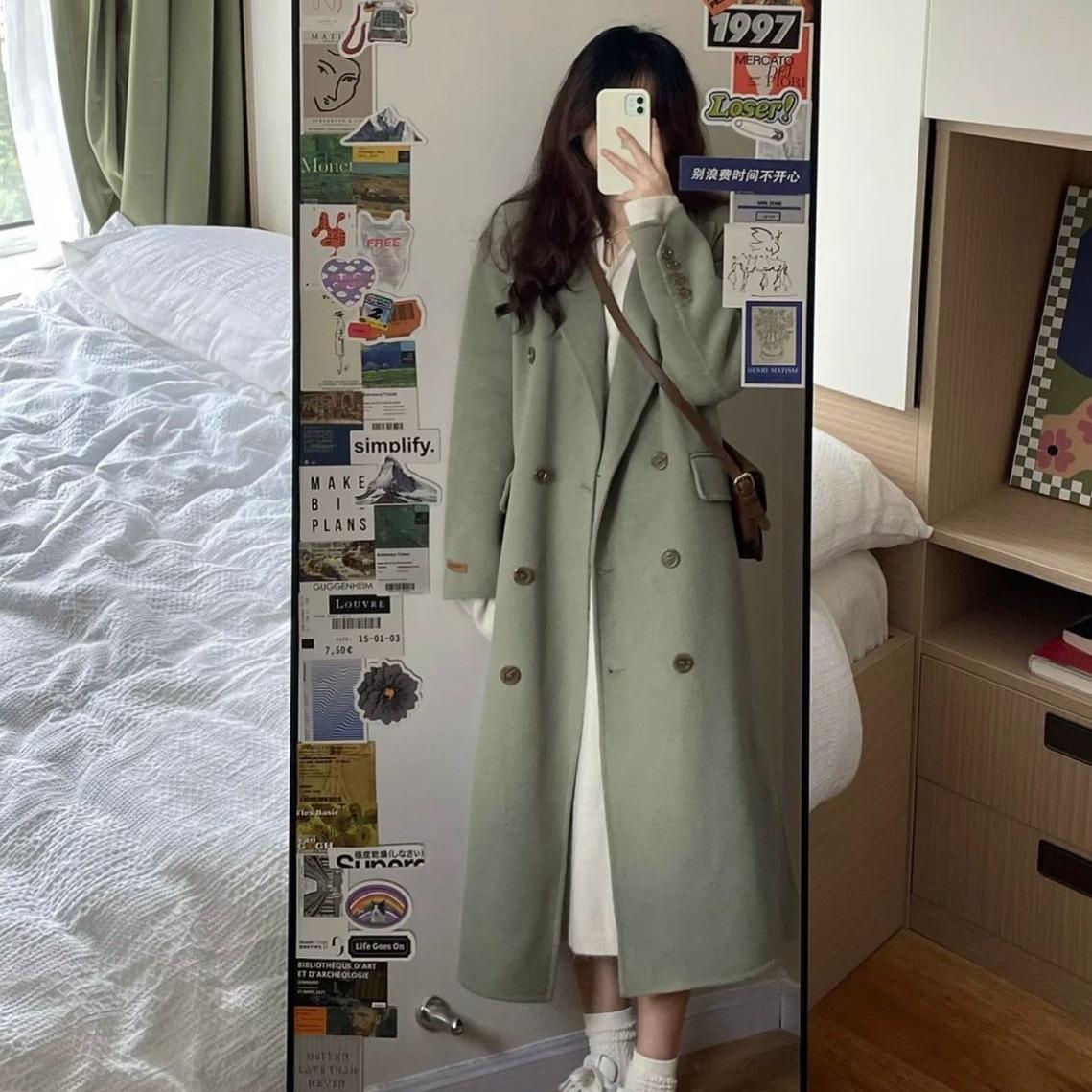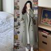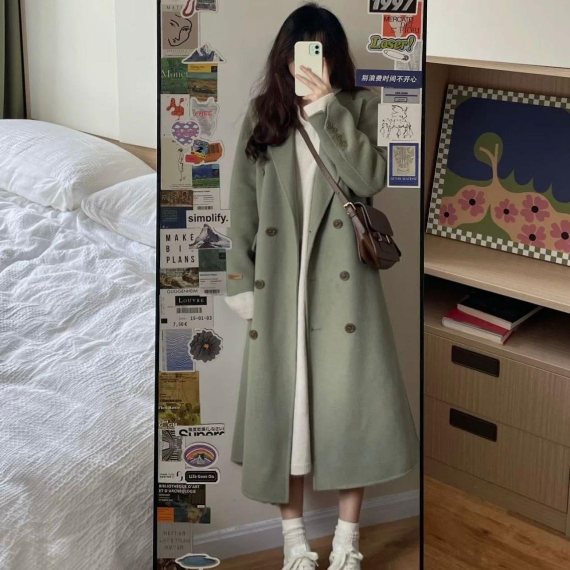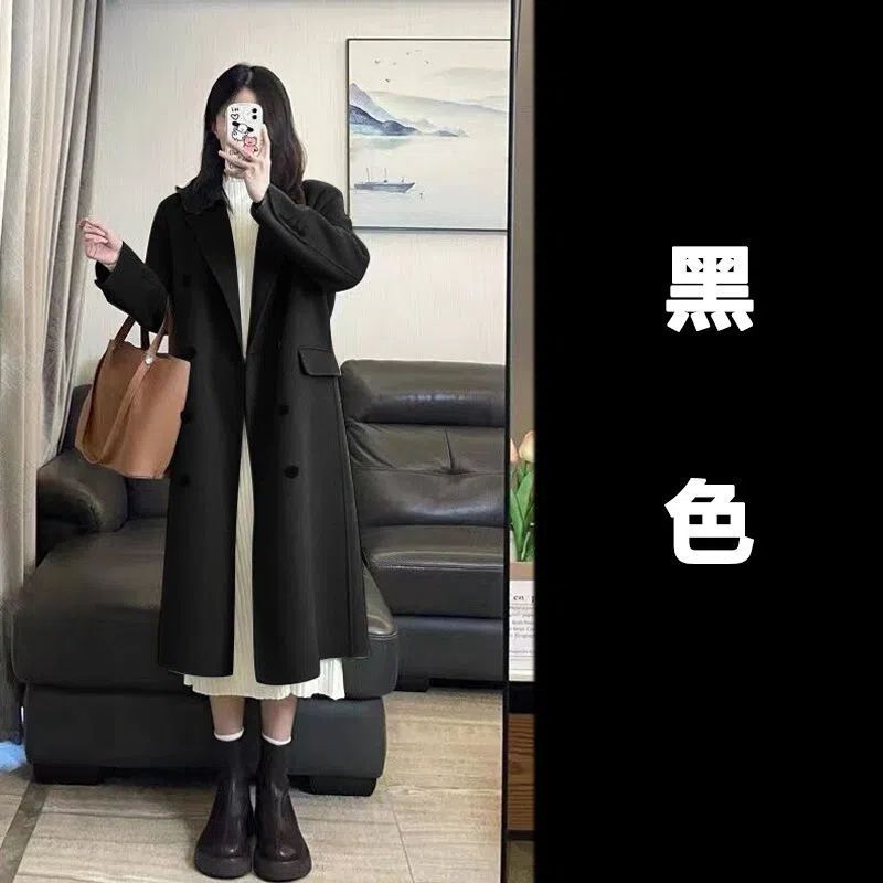 2025 Otoño/Invierno Estilo Francés Holgado Perezoso Moderno Elegante Color Sólido Abrigo Largo de Mezcla de Lana Ropa Exterior Estudiante