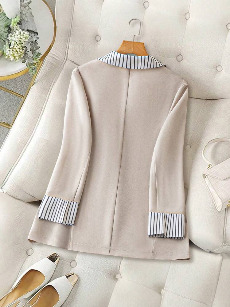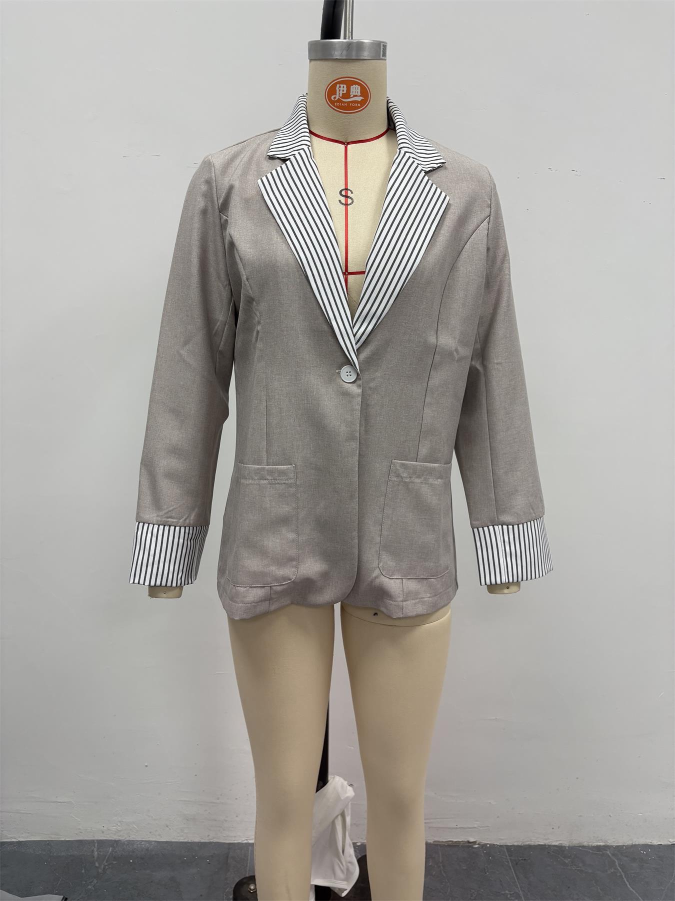 2025 Ropa nueva transfronteriza europea y americana para mujer, tops de estilo británico holgados y ajustados, chaqueta de traje con solapa a contraste para mujer
