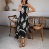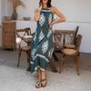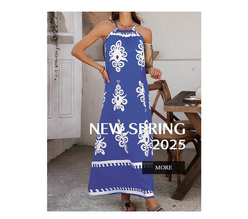 Vestido de Verano/Primavera 2025 Nuevo Casual Bohemio Estilo Vacacional Bloque de Color Halter Sin Mangas Mujer