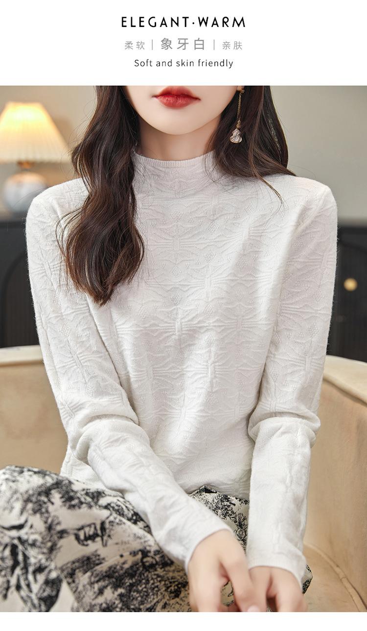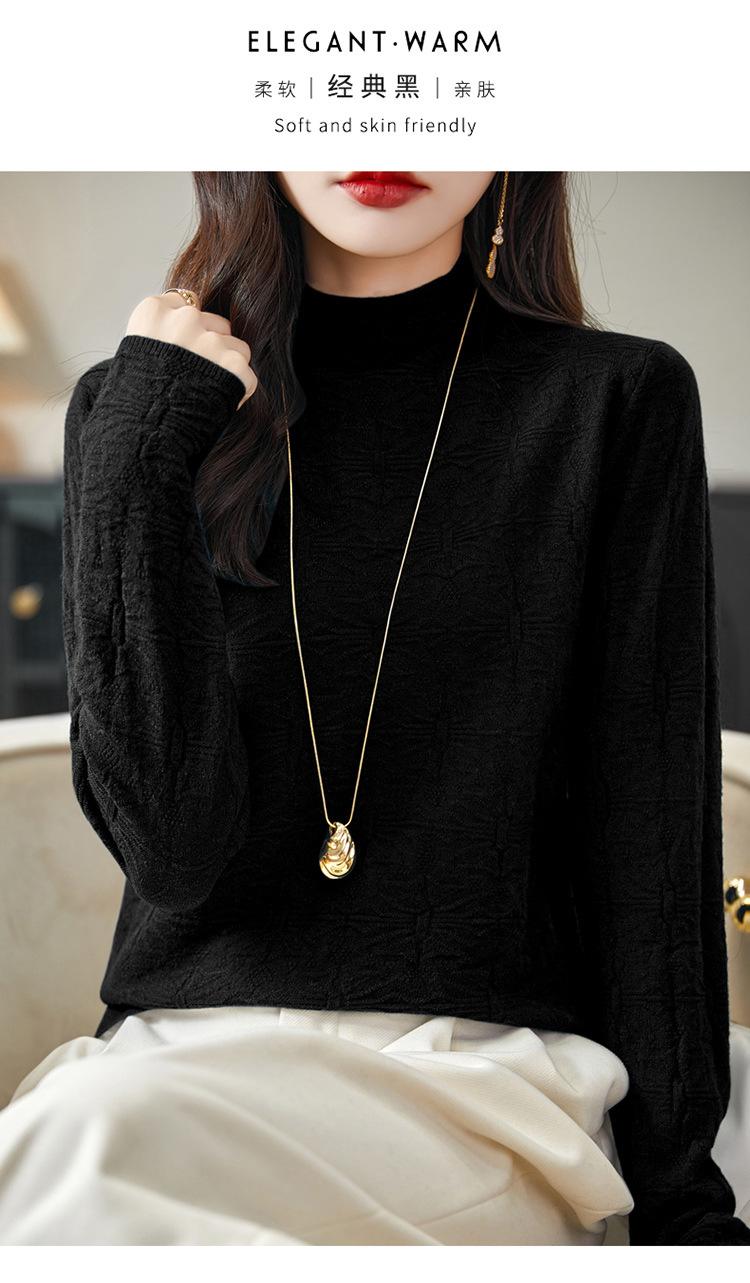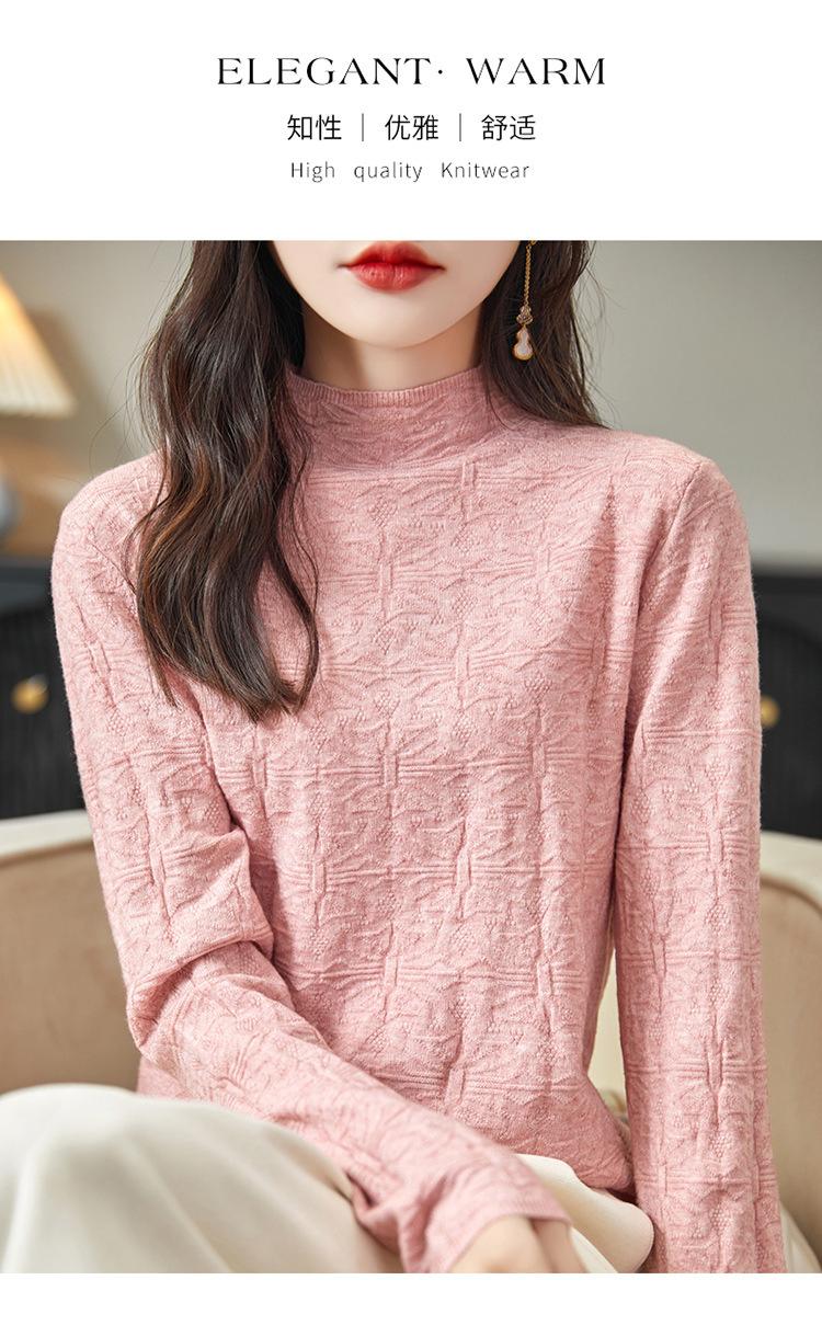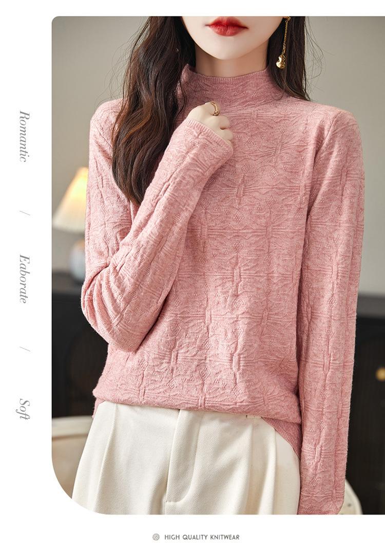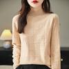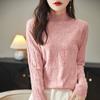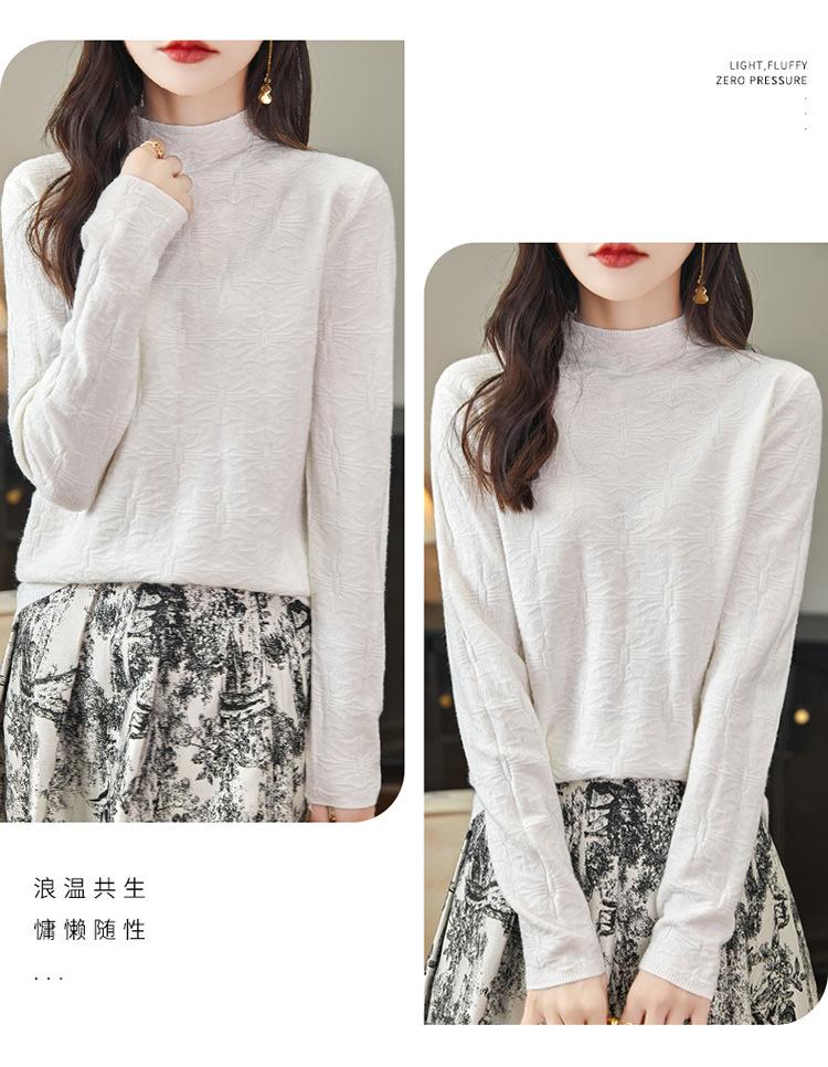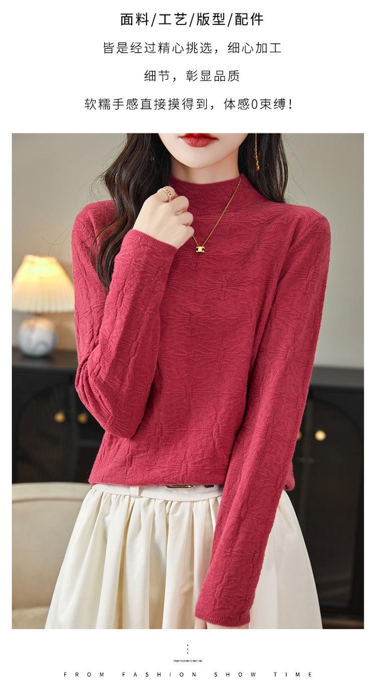 Transfronterizo 2025 otoño e invierno nuevo suéter de punto jacquard de mariposa de cuello semi alto suelto para mujer, camiseta básica de terciopelo Andy corta para mujer invierno