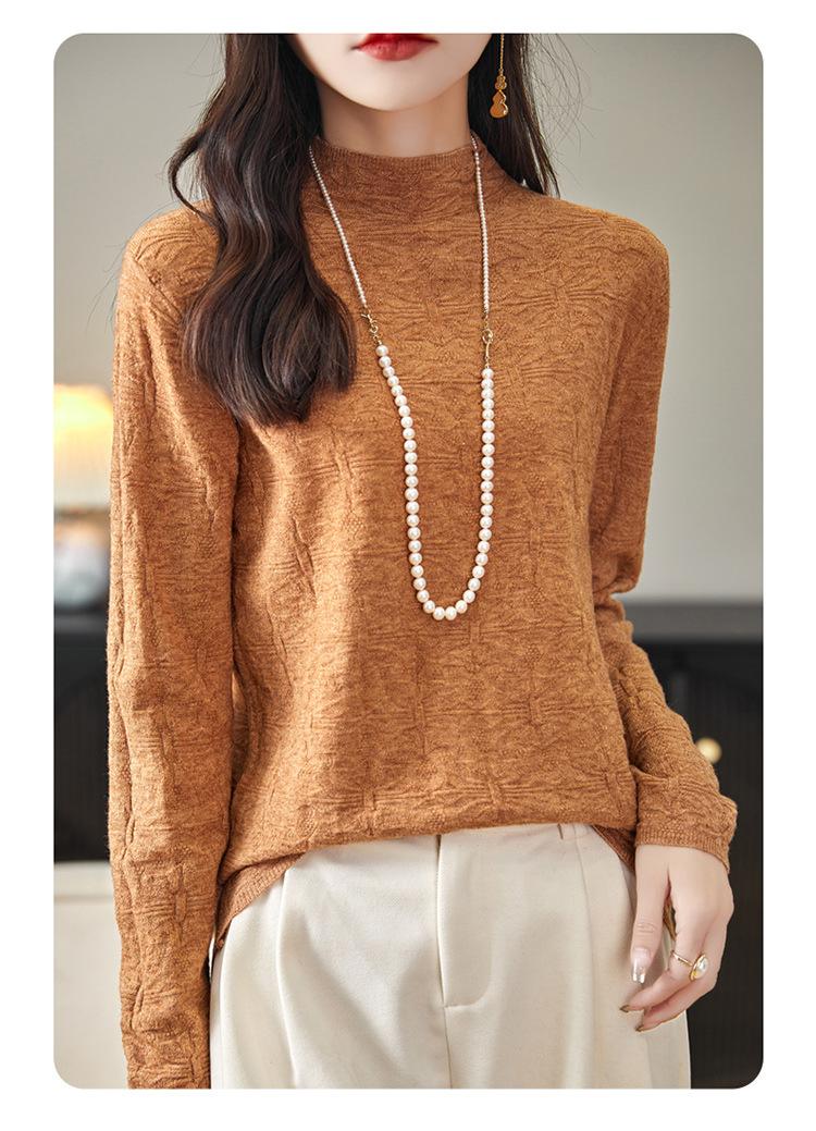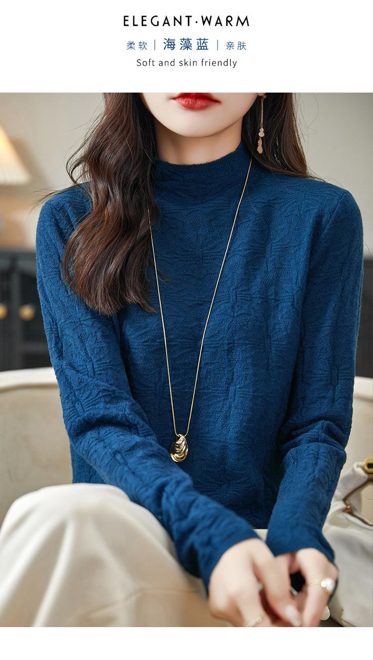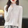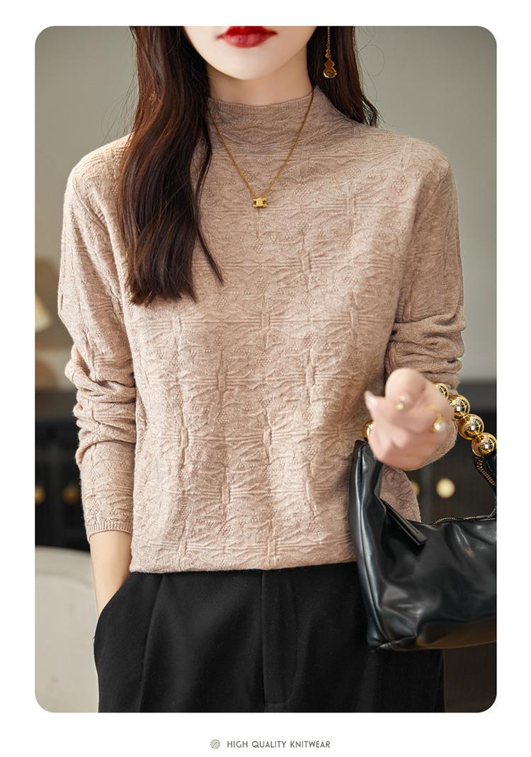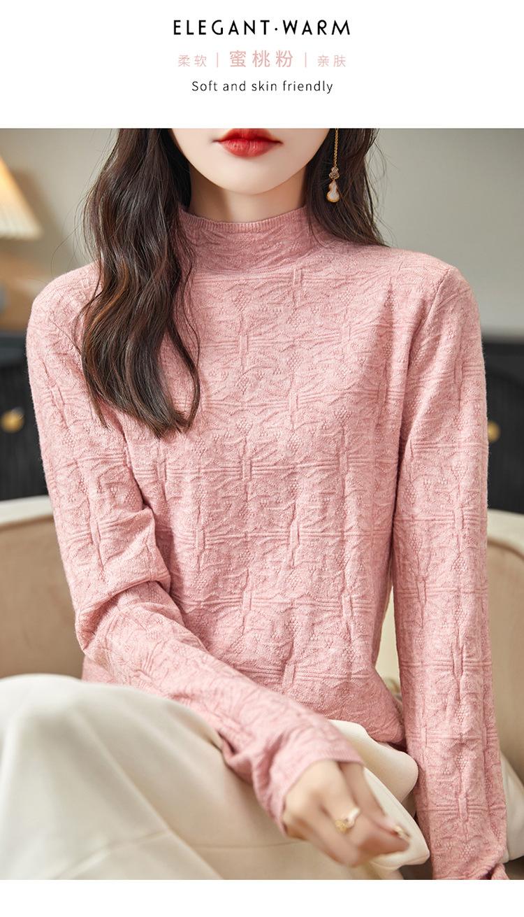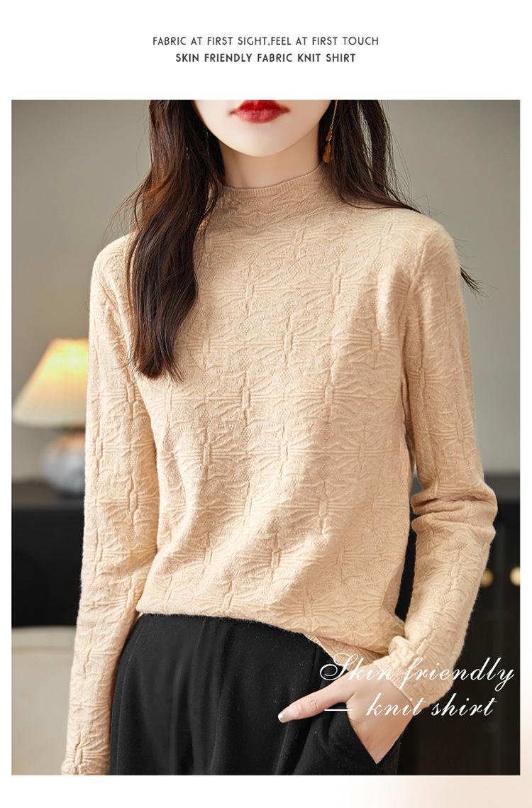 Transfronterizo 2025 otoño e invierno nuevo suéter de punto jacquard de mariposa de cuello semi alto suelto para mujer, camiseta básica de terciopelo Andy corta para mujer invierno