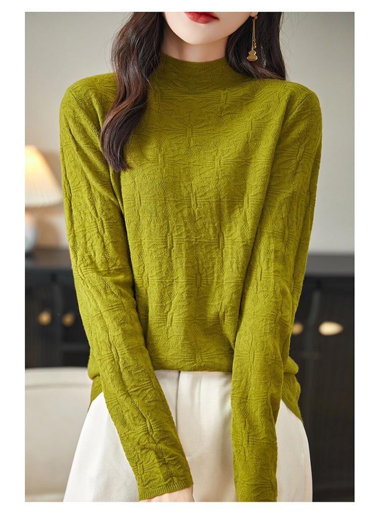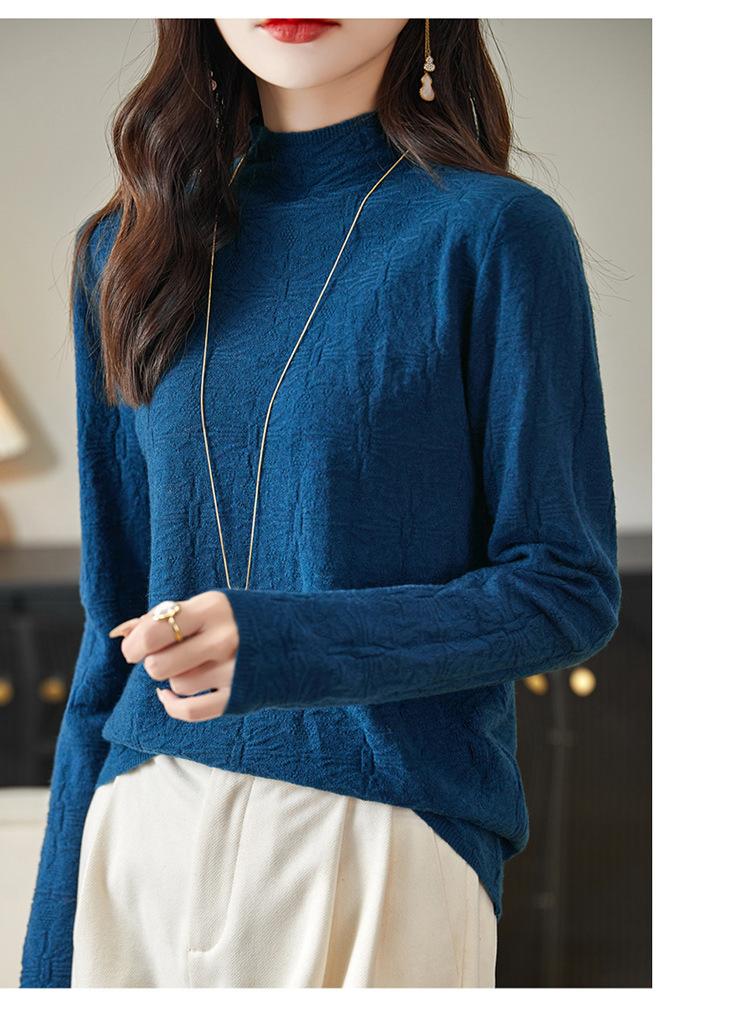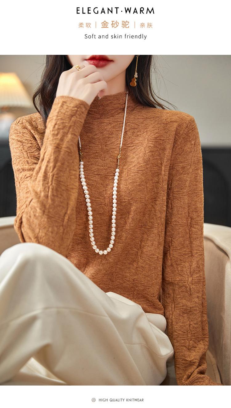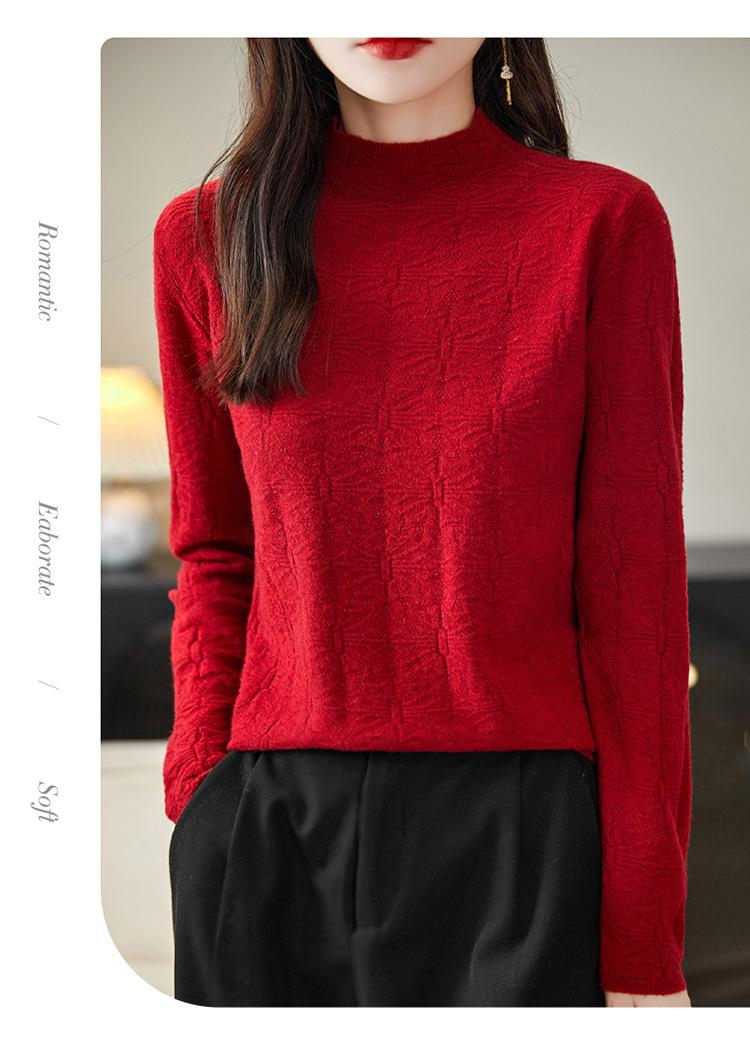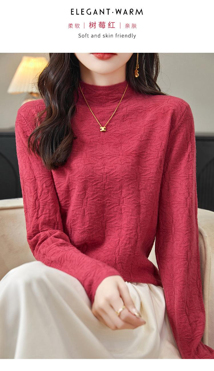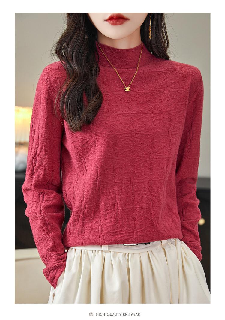 Transfronterizo 2025 otoño e invierno nuevo suéter de punto jacquard de mariposa de cuello semi alto suelto para mujer, camiseta básica de terciopelo Andy corta para mujer invierno