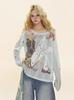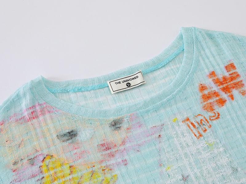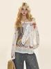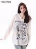 Camiseta de Manga Larga Tkpa American Retro con Graffiti de Letras para Mujer Otoño 2025 Corte Holgado Recortada Gasa Protector Solar Blusa Top
