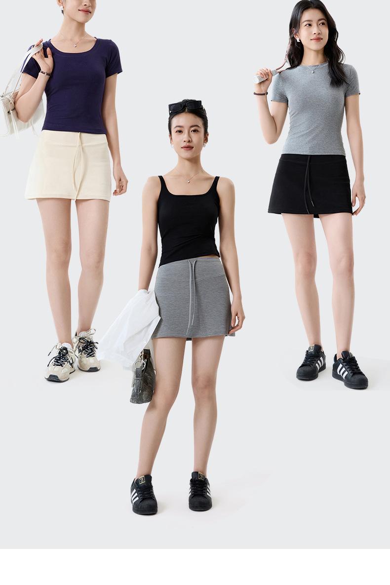 Verano Antideslumbrante Modal Falda Hipster Cintura Ajustada Adelgazante Cintura Alta Deportes Casual Gris Falda Línea A