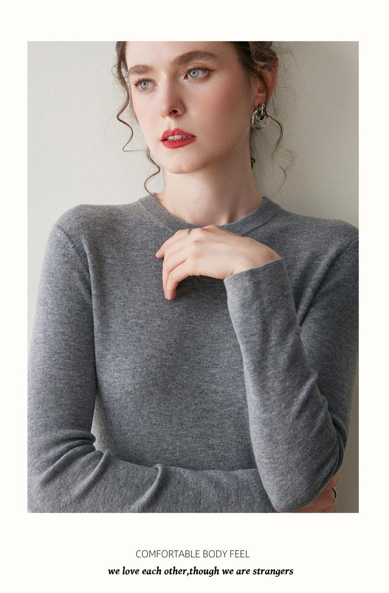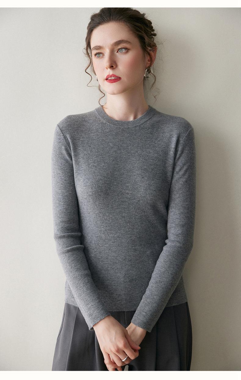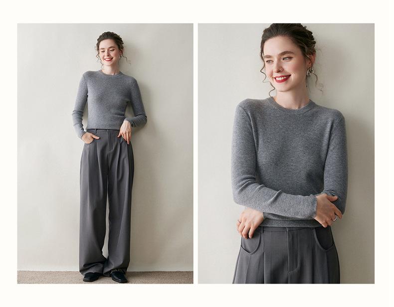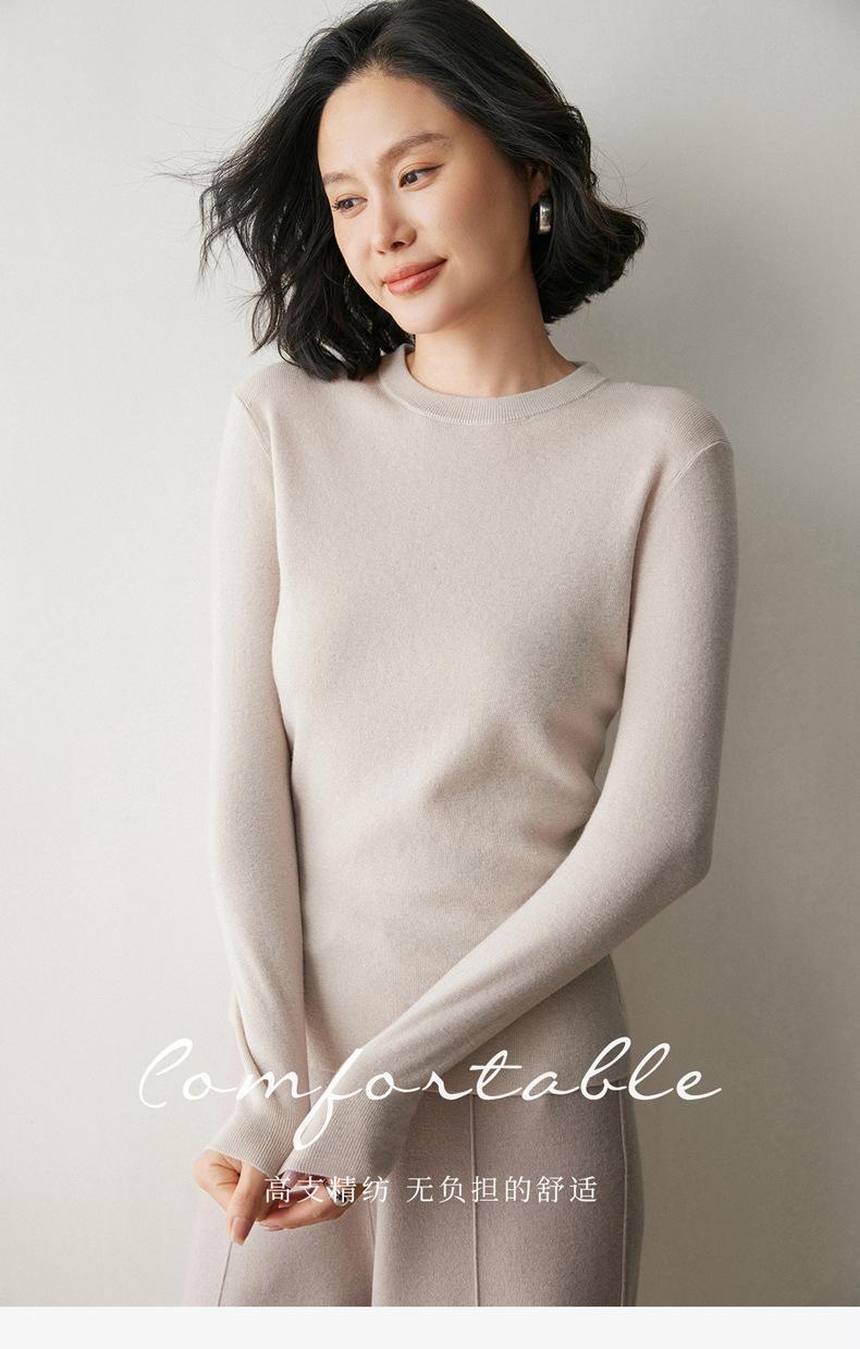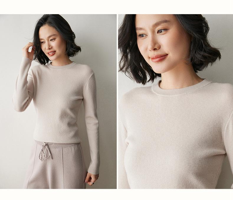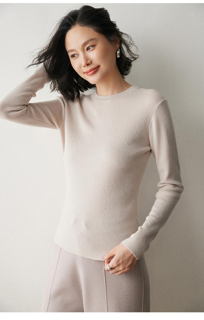 Suéter de Cachemira para Mujer de Cuello Redondo y Color Sólido Nuevo Otoño/Invierno 2025 Sencillo Versátil Cálido Capa Interior Cómodo Suave al Tacto Prendas de Punto