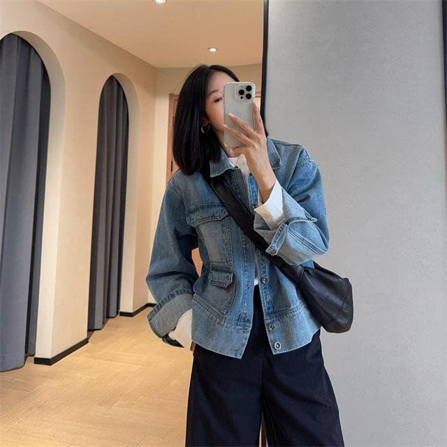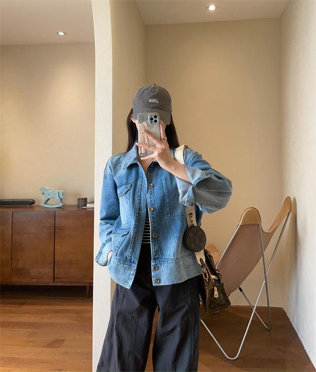 ¡Chaqueta de mezclilla elegante y versátil con cuello doblado!