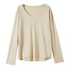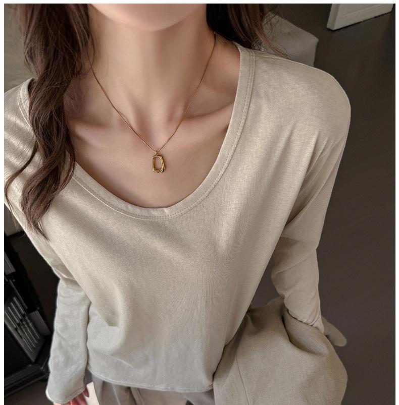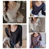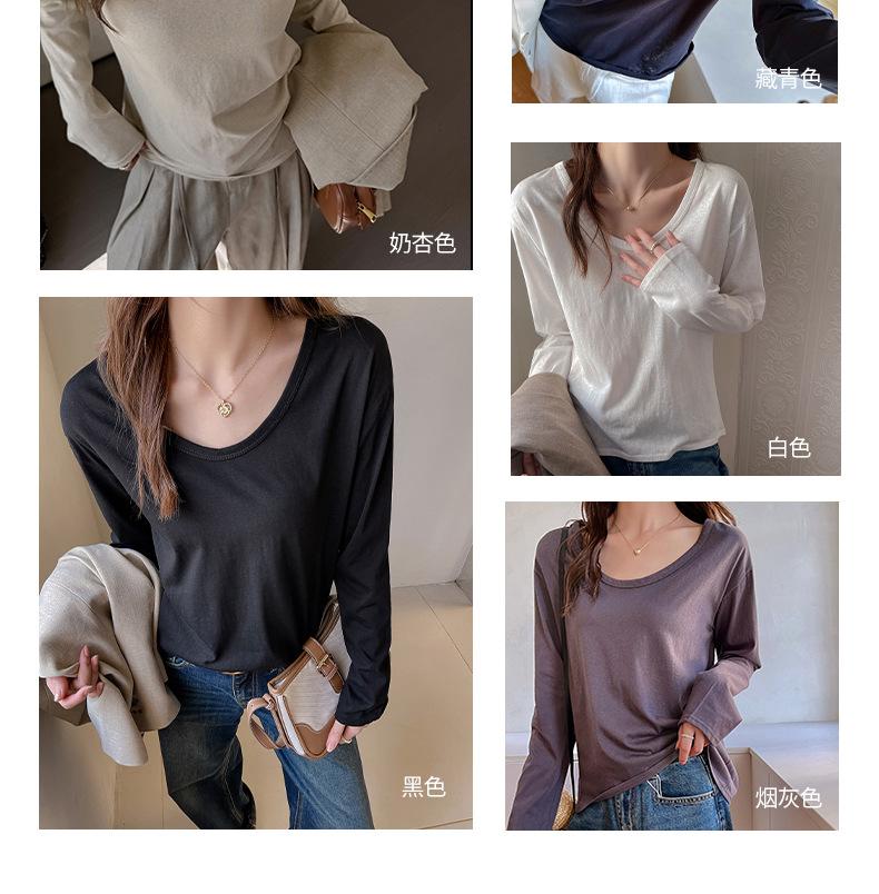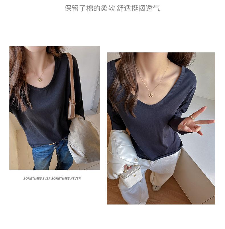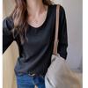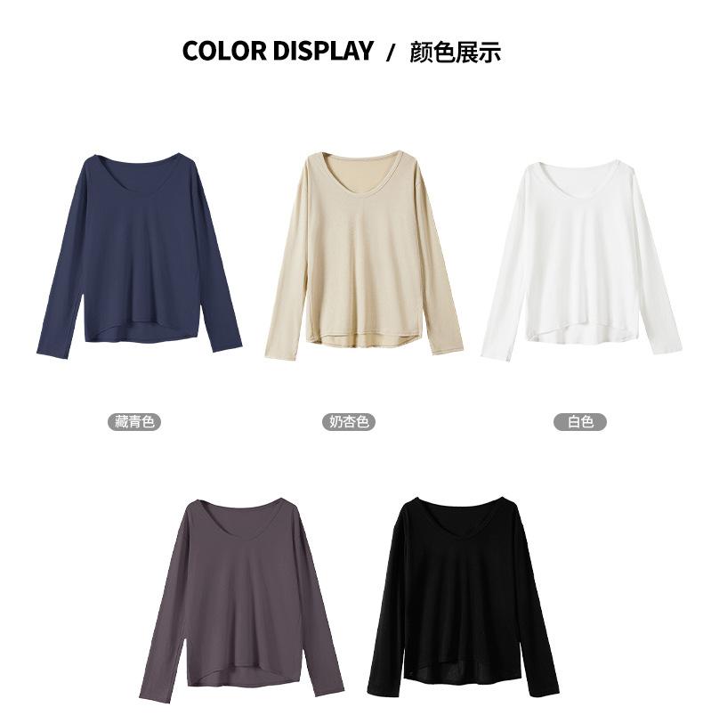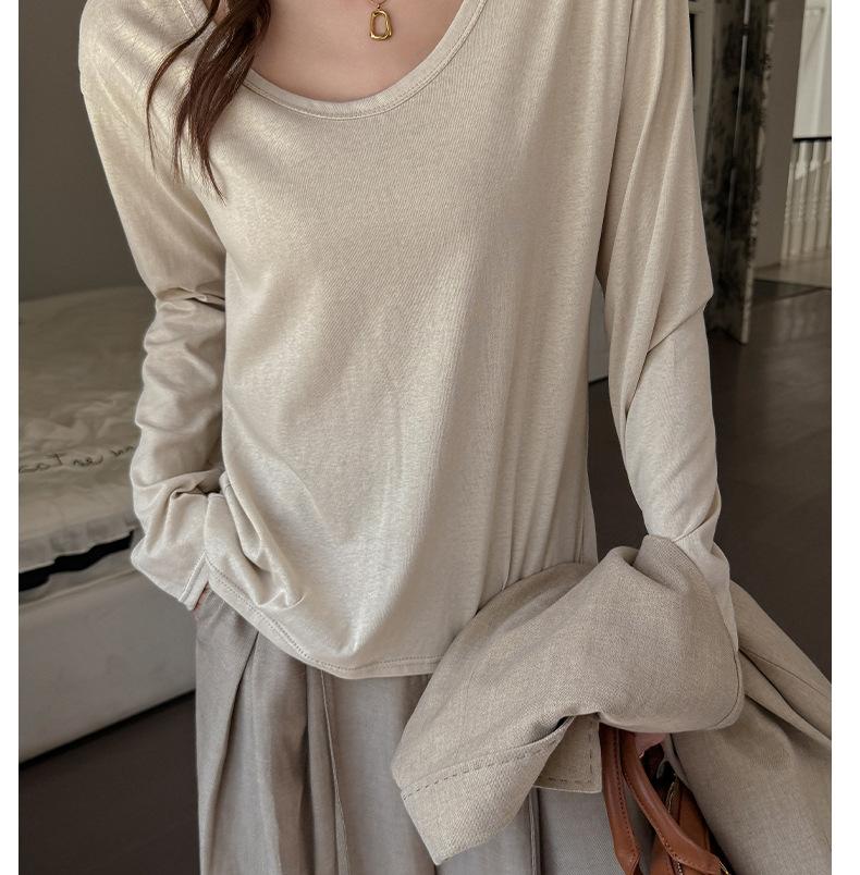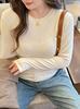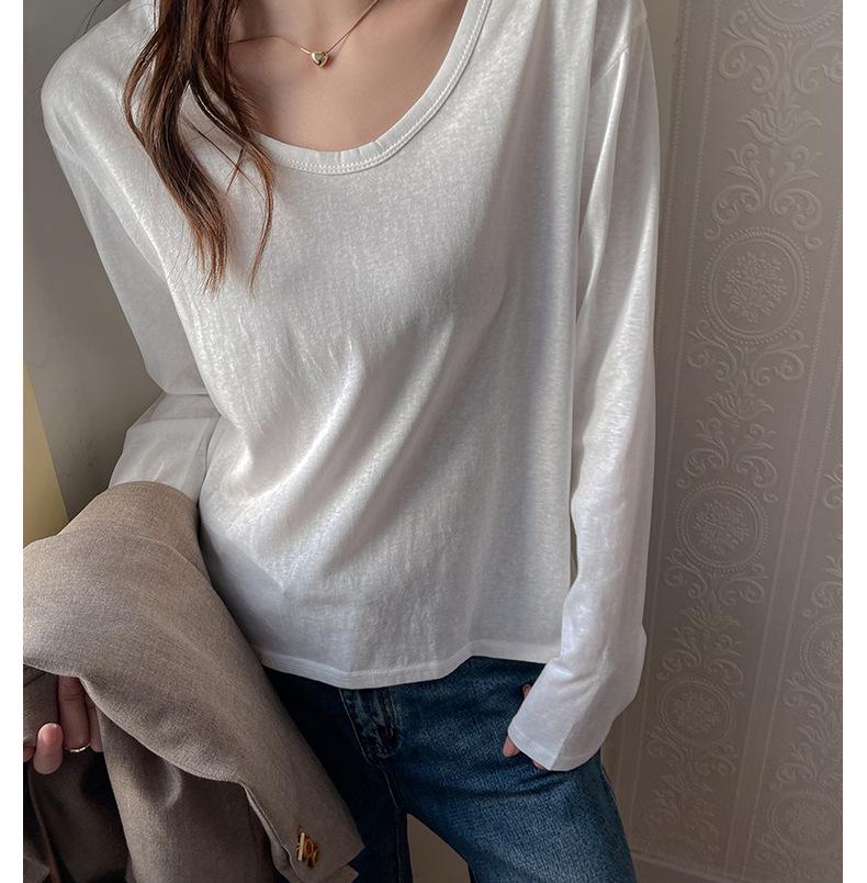 Playera de Manga Larga de Hombro Recto Seleccionada Cuidadosamente para Mujer, Principios de Otoño, Color Sólido, Casual, Versátil, Capa Base, Ropa Interior, Estilo Holgado y Relajado, Top