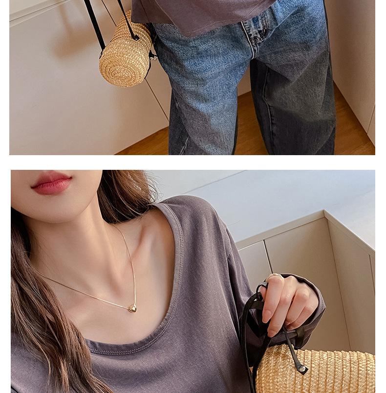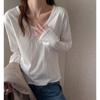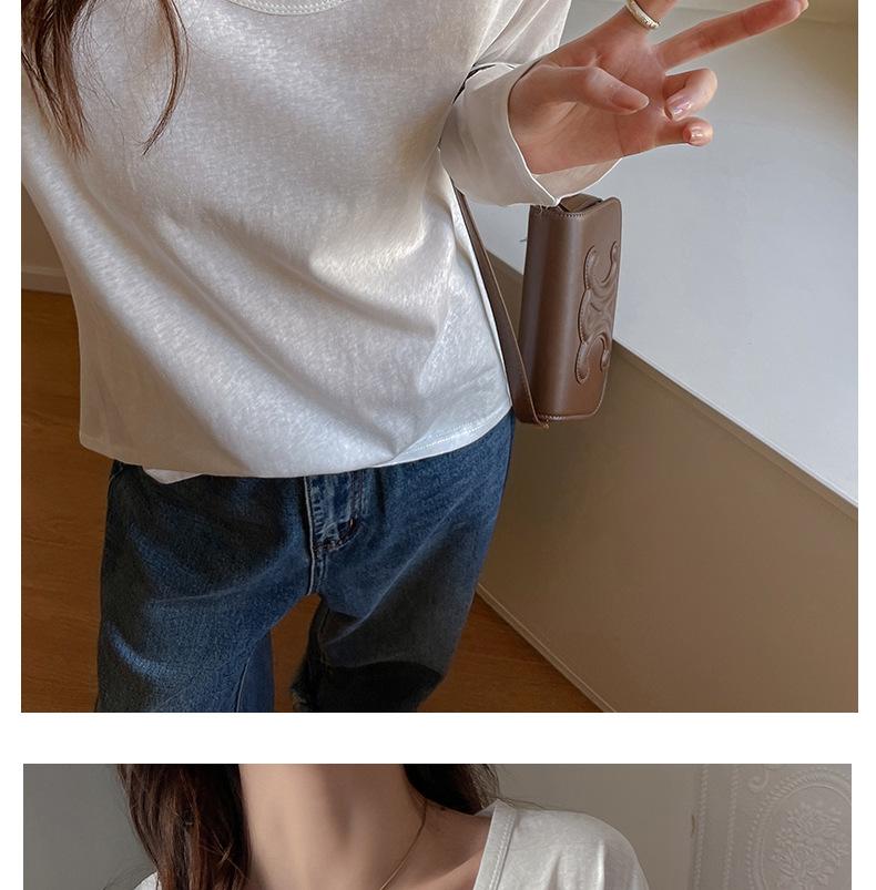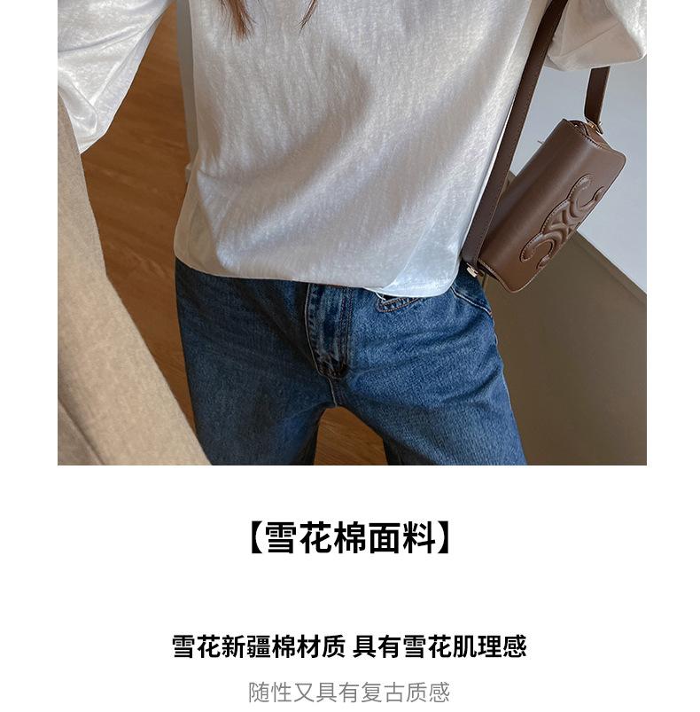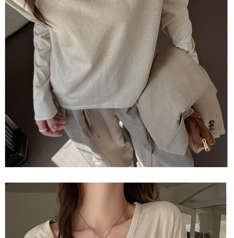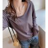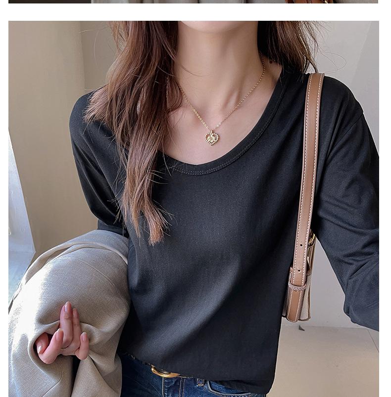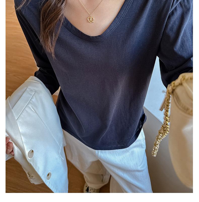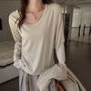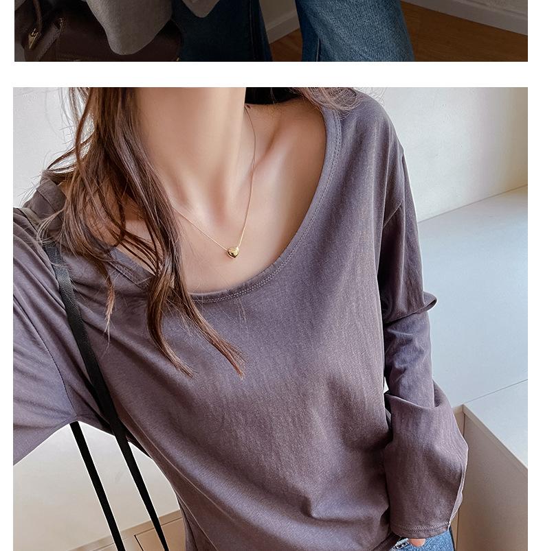 Playera de Manga Larga de Hombro Recto Seleccionada Cuidadosamente para Mujer, Principios de Otoño, Color Sólido, Casual, Versátil, Capa Base, Ropa Interior, Estilo Holgado y Relajado, Top