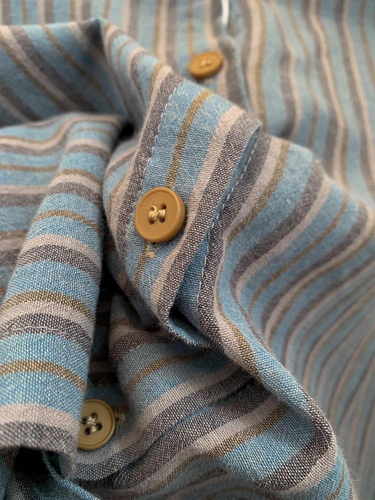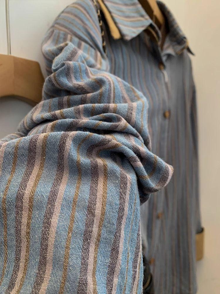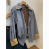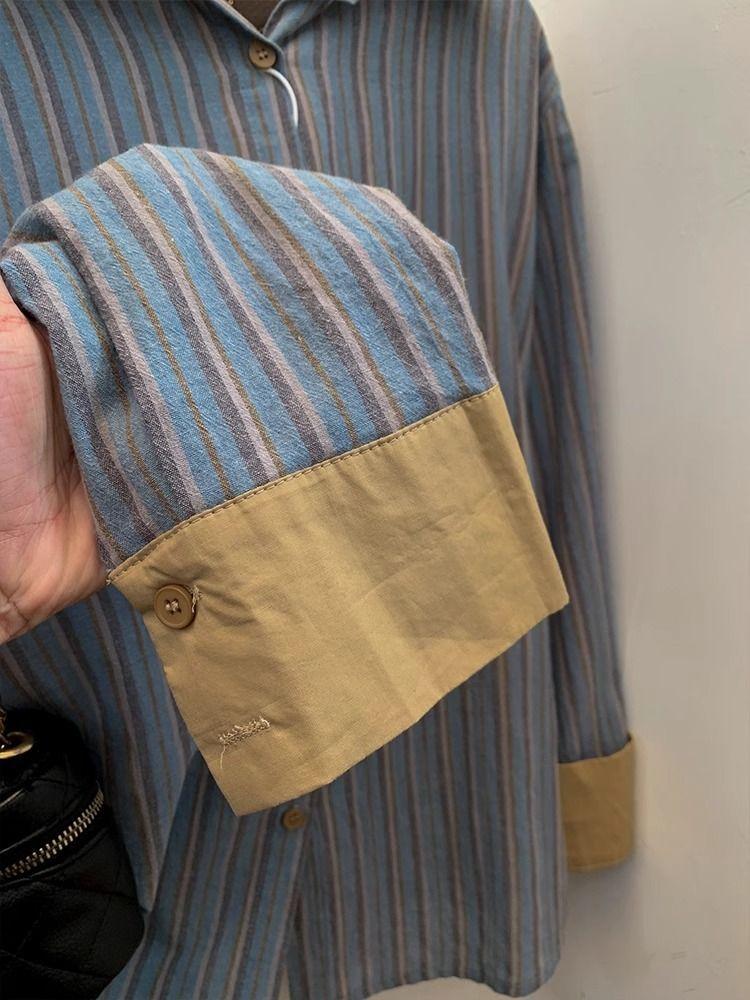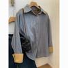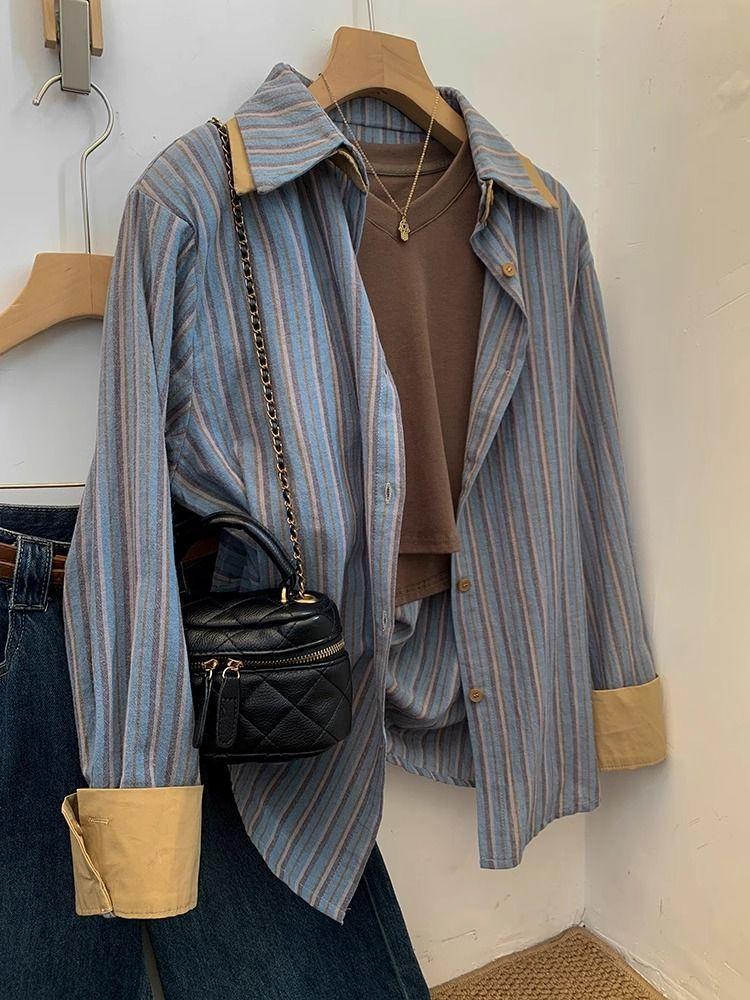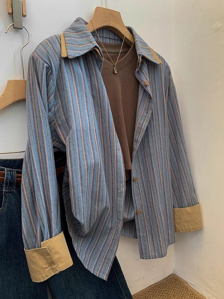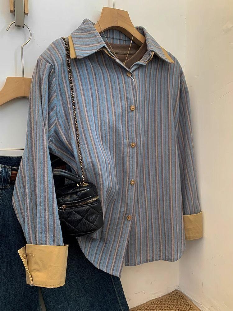 Camisa de Manga Larga a Rayas Azules para Mujer Primavera Otoño Sentido del Diseño Nicho Bloque de Color Top Francés de Alta Gama Camisa Chaqueta