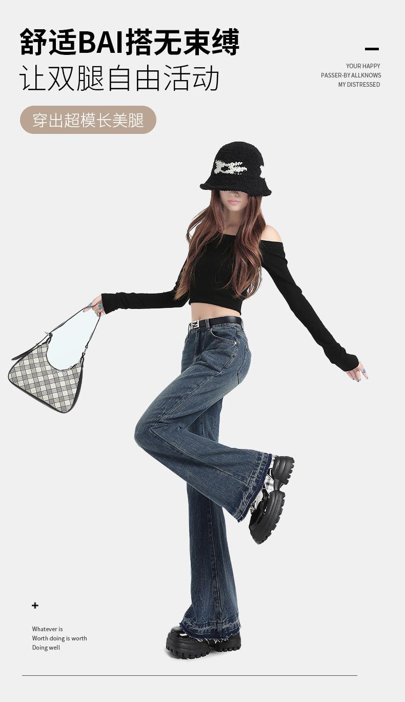 Jeans Americanos Retro Micro Acampanados Mujer 2025 Otoño Nuevo Cintura Alta Nostálgicos Adelgazantes Levanta Caderas Pantalones Acampanados