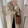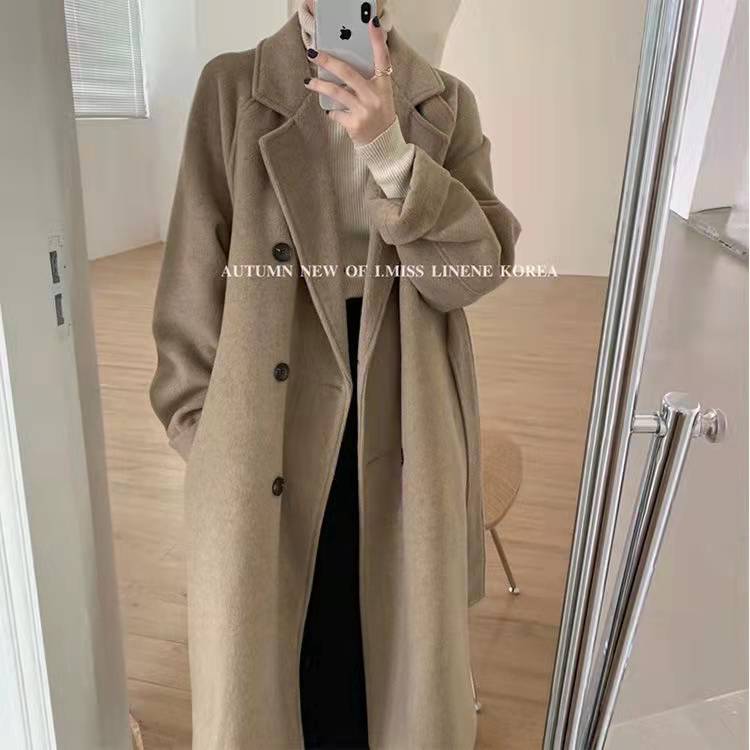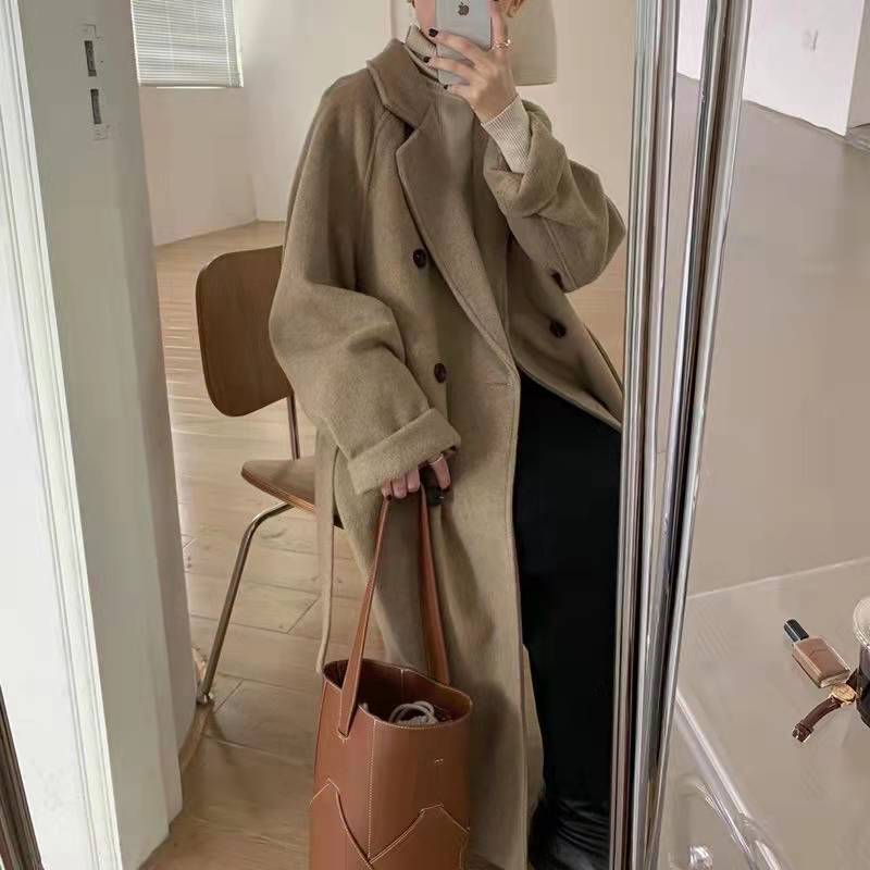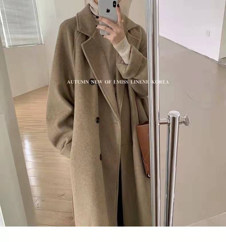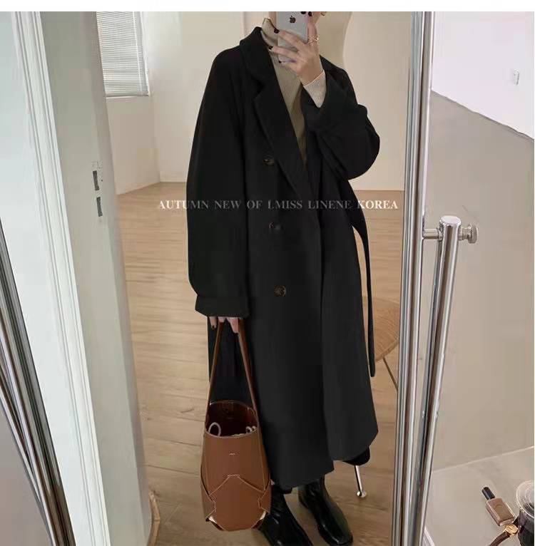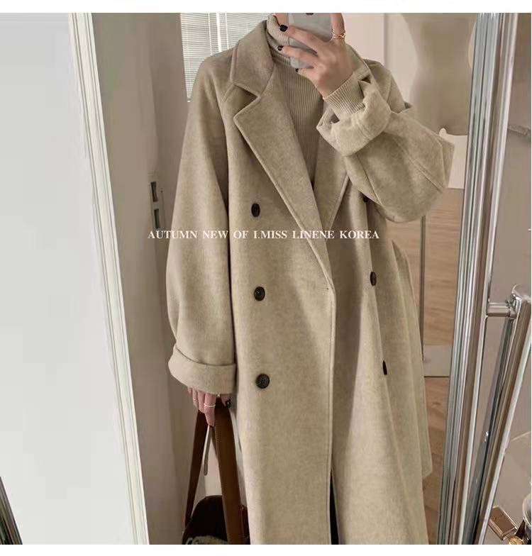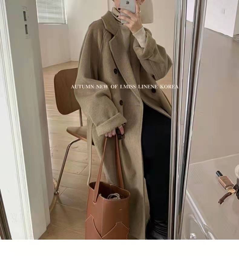 Abrigo de Lana para Mujer Largo Medio 2025 Otoño e Invierno Nuevo Estilo Hepburn Temperamento Petite Suelto Grueso Abrigo de Lana