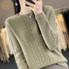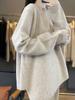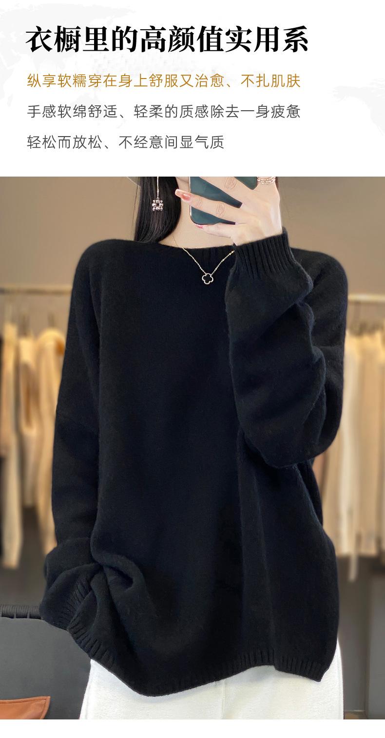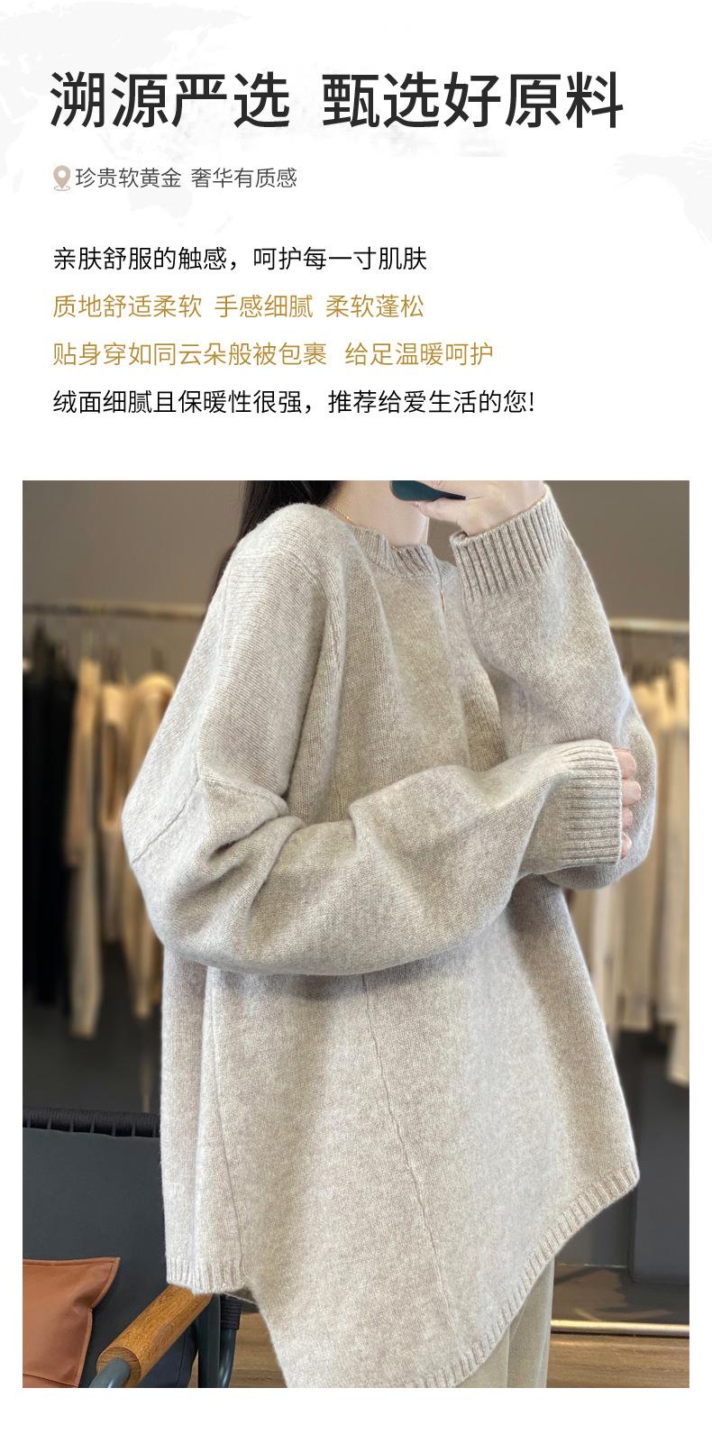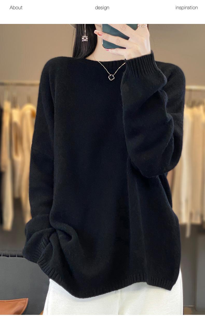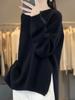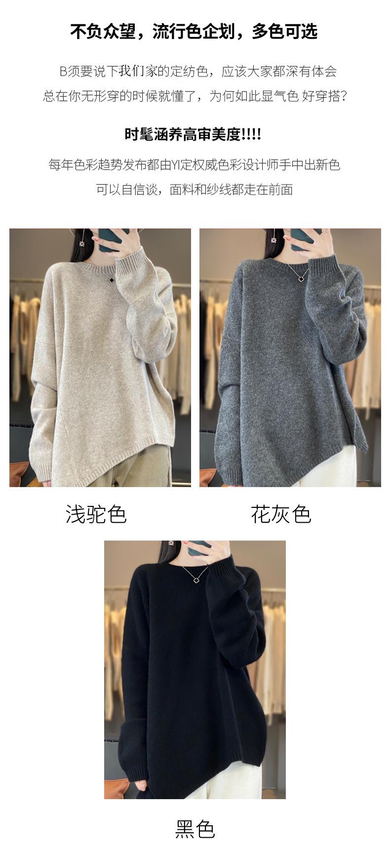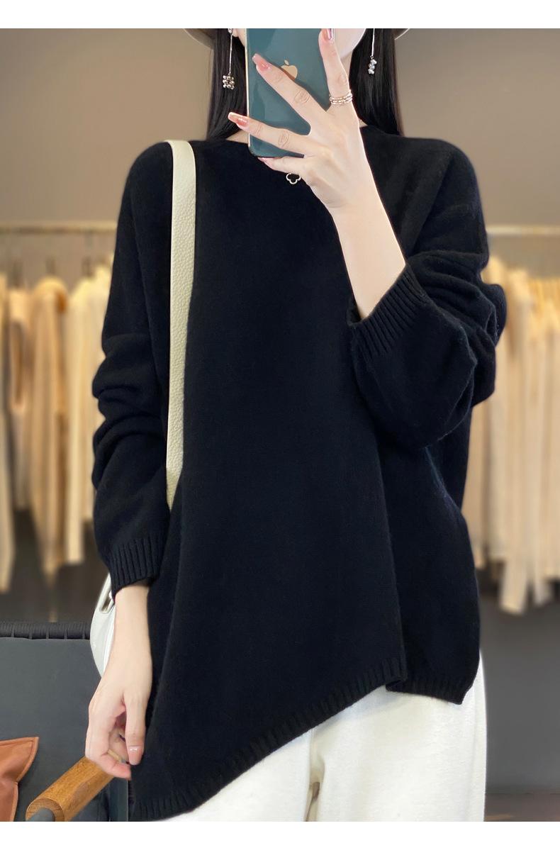 Suéter de Lana 100% Pura para Mujer Cuello Redondo Manga Larga Irregular Tejido Jersey Holgado Estilo Lazy Abertura Suéter de Cachemira Base