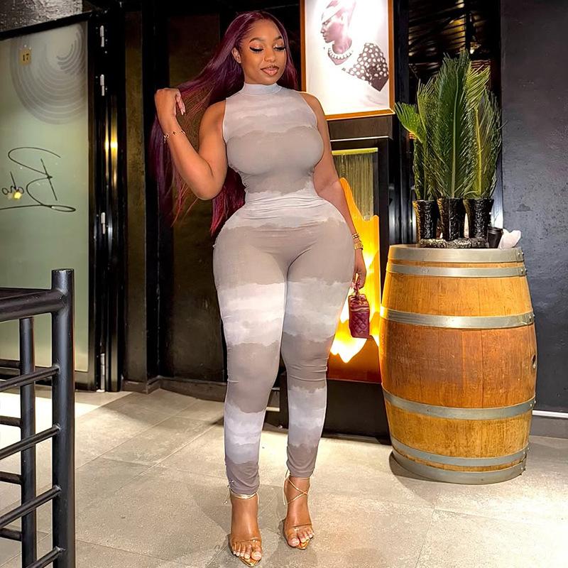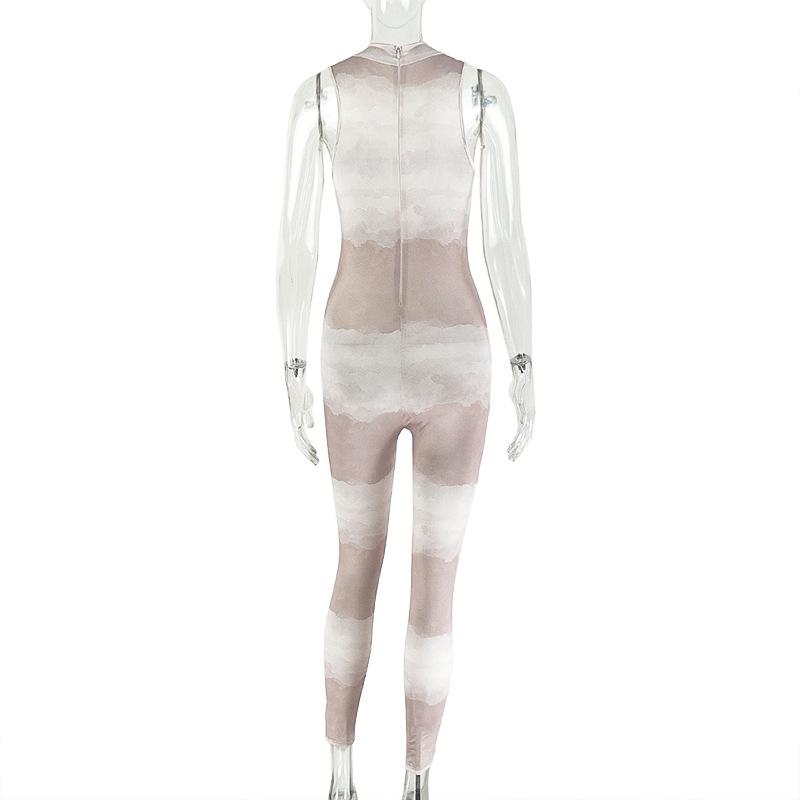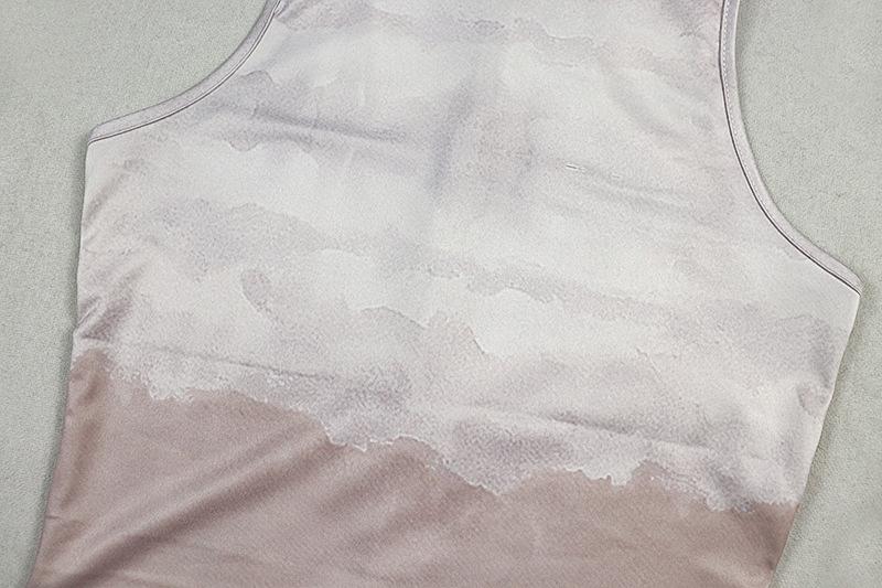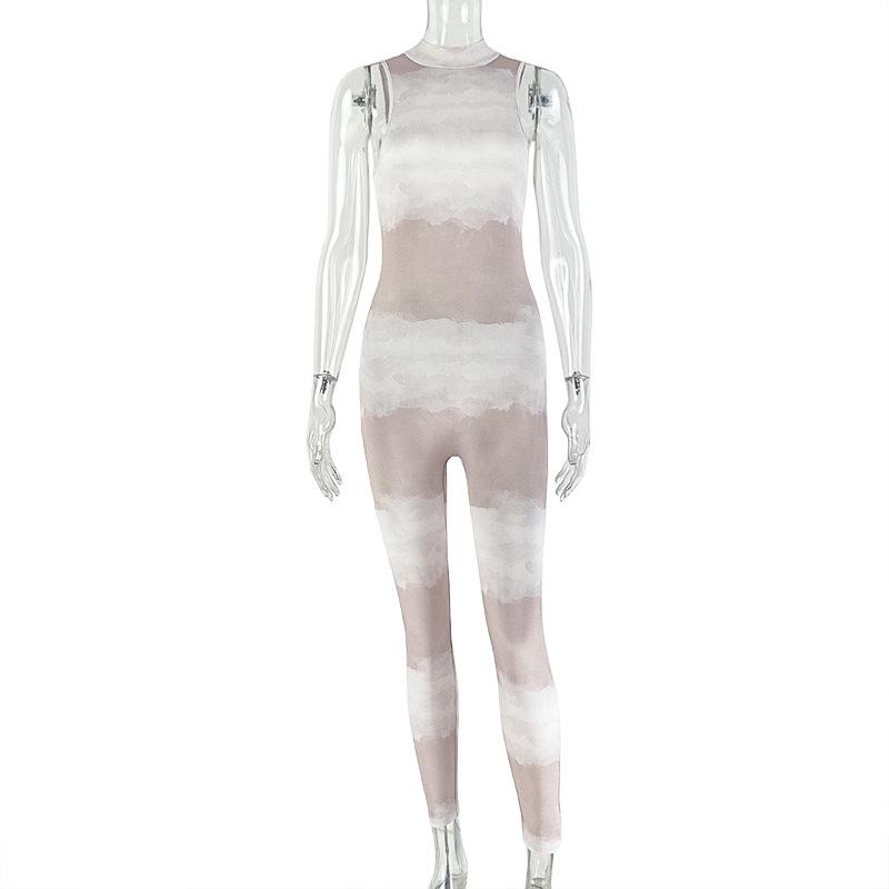 Mono deportivo casual transfronterizo de estilo europeo y americano para mujer, degradado, ceñido a la cintura, adelgazante, para ir al trabajo, cuello alto, sin mangas, largo.