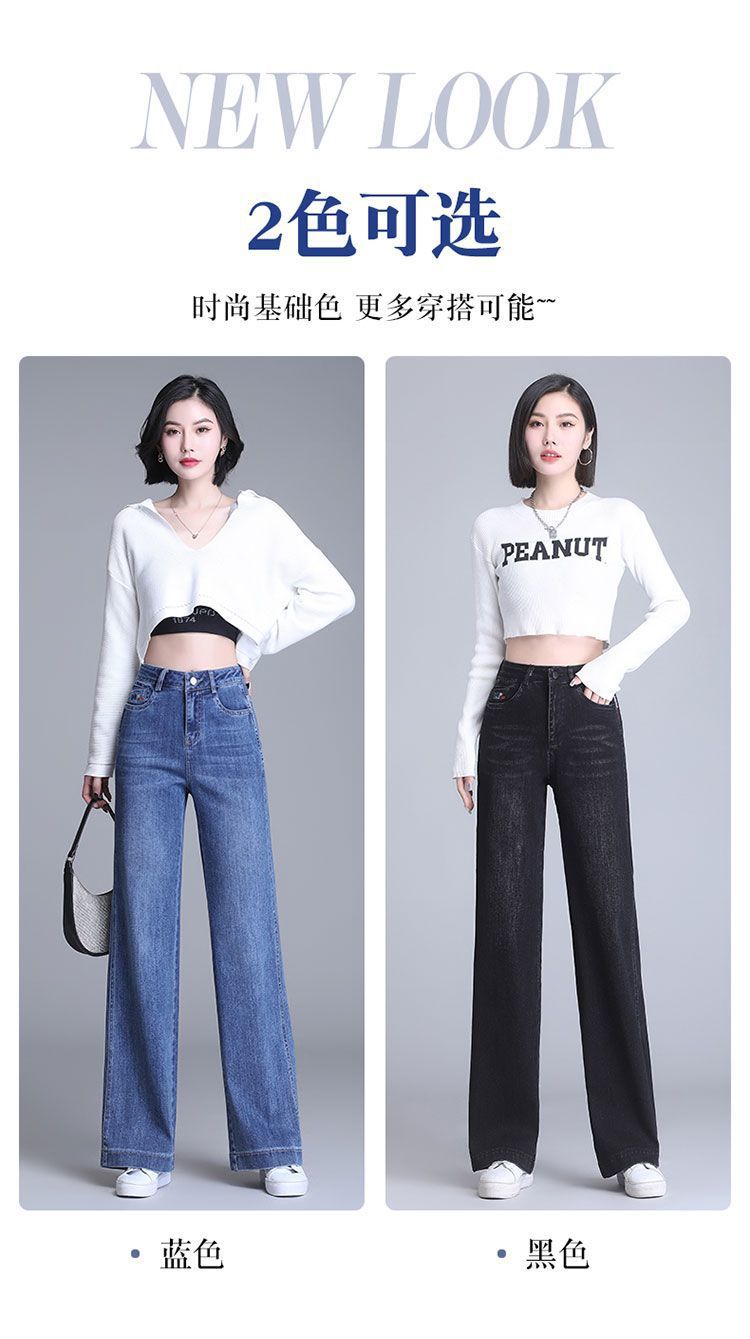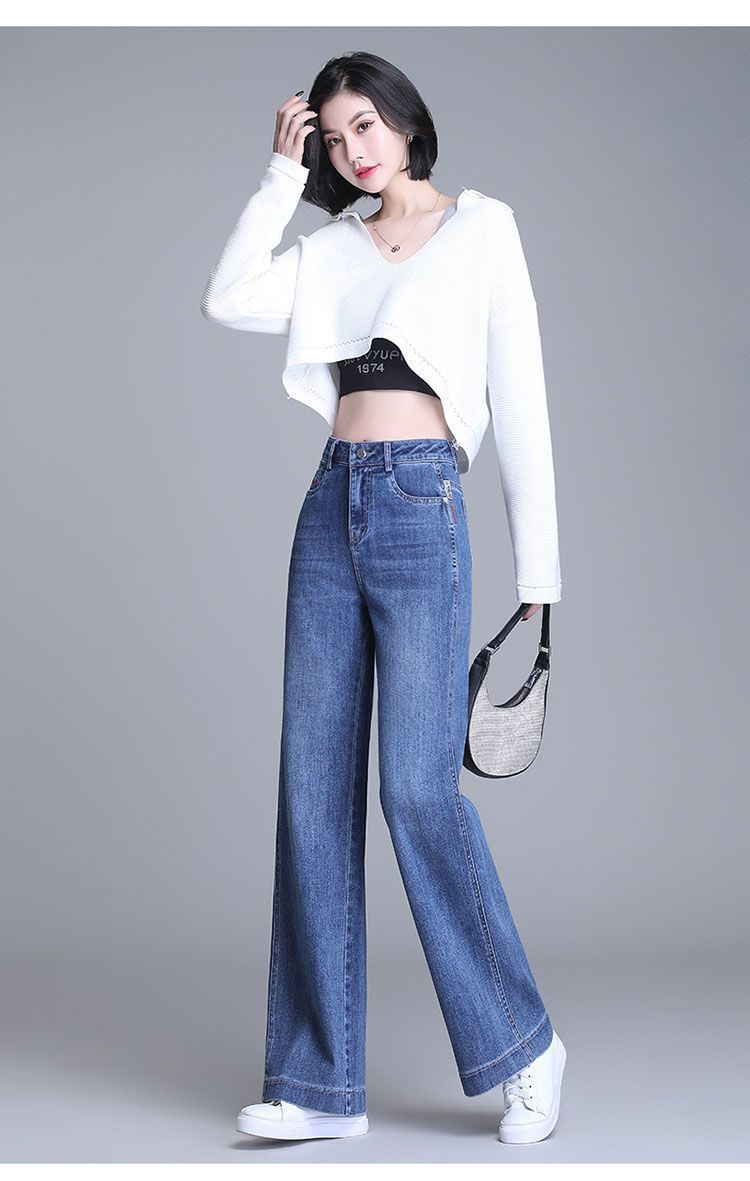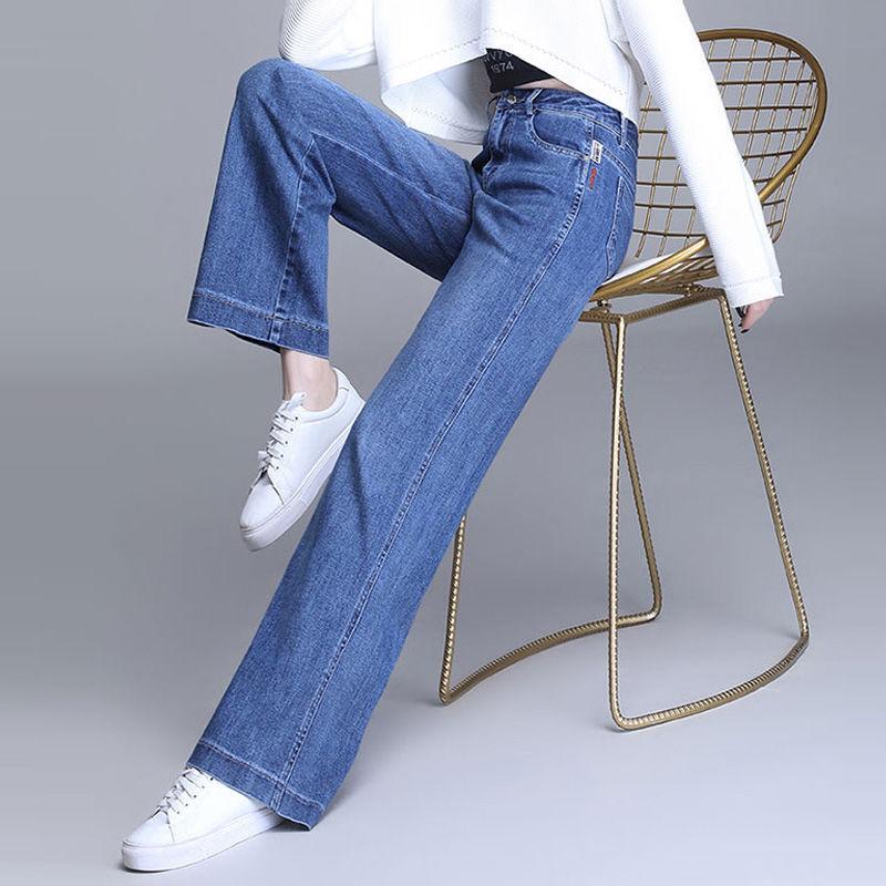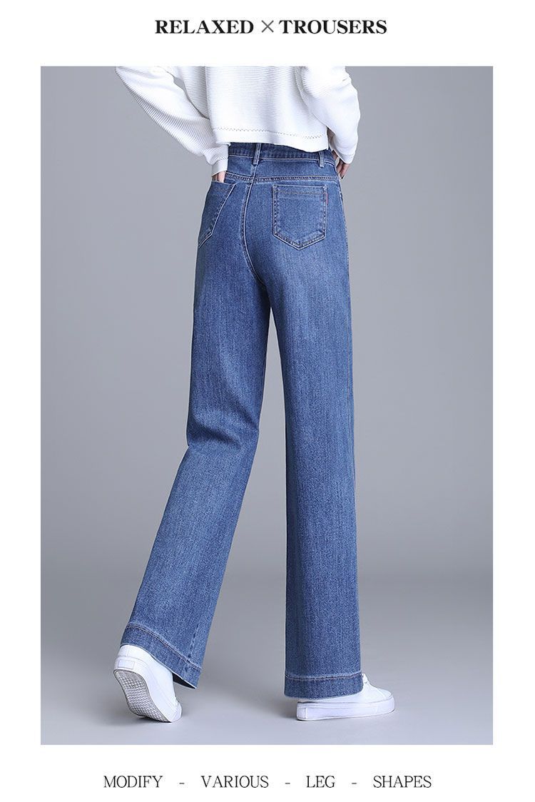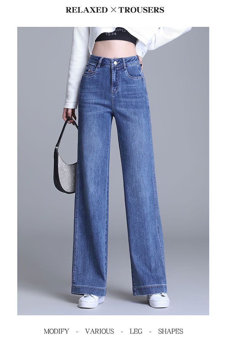 Jeans de Mujer 2025 Nuevo Primavera/Verano Cintura Alta Corte Slim Pantalones de Pierna Ancha Holgados Elásticos Adelgazantes Petite Rectos