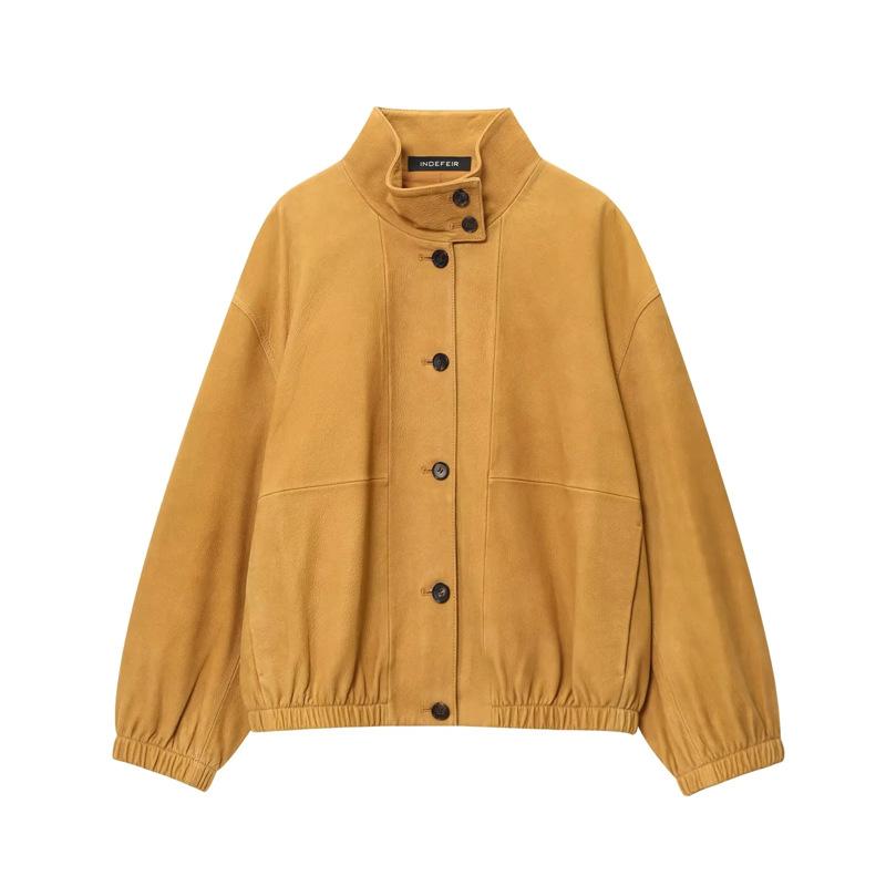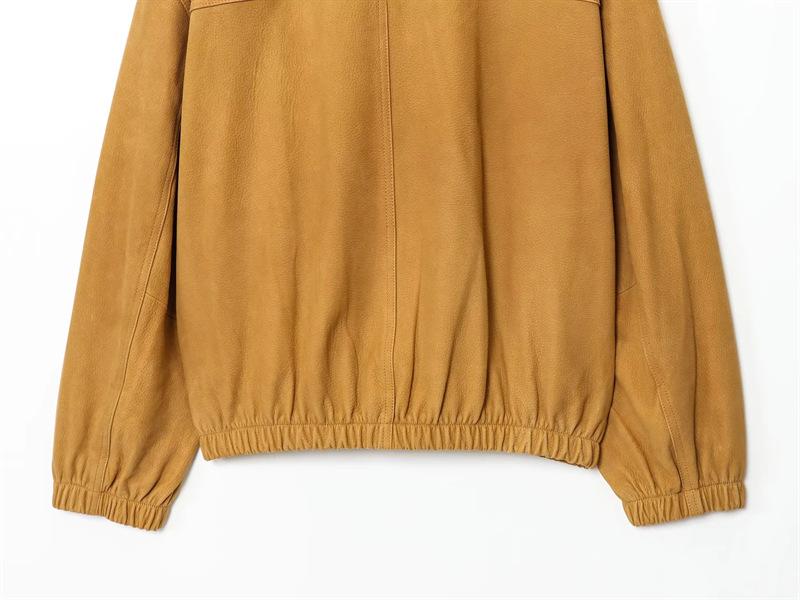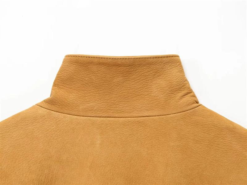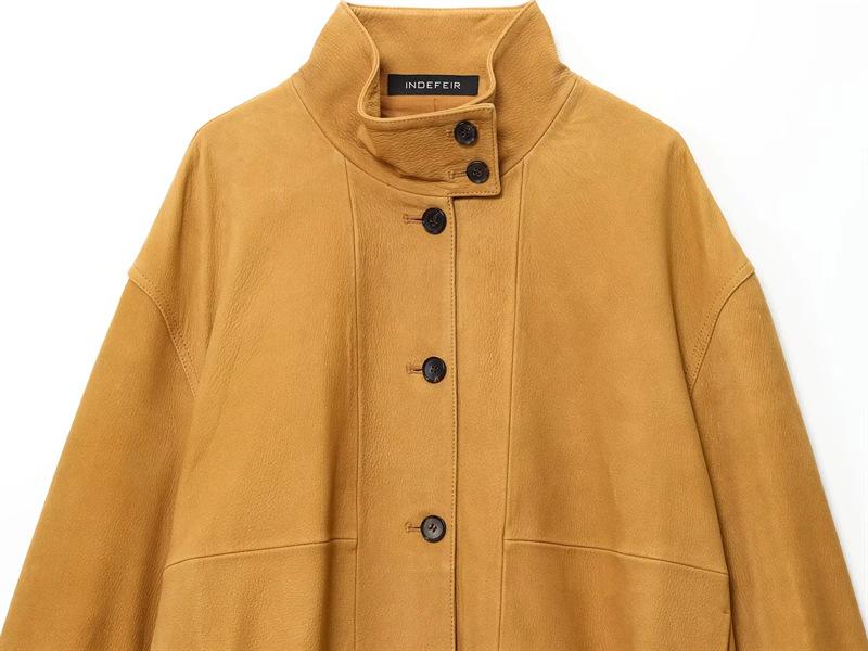 Estilo europeo y americano cuello alto moda botonadura sencilla top casual holgado chaqueta bomber de cuero abrigo mujer 5761240