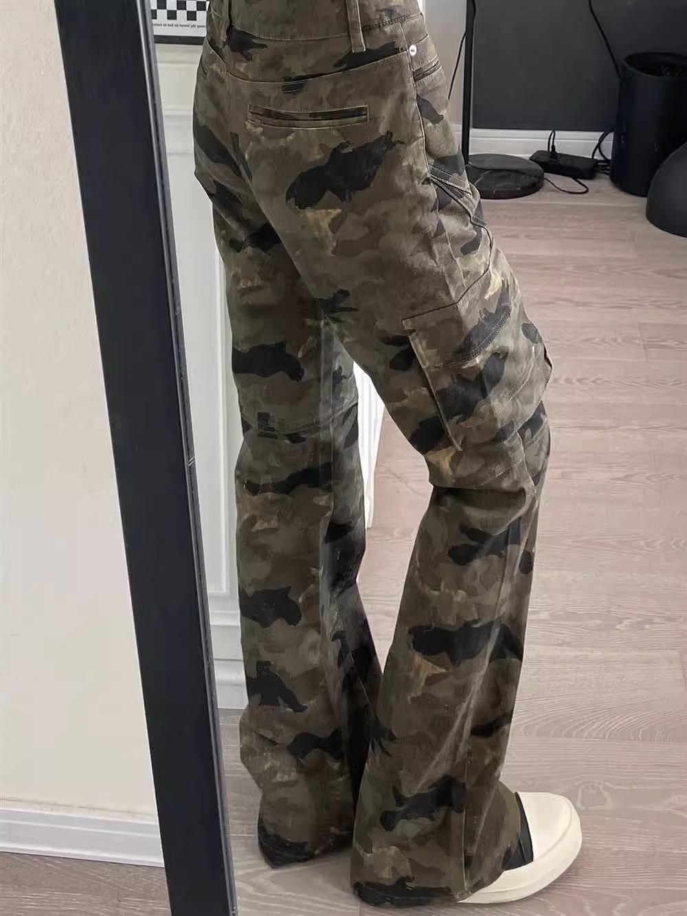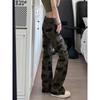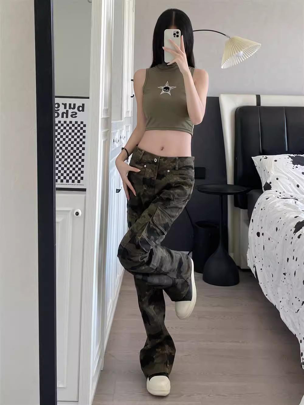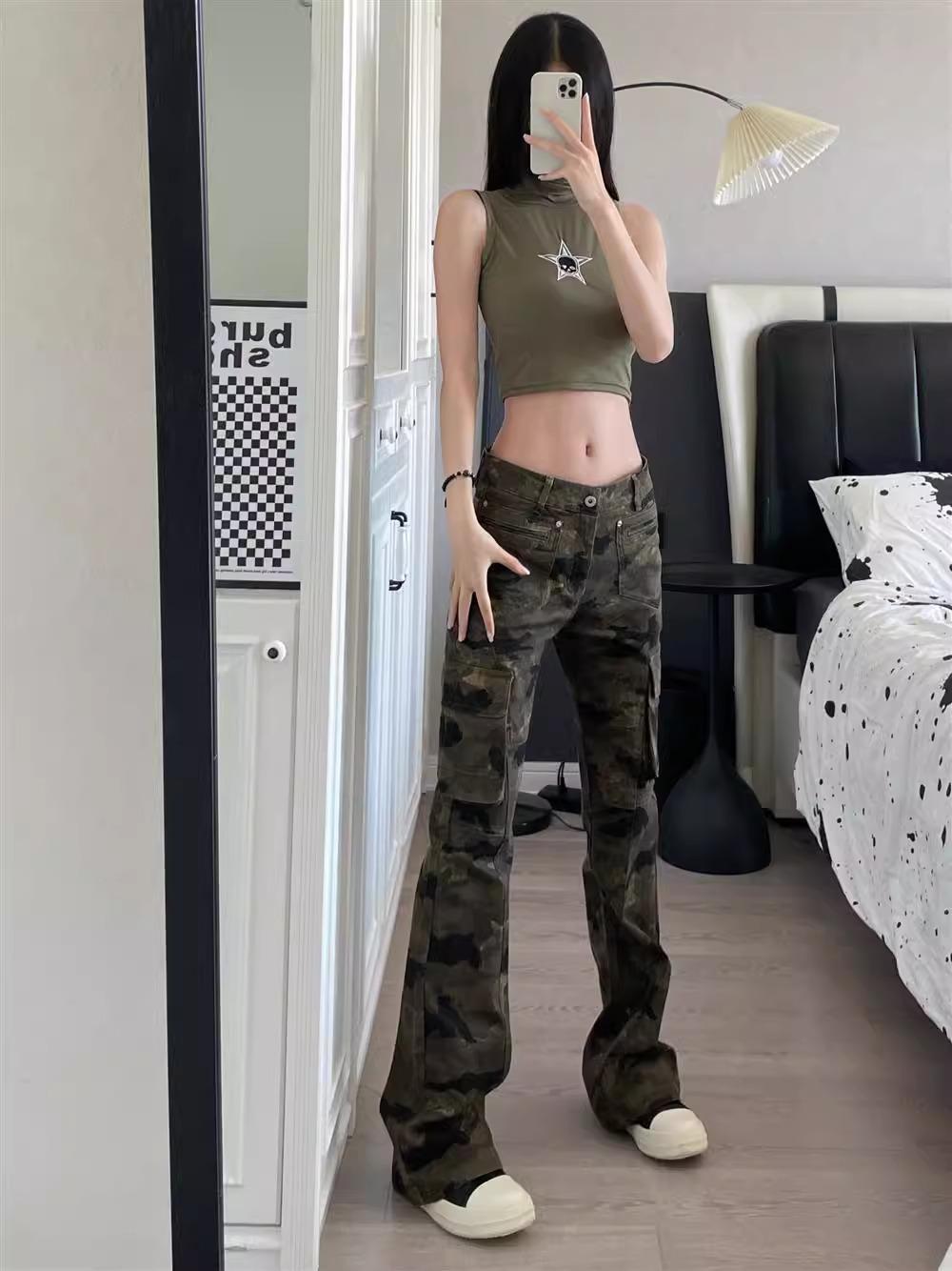 Jeans Acampanados Slim Americanos de Calle Alta para Mujer Otoño Nuevo Ropa de Trabajo Hip Hop Camuflaje Pantalones Drapeados Pierna Recta Pantalones Largos