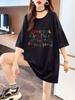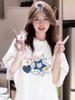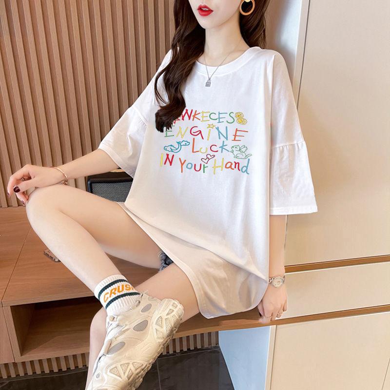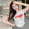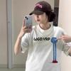 Camiseta Blanca de Manga Corta con Estampado de Letras de Color para Mujer Verano 2025 Nuevo Diseño Sensación Holgada Nicho Manga Corta