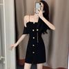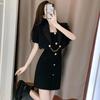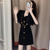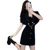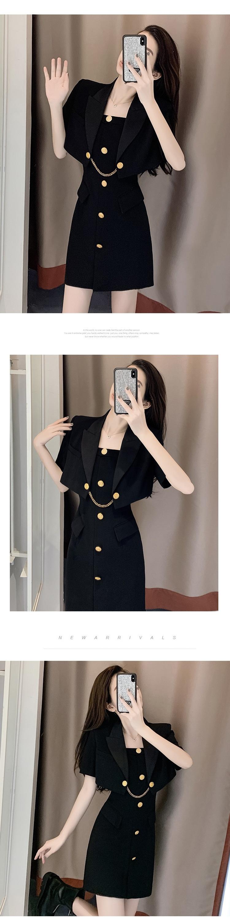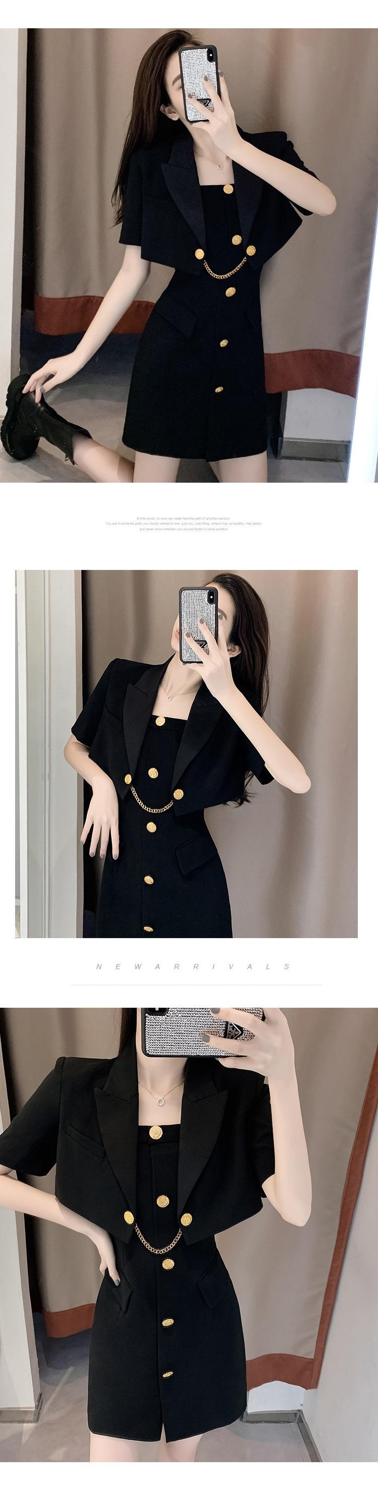 Black jacket + suspender skirt, Black coat, Black suspender skirt