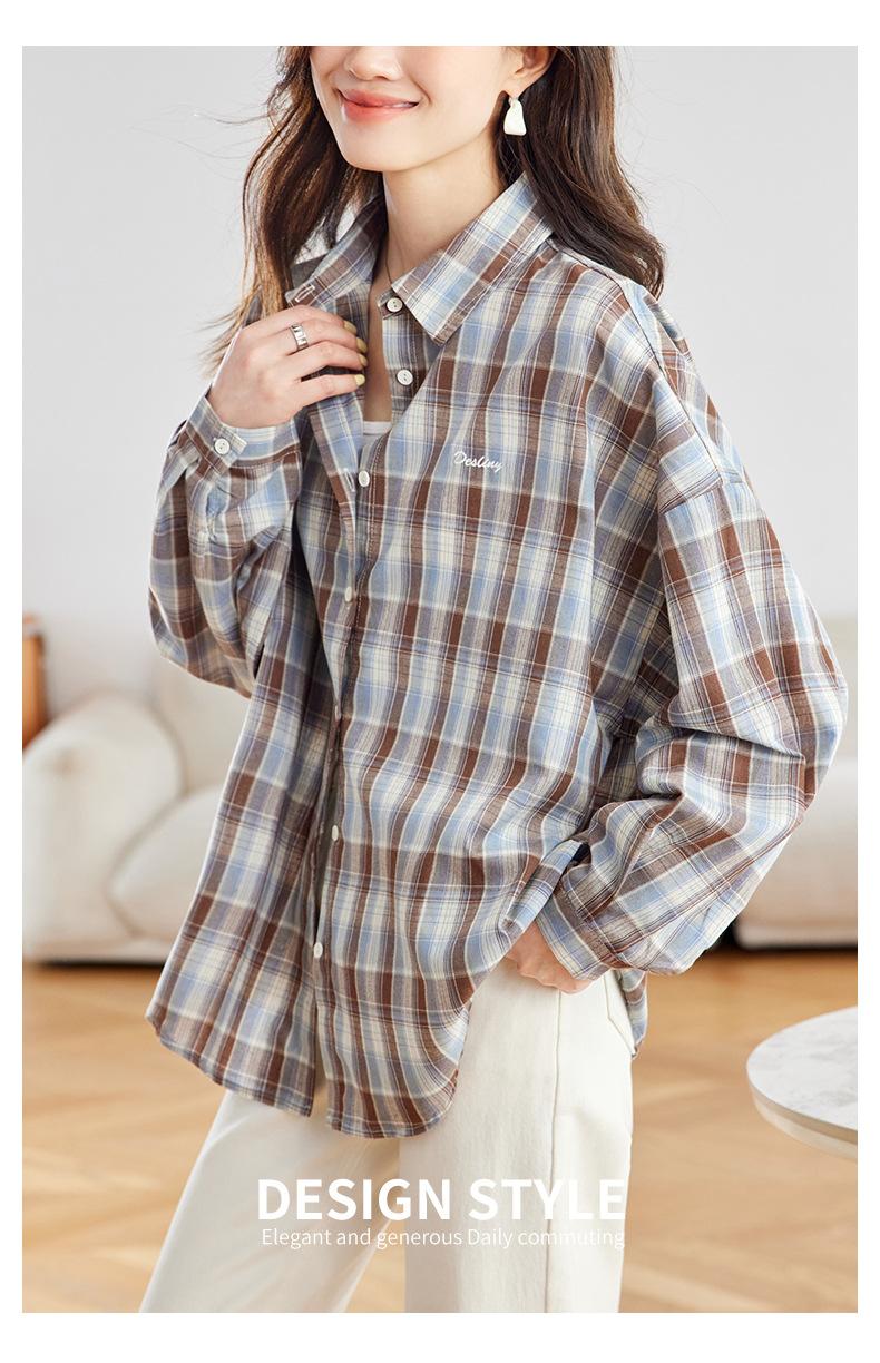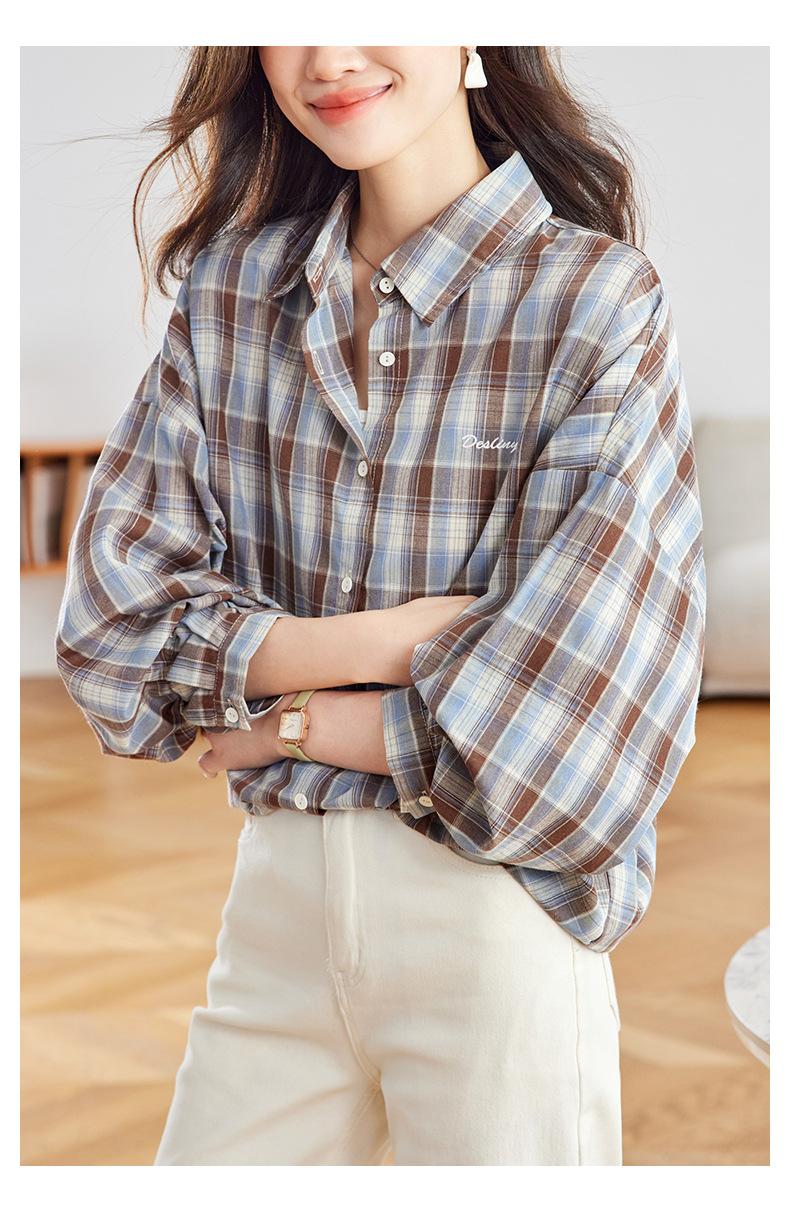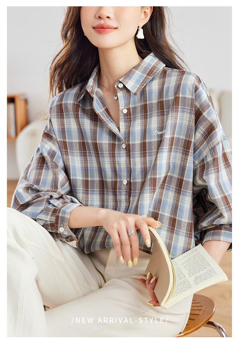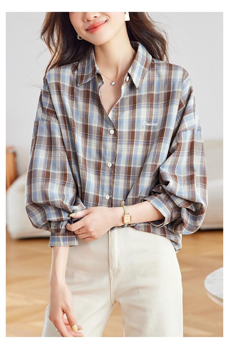 Compra Camisa de Algodón Capullo Retro con Solapa a Cuadros de Manga Larga para Mujer Primavera y Otoño Nueva Camisa de Viaje Estilo Coreano Holgada Versátil Bordada al por mayor en Joom.pro