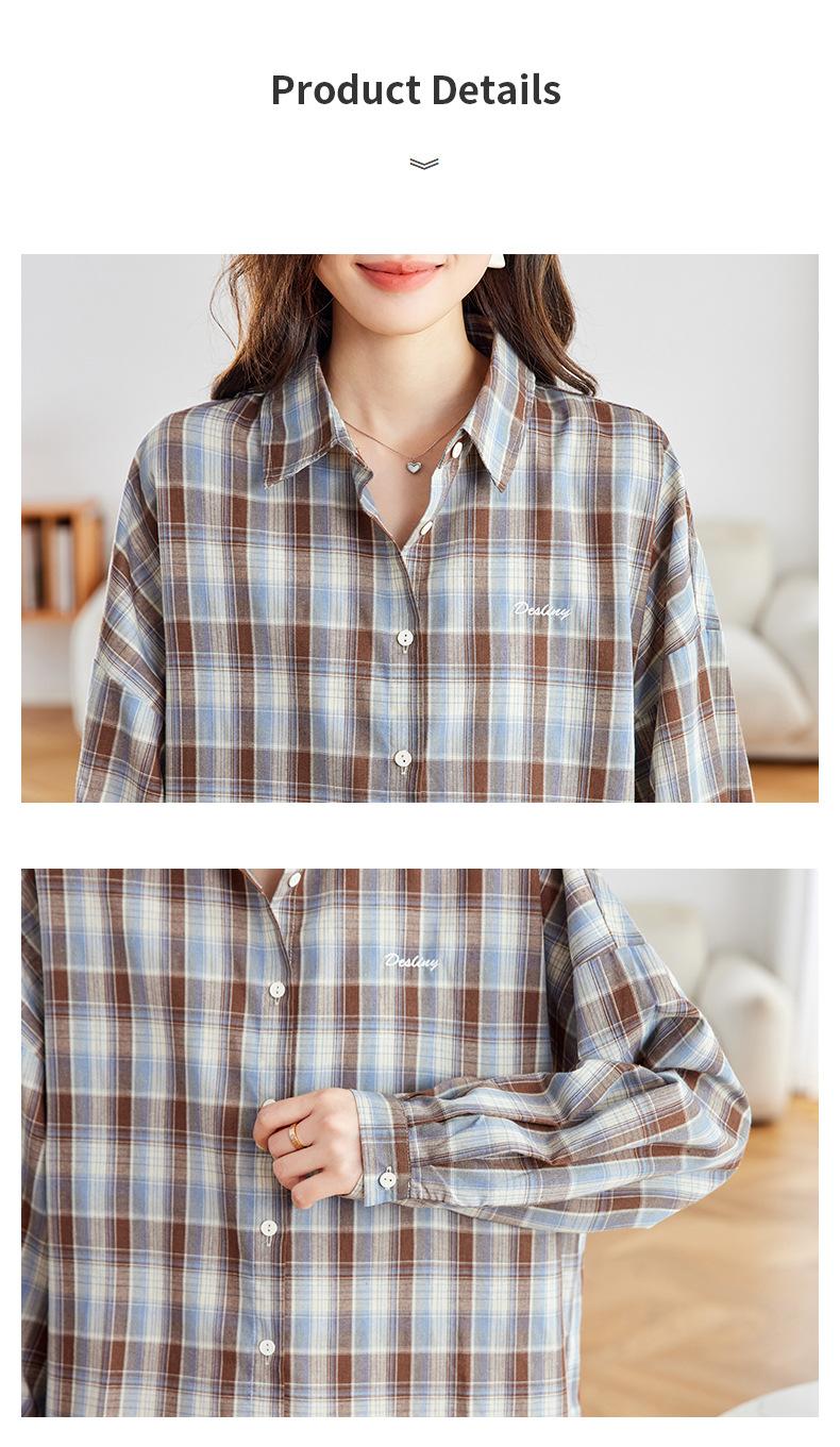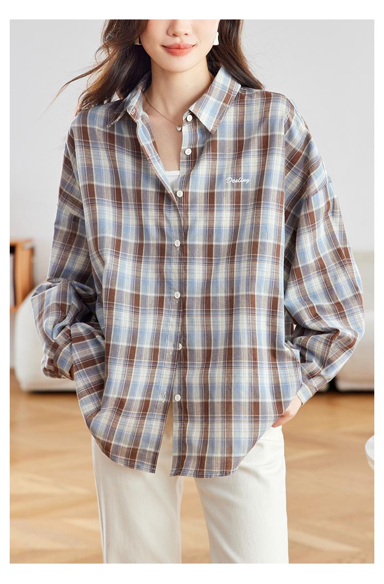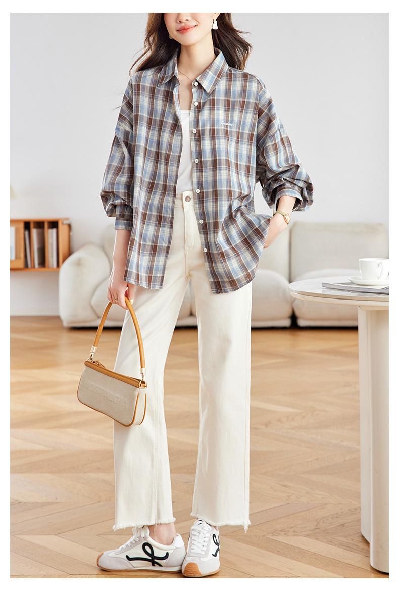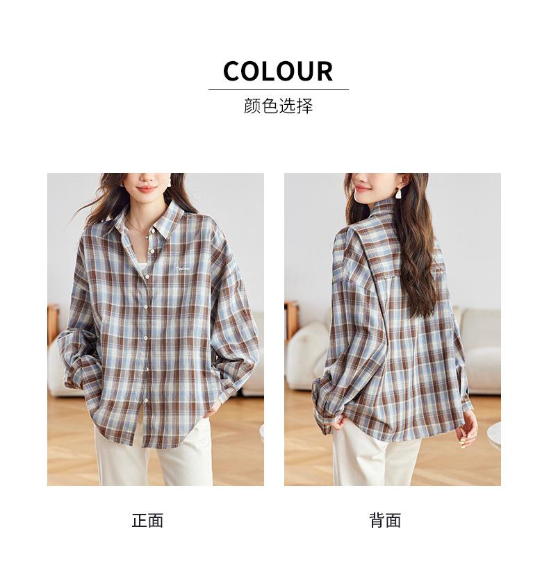 Compra Camisa de Algodón Capullo Retro con Solapa a Cuadros de Manga Larga para Mujer Primavera y Otoño Nueva Camisa de Viaje Estilo Coreano Holgada Versátil Bordada al por mayor en Joom.pro
