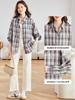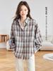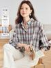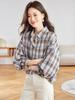 Camisa de Algodón Capullo Retro con Solapa a Cuadros de Manga Larga para Mujer Primavera y Otoño Nueva Camisa de Viaje Estilo Coreano Holgada Versátil Bordada