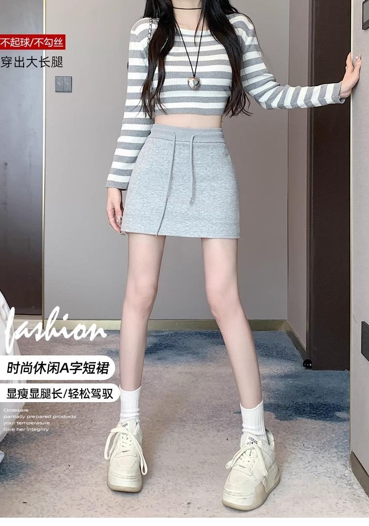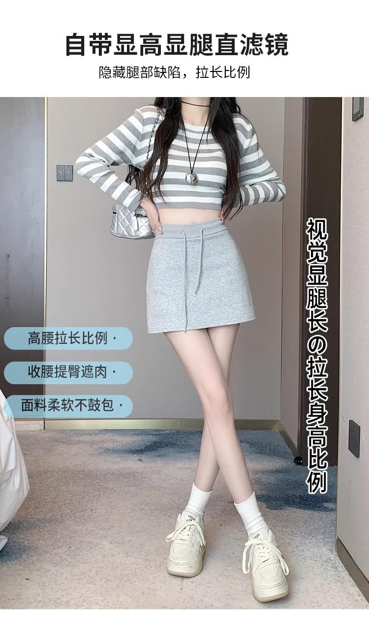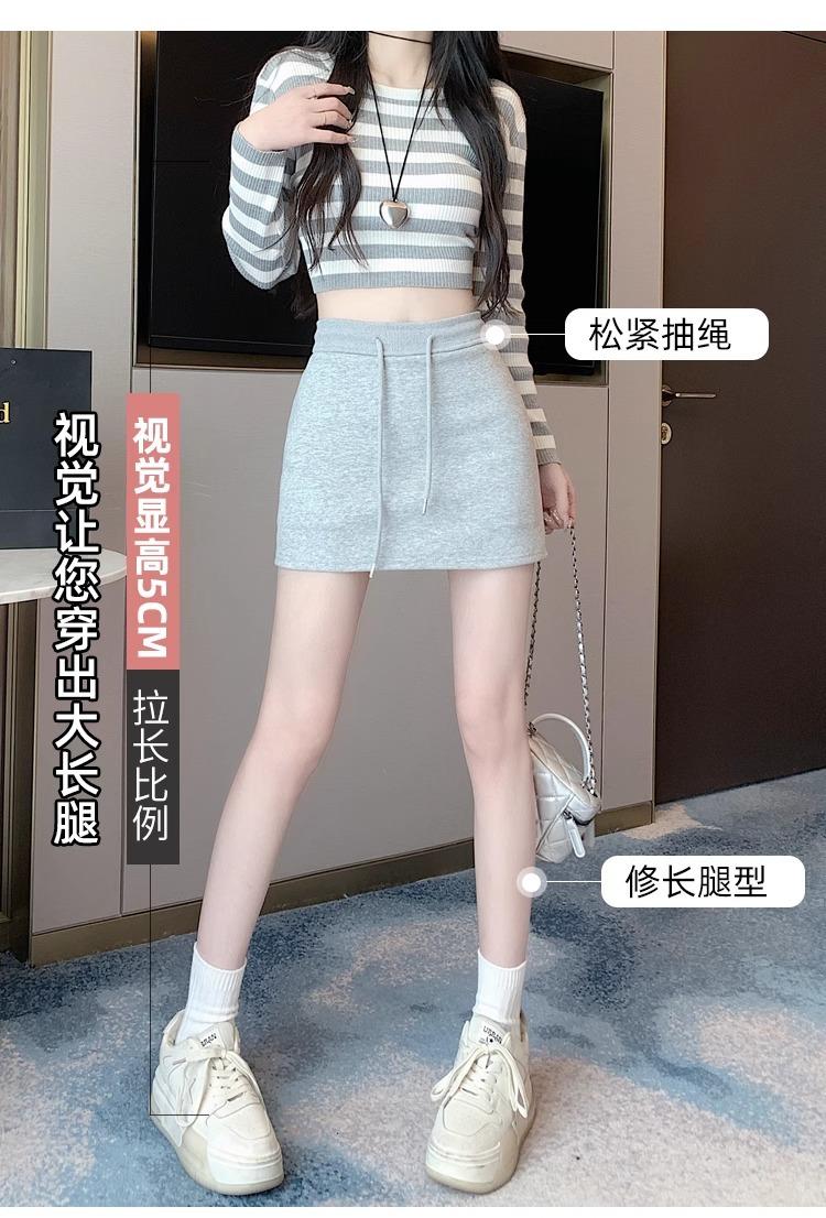 Falda Corta Deportiva Gris para Mujer Verano 2025 Nueva Falda Anti-marcha de Cintura Alta Falda Pequeña Wei Falda Línea A Pantalones