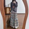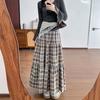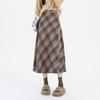 Falda de Cuadros Retro para Mujer Primavera Otoño Cintura Alta Suelta Adelgazante Casual A-line Media Longitud Falda Media Cuerpo Estilo Lazy Falda Pastel