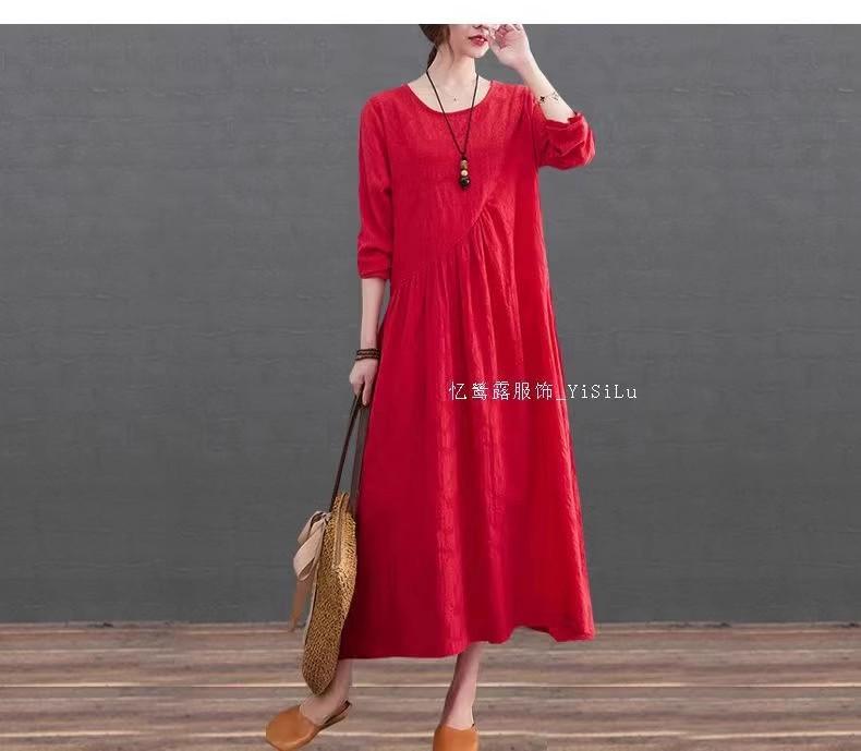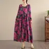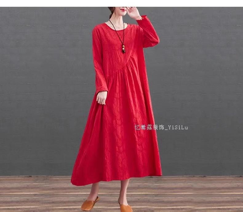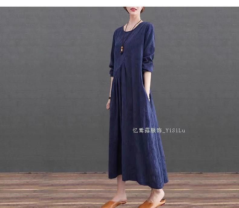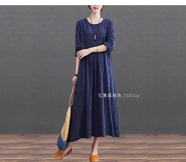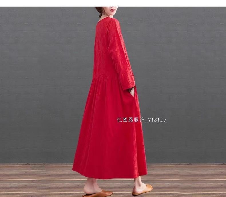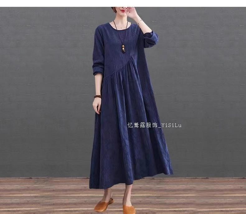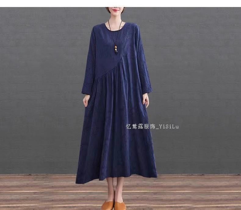 Vestido Jacquard Nuevo Otoño 2025 Largo Medio Estilo Literario Manga Larga Holgado Talla Grande Patchwork Sencillo Vestido Largo Mujer
