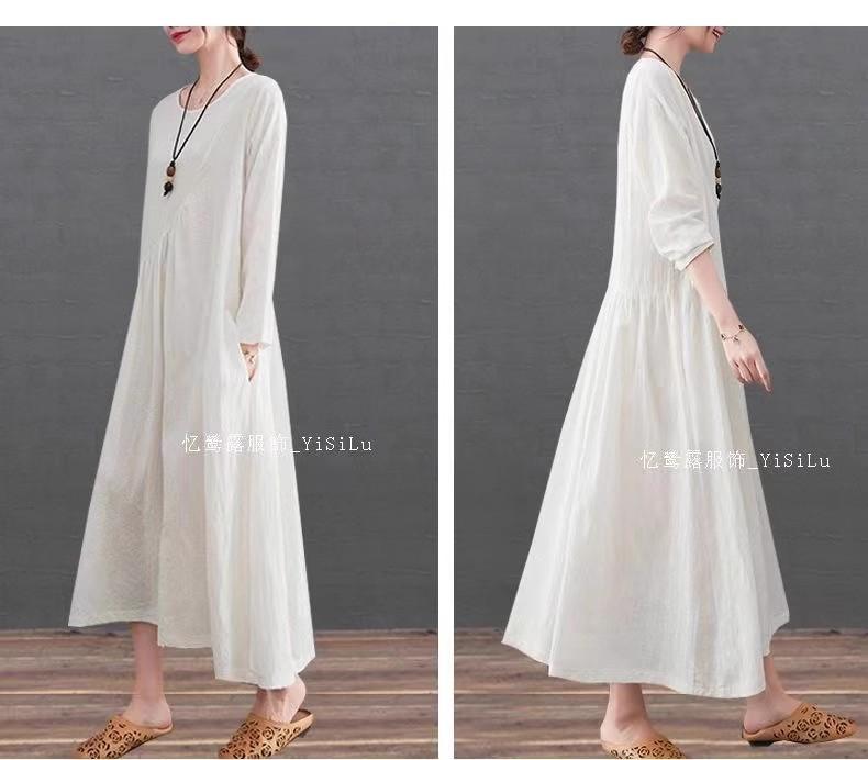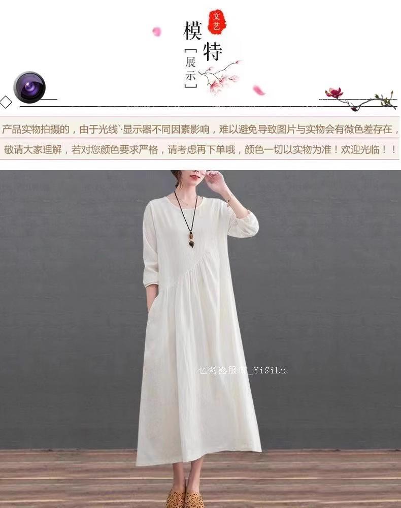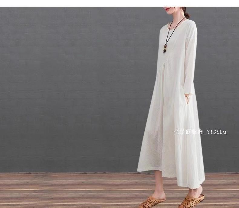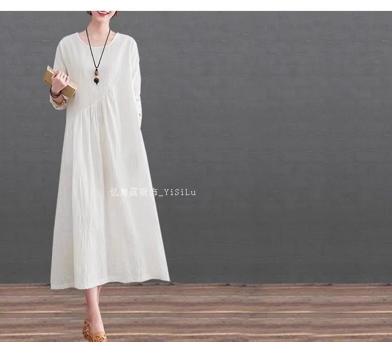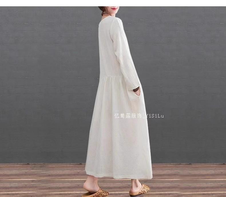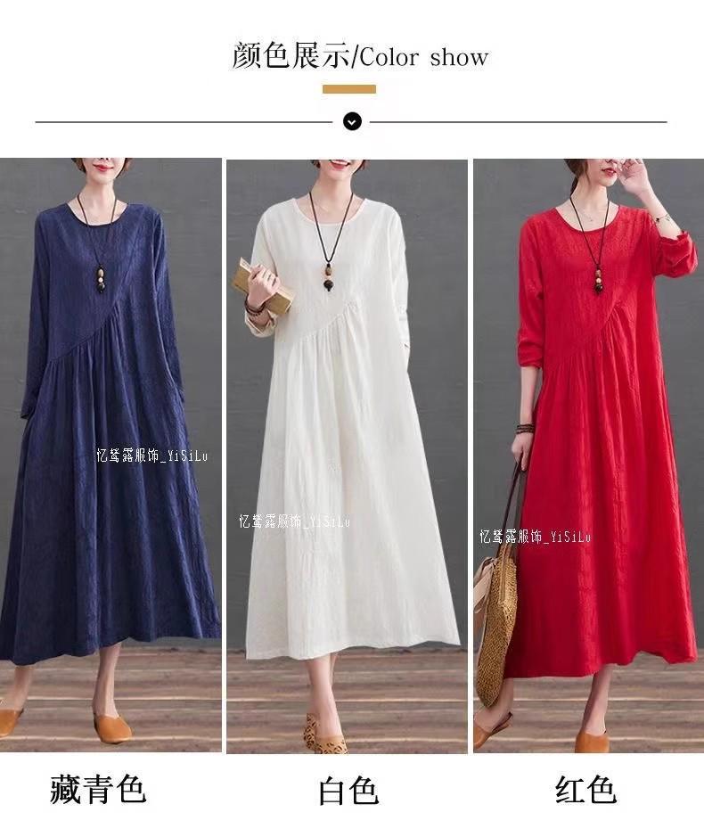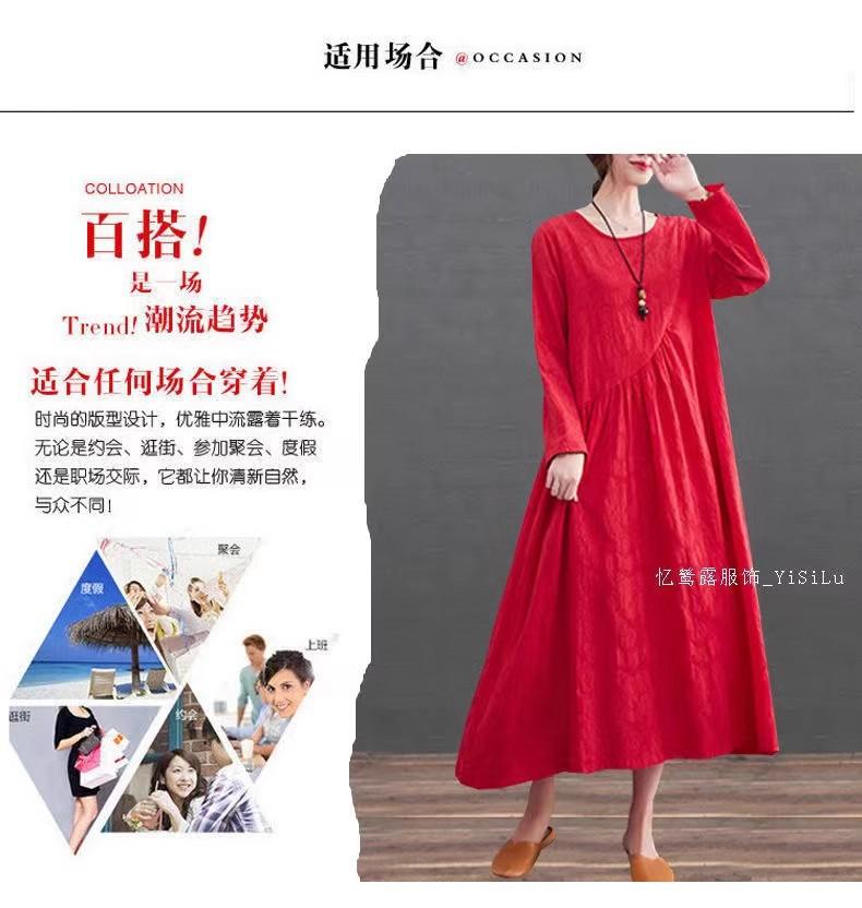 Vestido Jacquard Nuevo Otoño 2025 Largo Medio Estilo Literario Manga Larga Holgado Talla Grande Patchwork Sencillo Vestido Largo Mujer