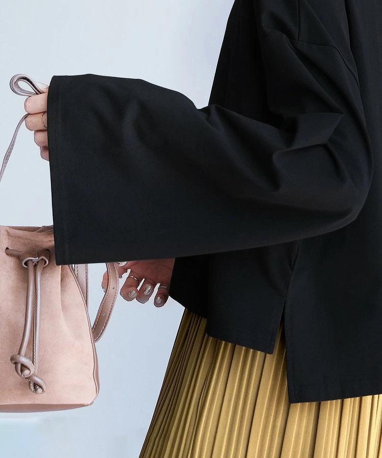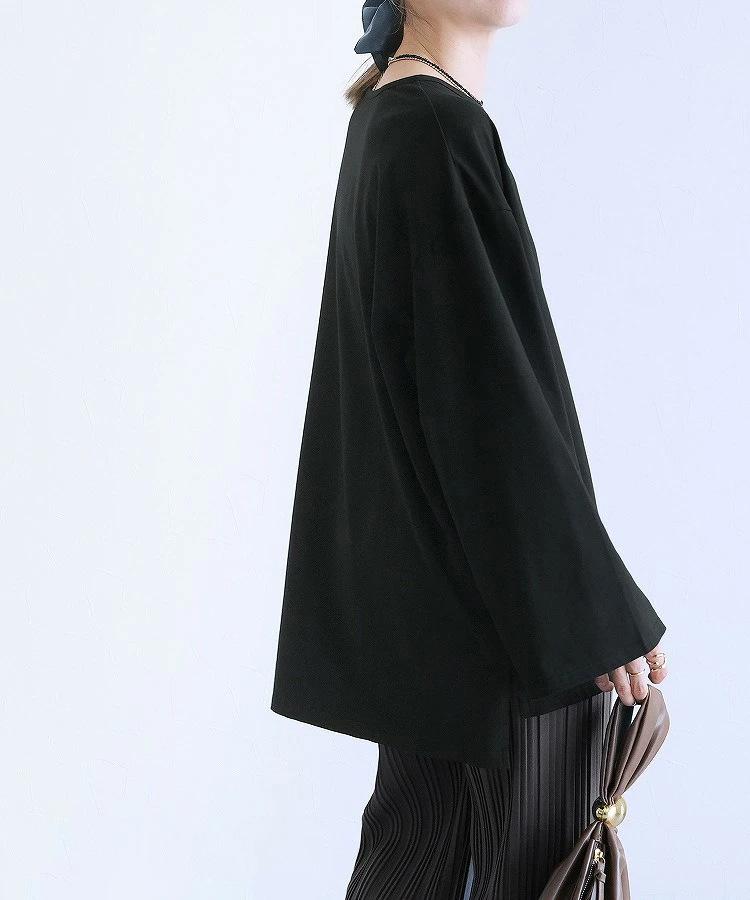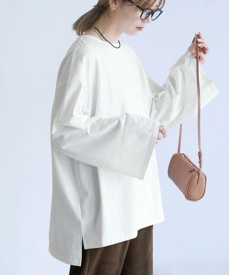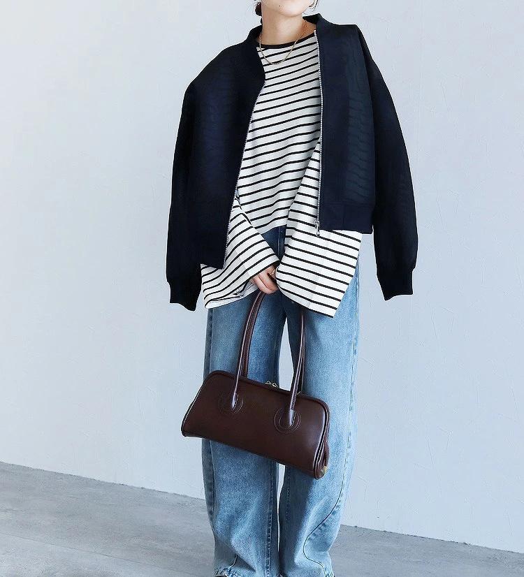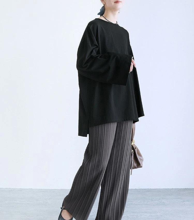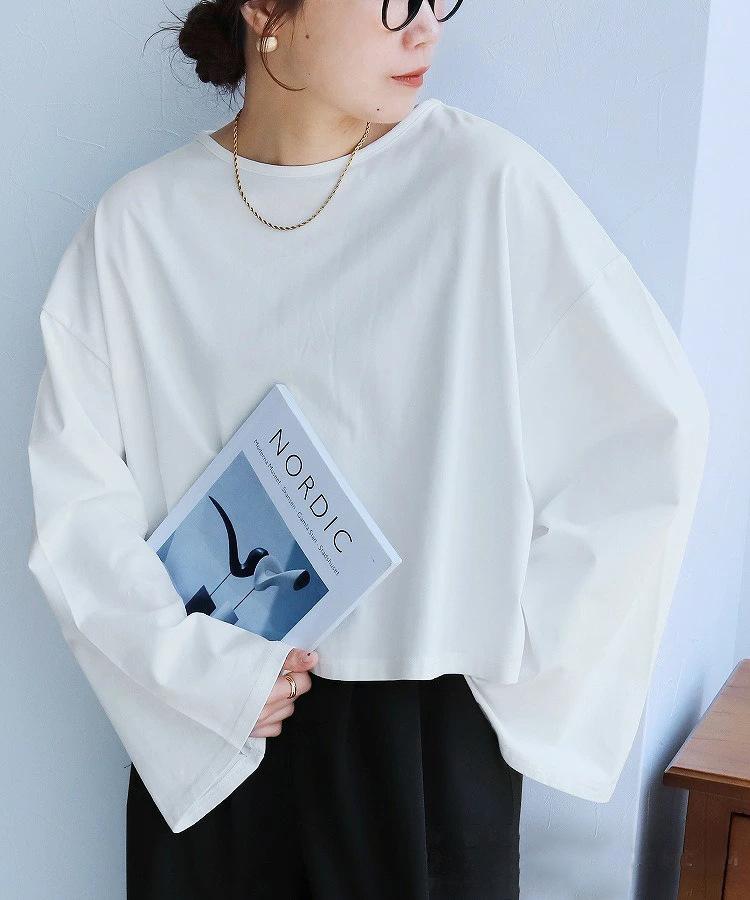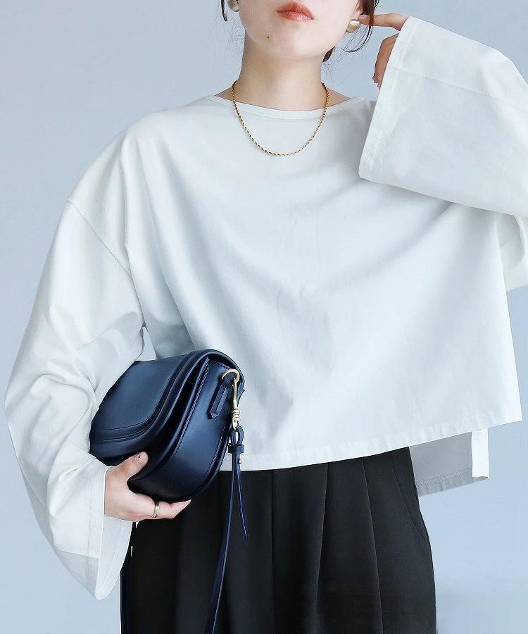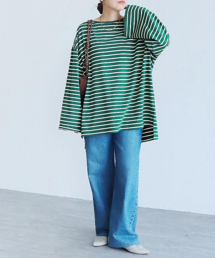 Otoño Japonés Nuevo Top de Manga Larga a Rayas de Color Sólido Suelto para Mujer Versátil Casual Manga Campana Cuello Redondo Camiseta