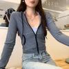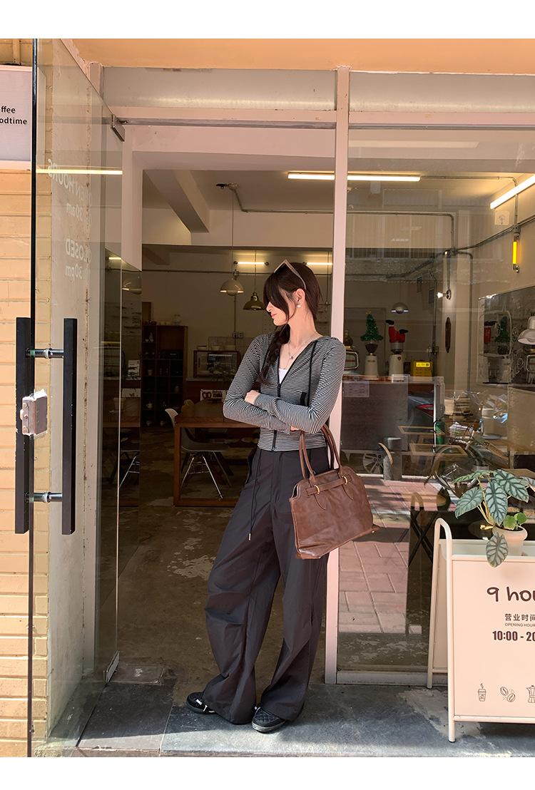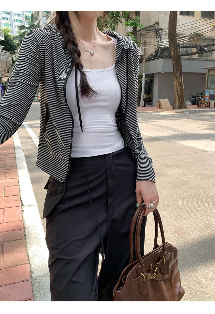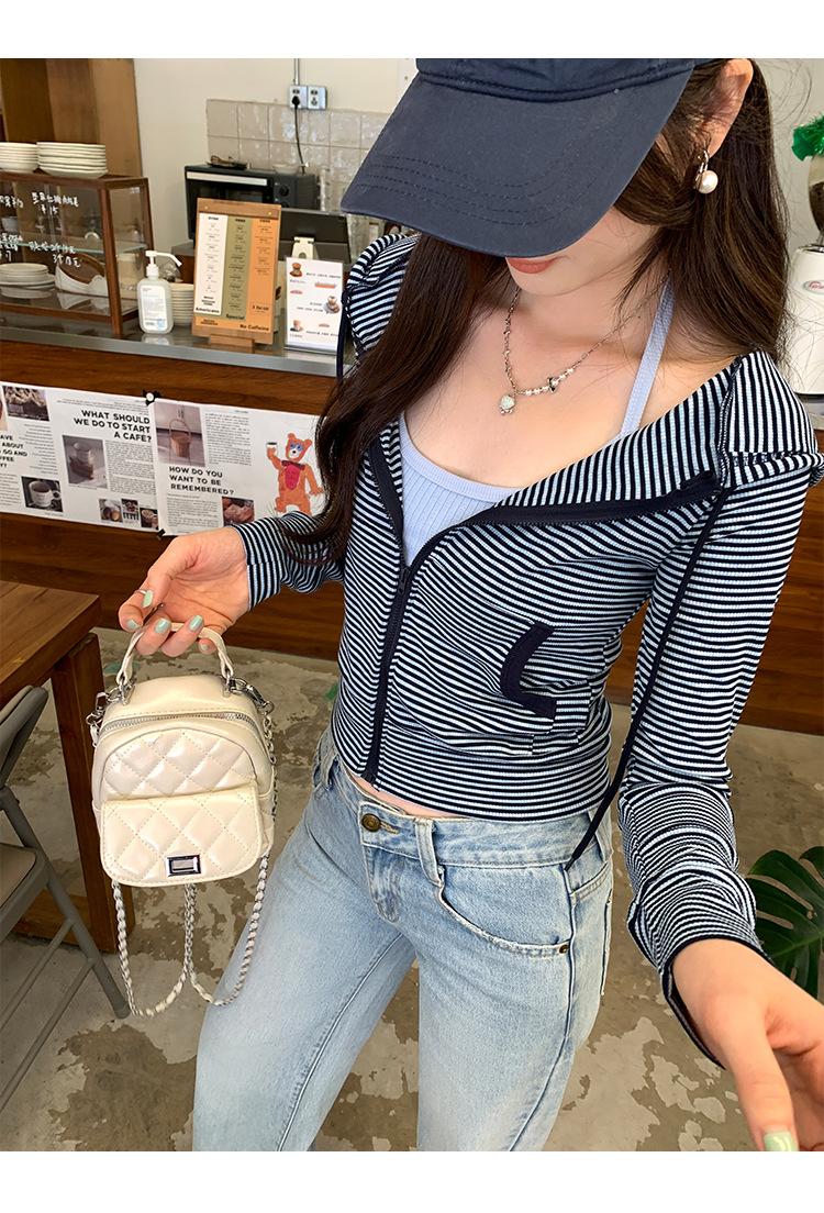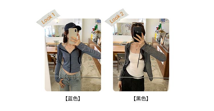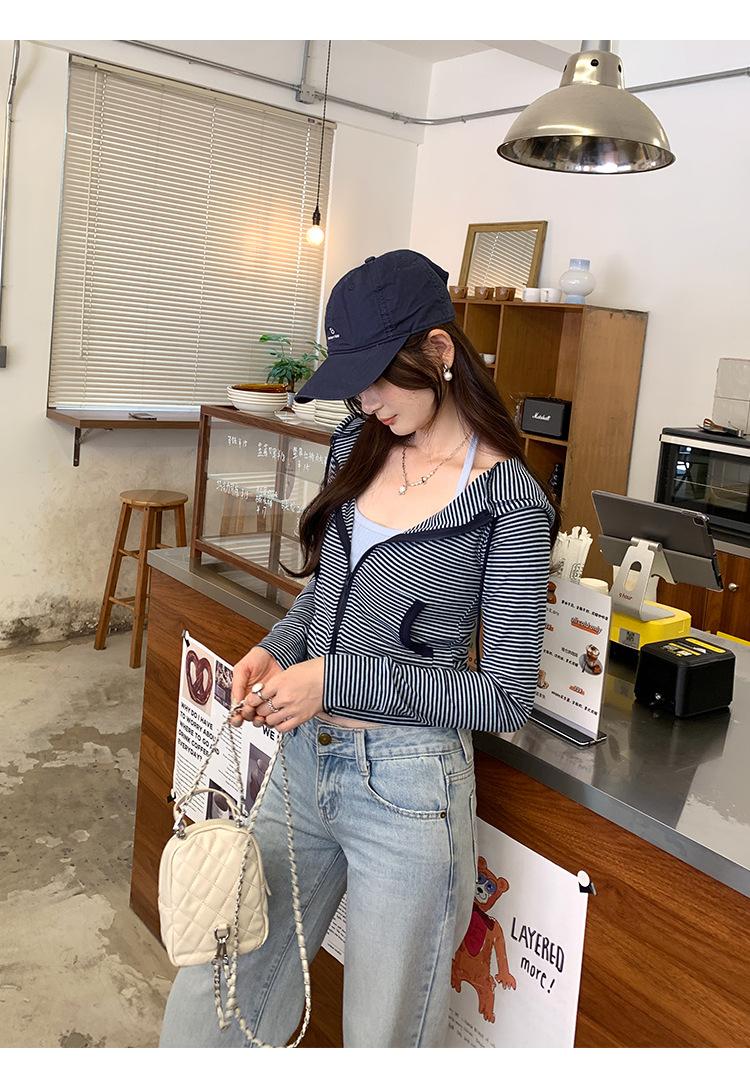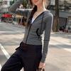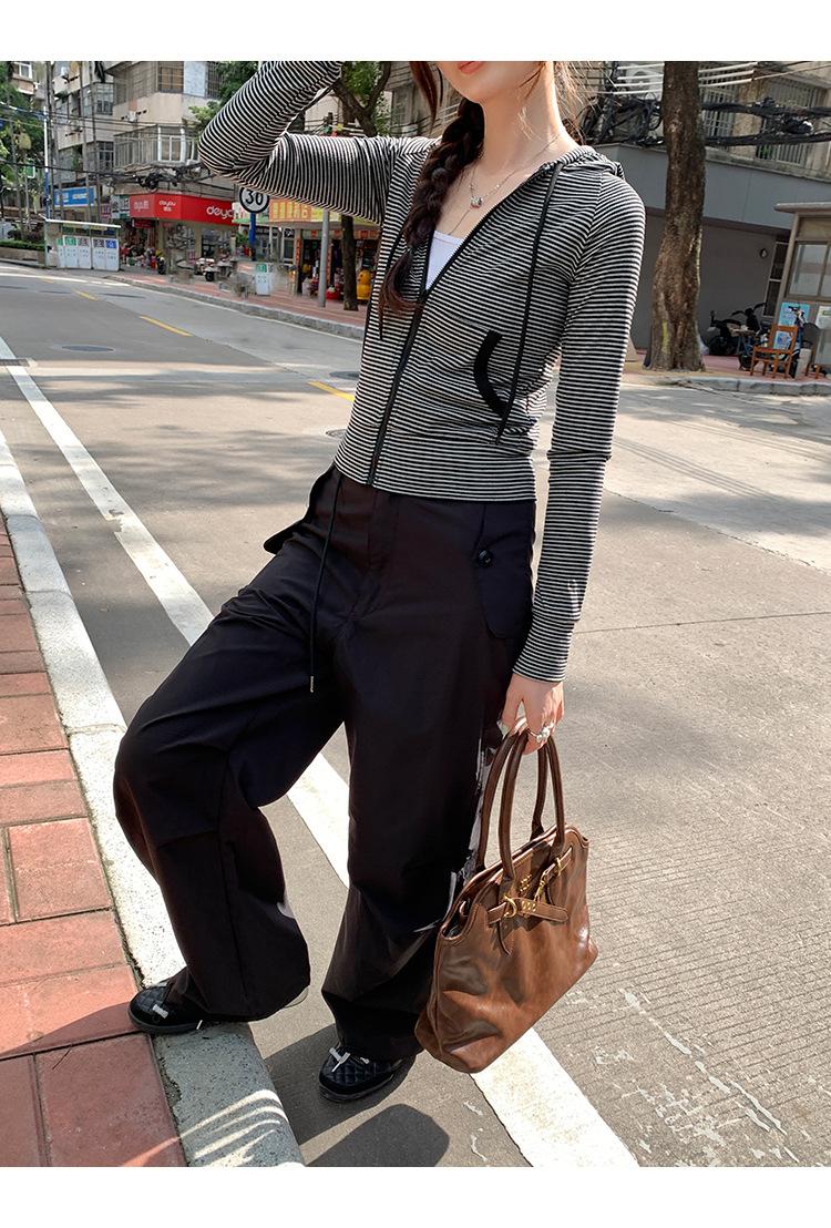 Sentido del diseño con cordón con capucha cárdigan casual a rayas ropa de mujer 2025 principios de otoño nuevo suéter chic abrigo top