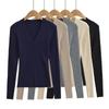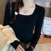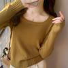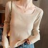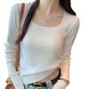 Suéter fino de punto, nuevo estilo para principios de otoño, top de otoño para mujer, camiseta básica con cuello cuadrado, suéter corto ajustado