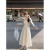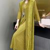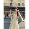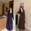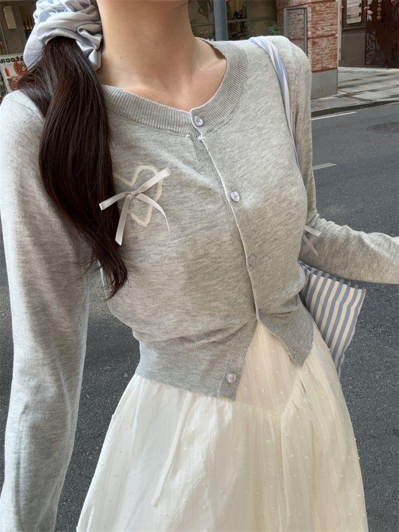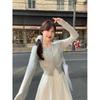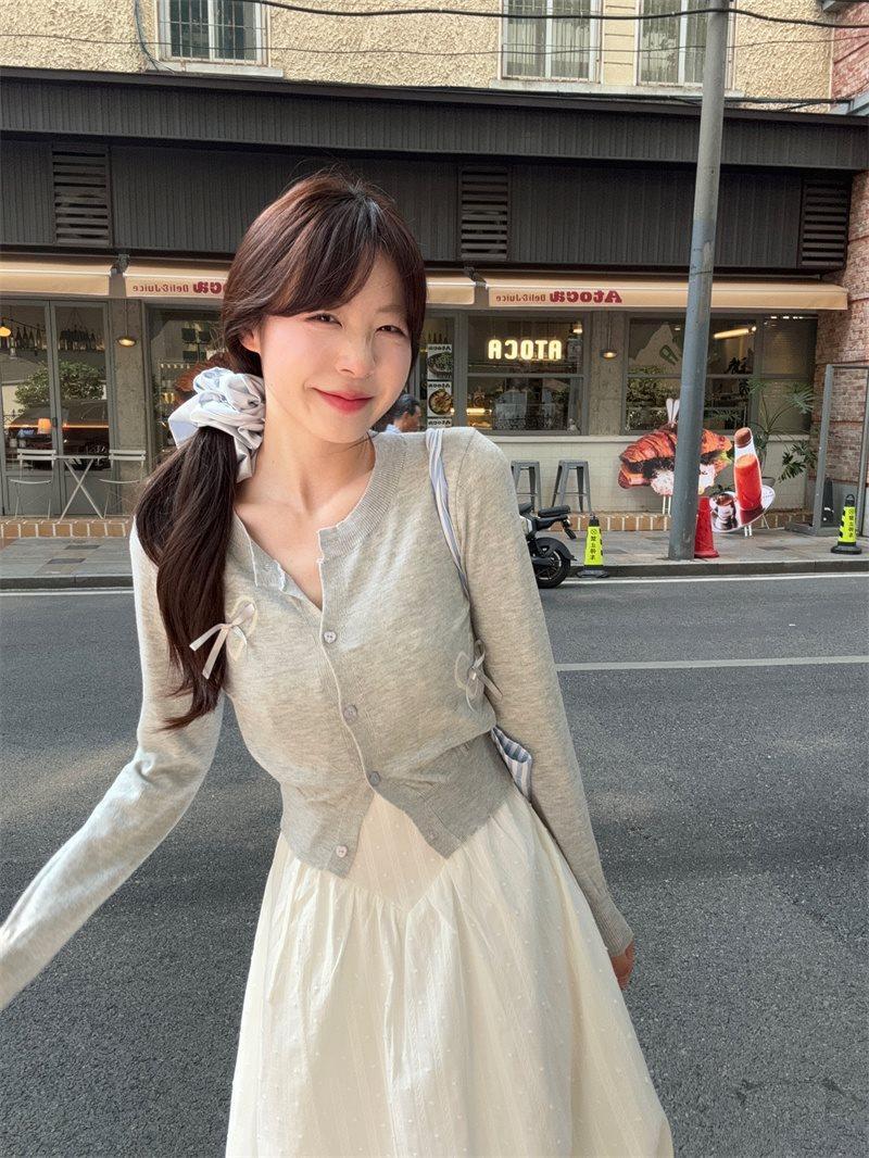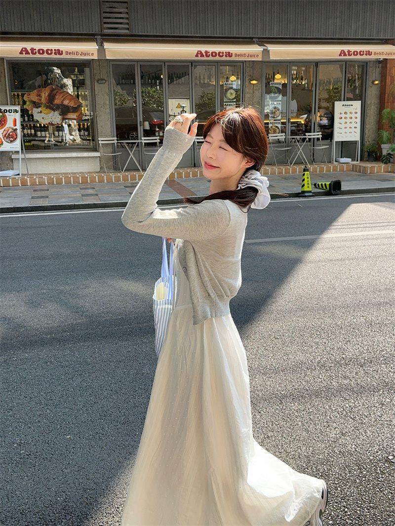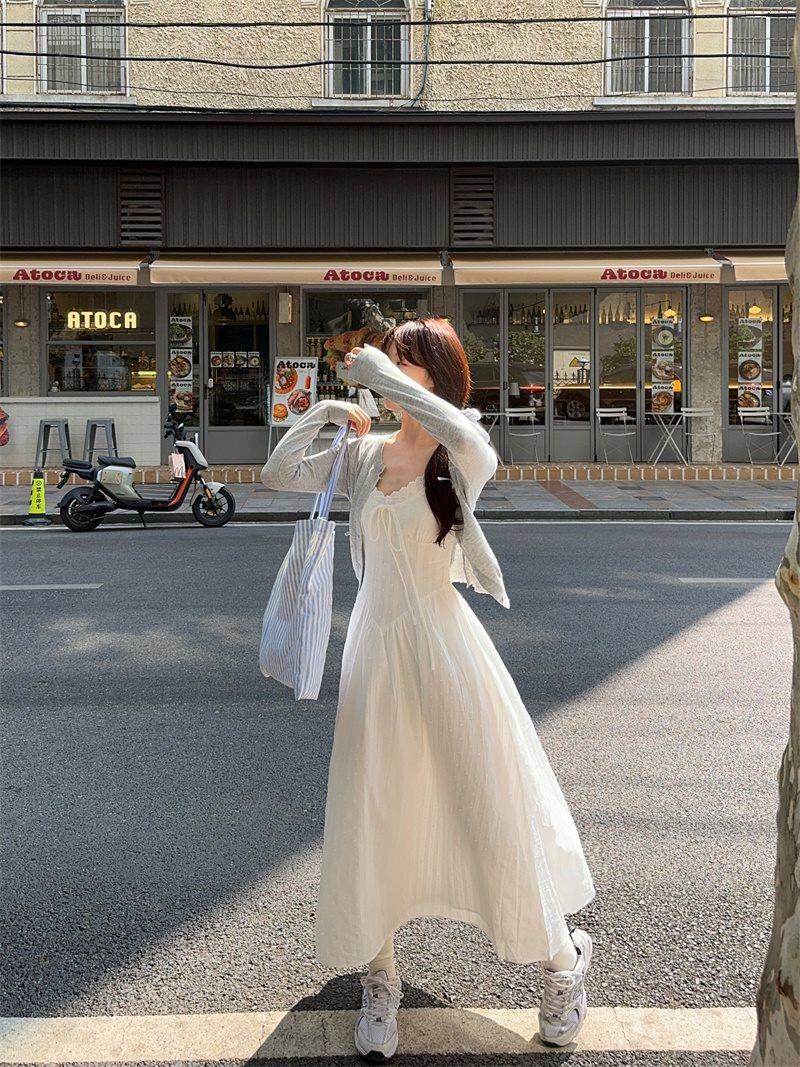Cárdigan de Punto de Manga Larga Estilo Suave Ropa Exterior Encaje Patchwork Primer Amor Vestido de Tirantes Espagueti Otoño Nuevo Conjunto de Moda Mujeres