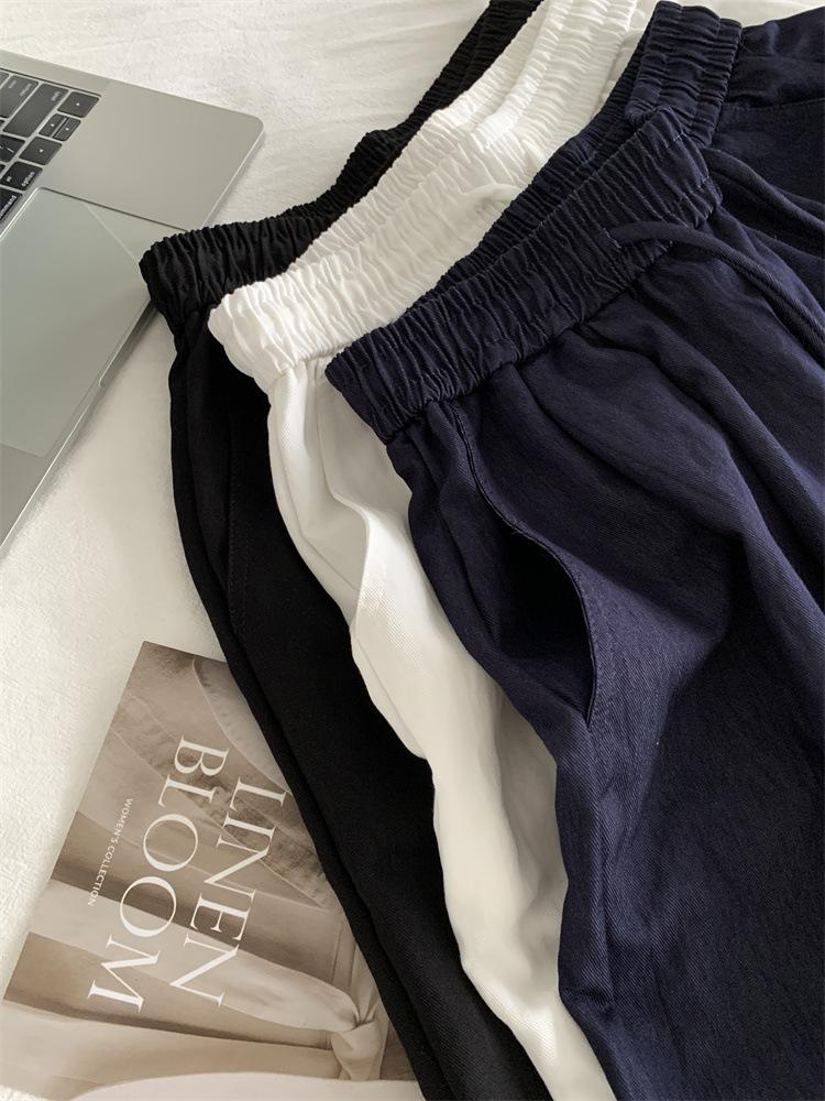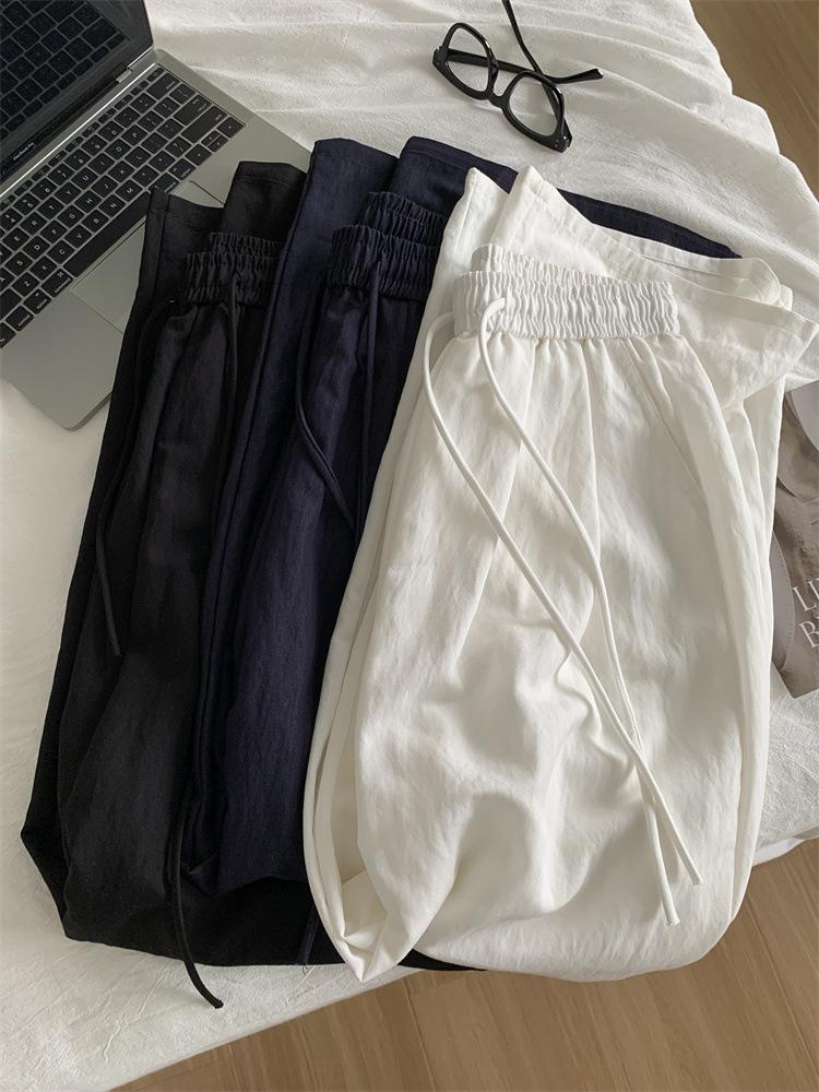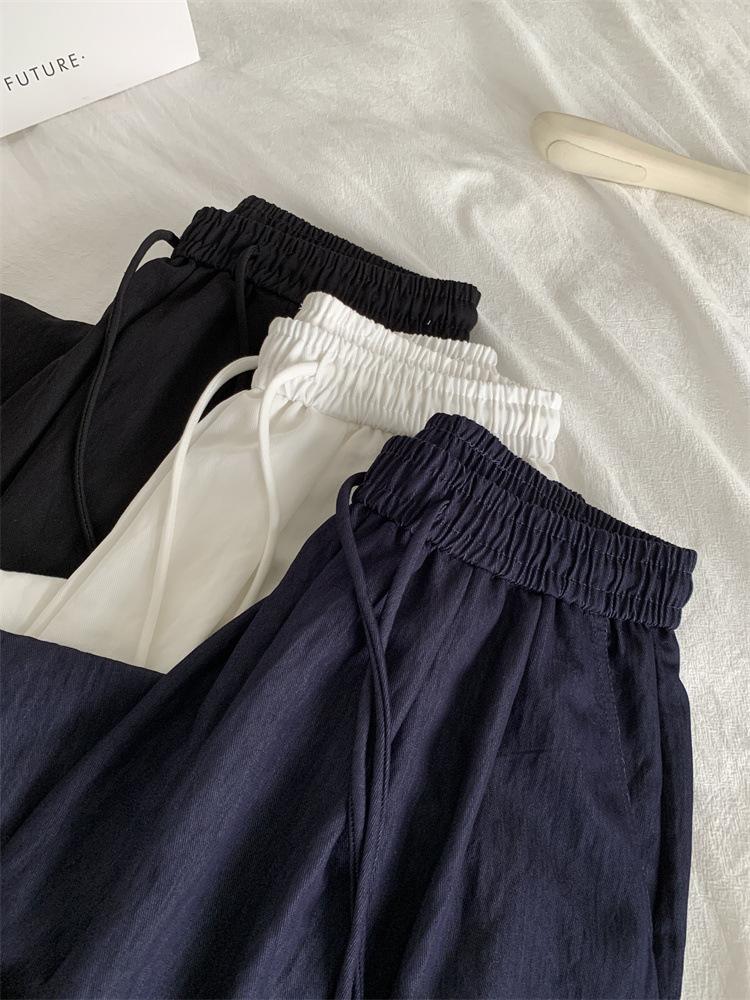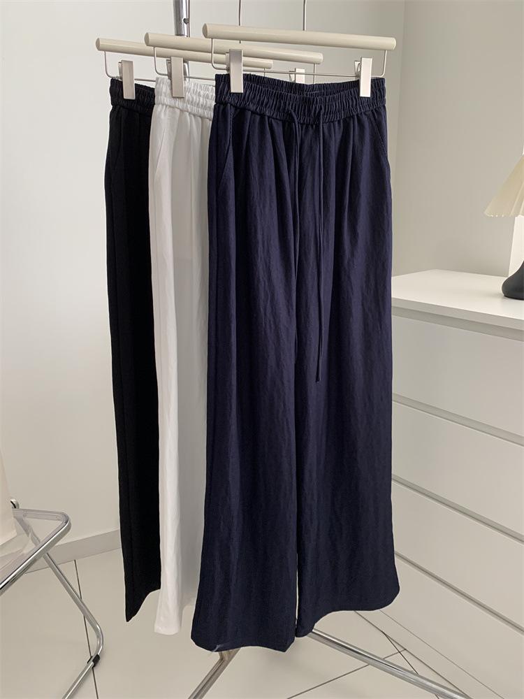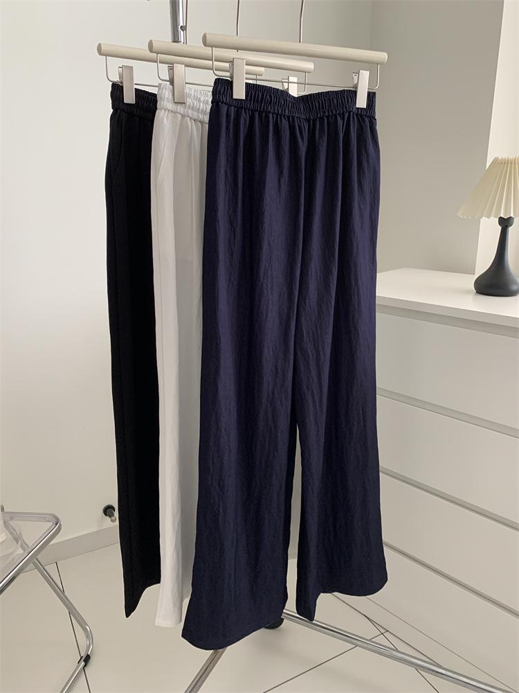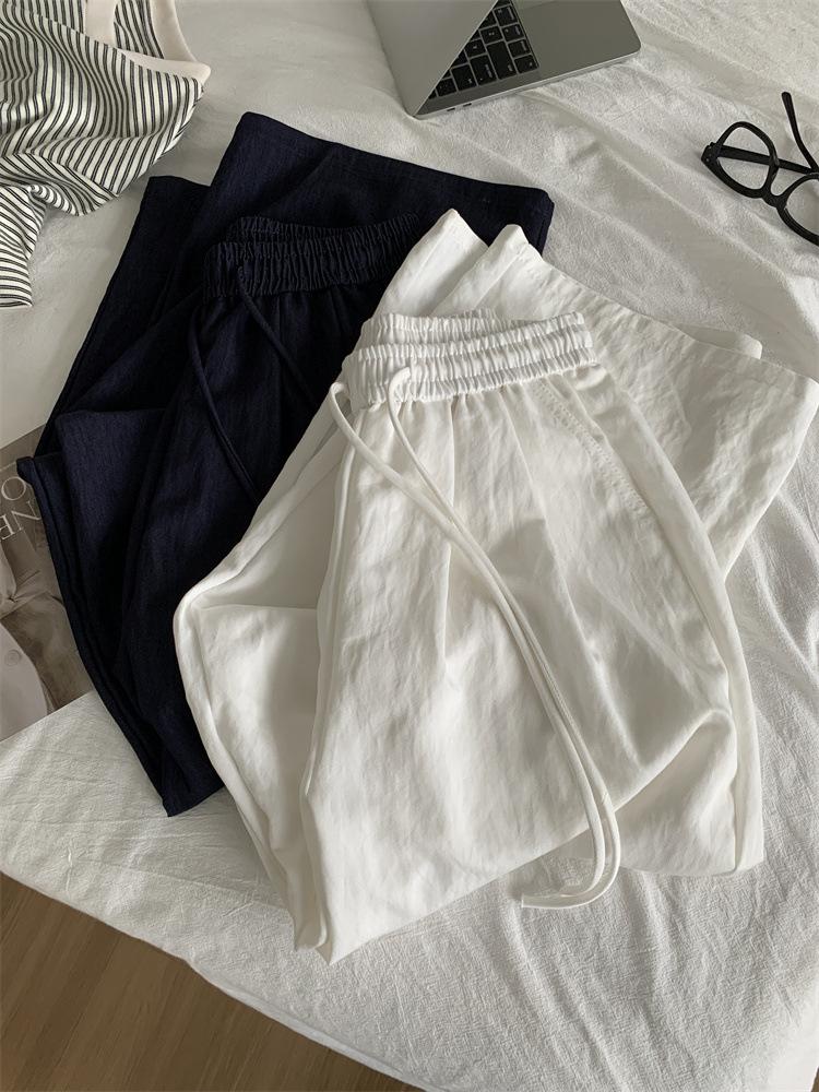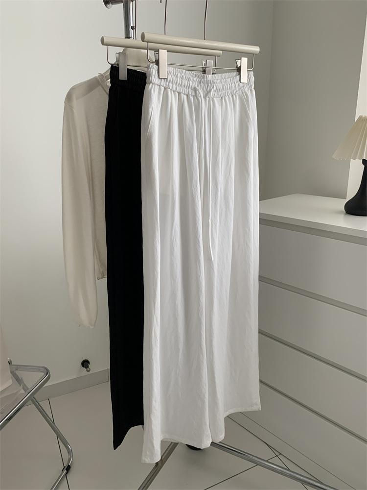 Temperamento estilo coreano drapeado imitación Tencel pantalones casuales de pierna ancha para mujer delgados de cintura alta pantalones de barrido primavera y verano pantalones delgados y frescos