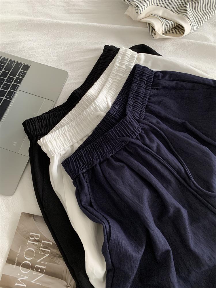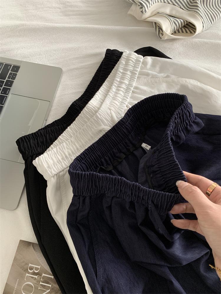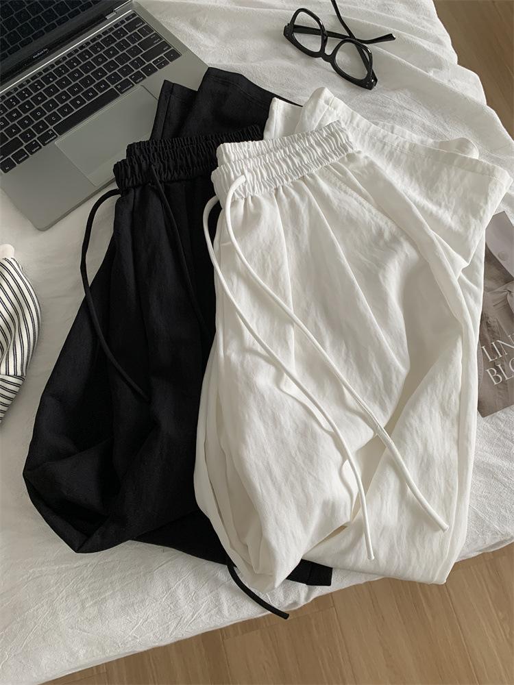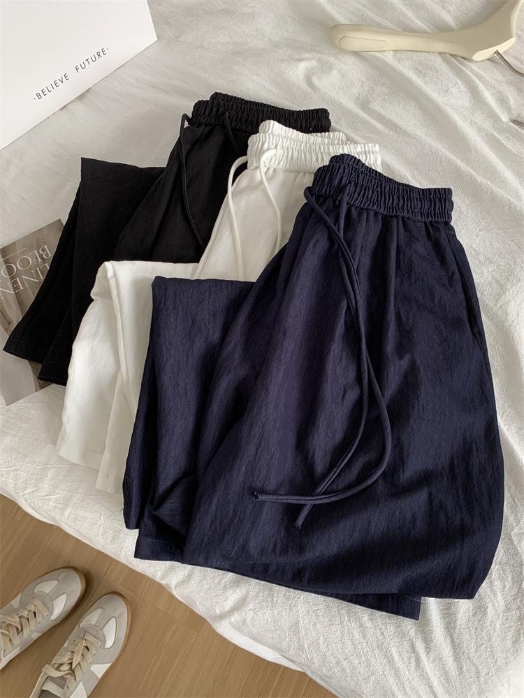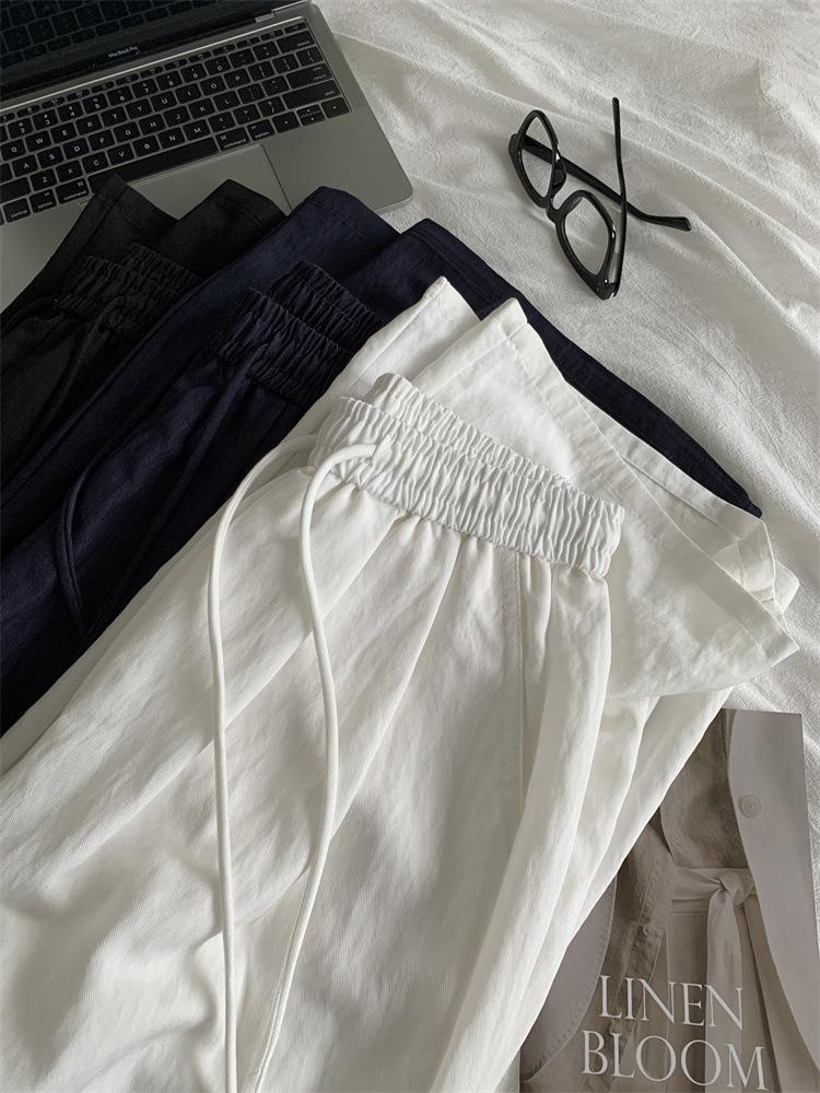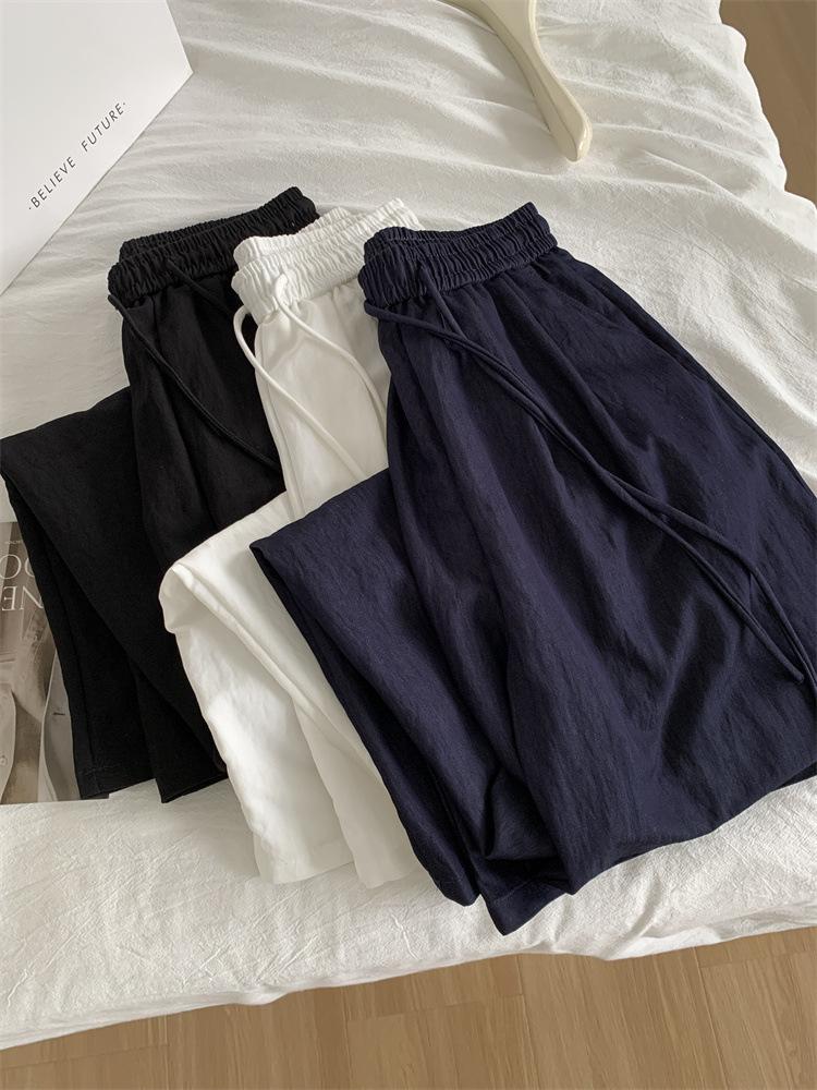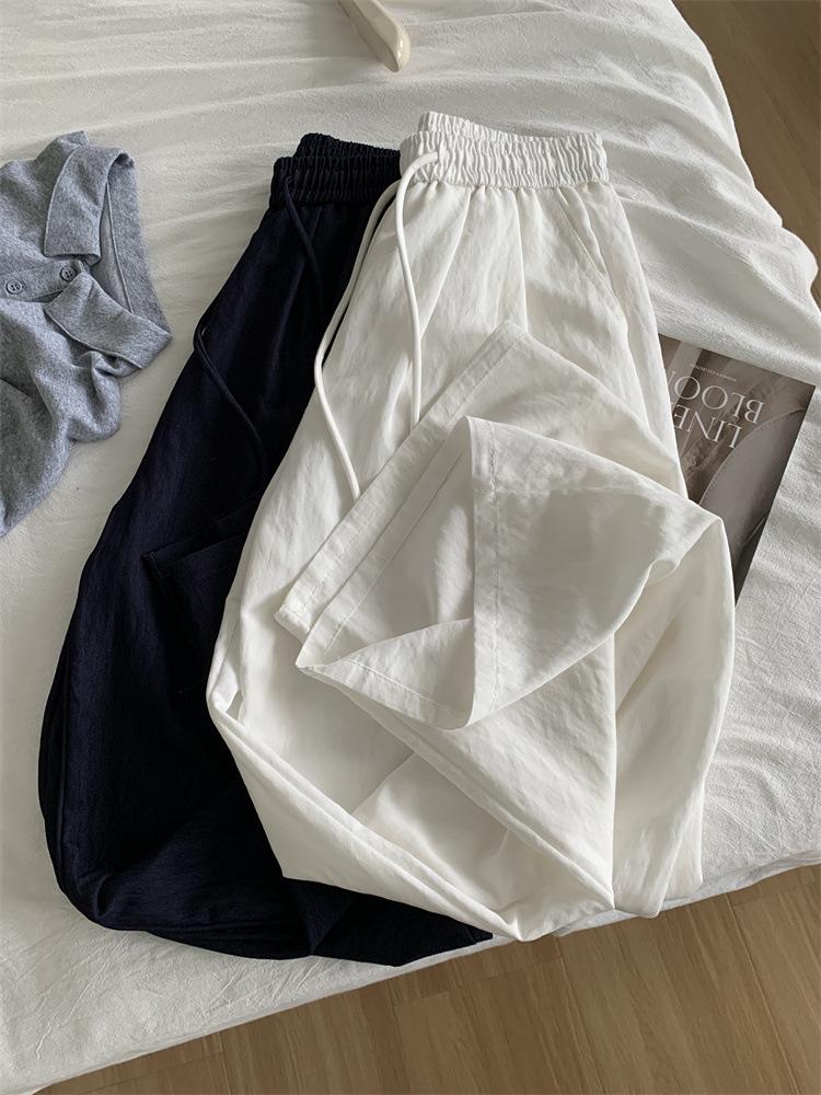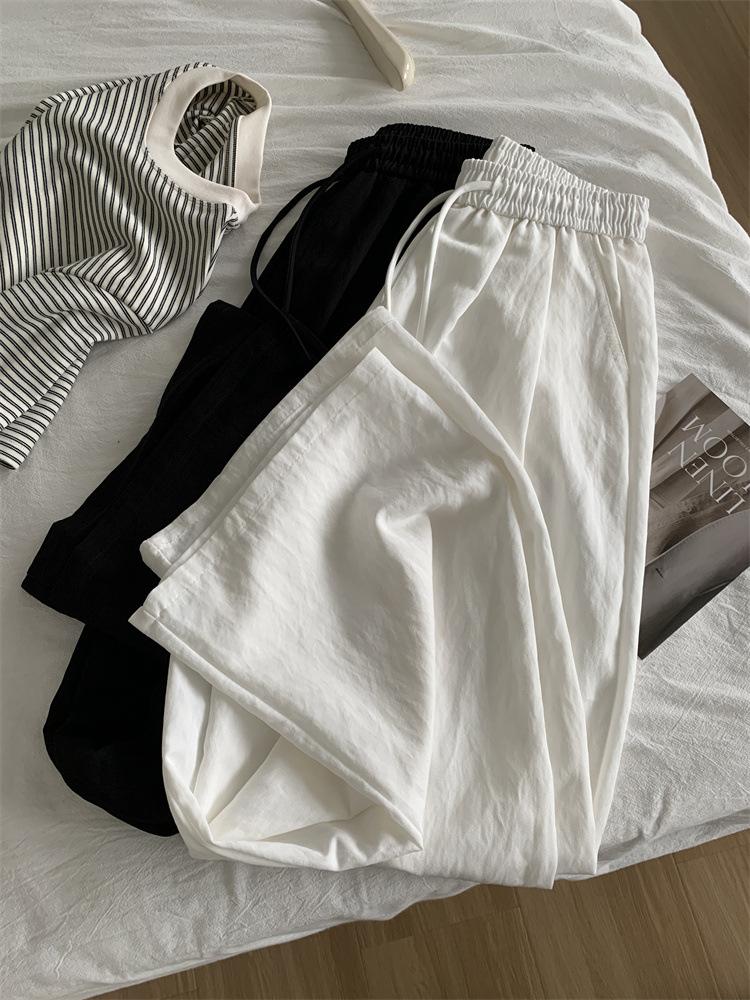 Temperamento estilo coreano drapeado imitación Tencel pantalones casuales de pierna ancha para mujer delgados de cintura alta pantalones de barrido primavera y verano pantalones delgados y frescos