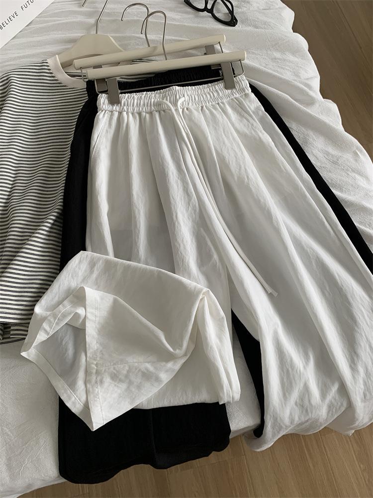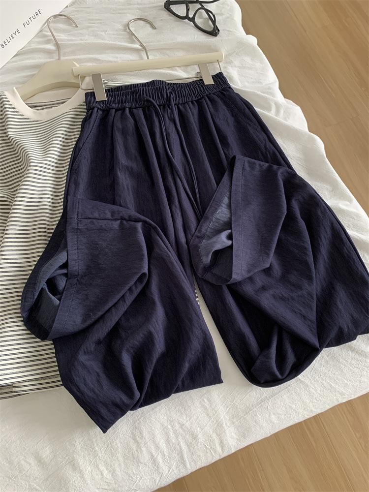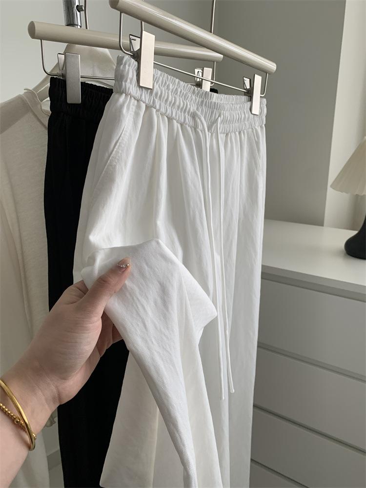 Pantalones casuales de pierna ancha de seda de hielo fina y drapeada para mujer 2025 Verano Nuevo Adelgazantes de Cintura Alta hasta el Suelo Pantalones Frescos