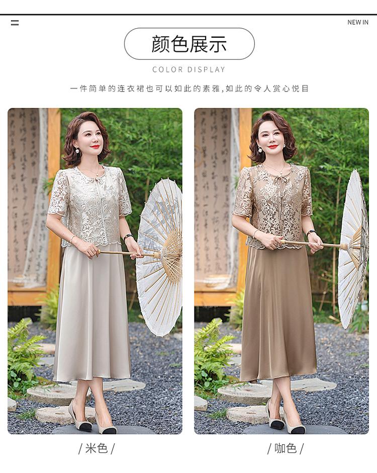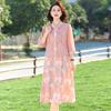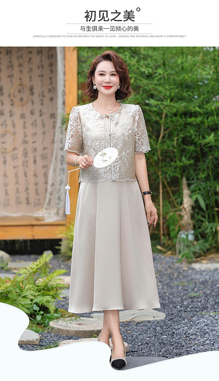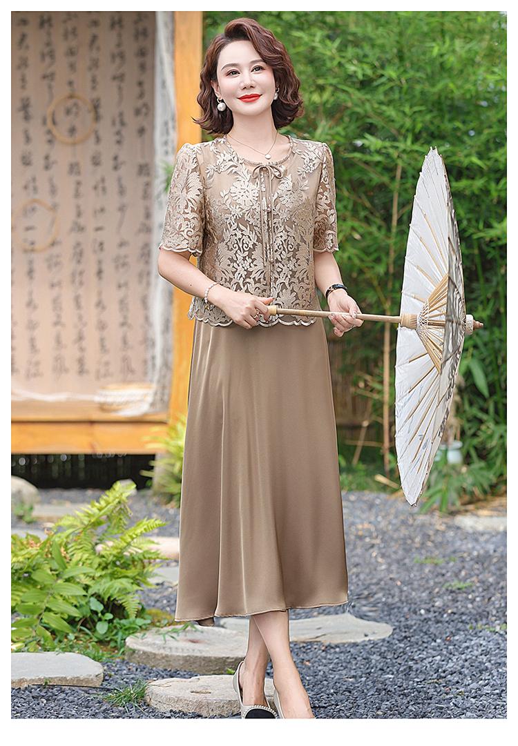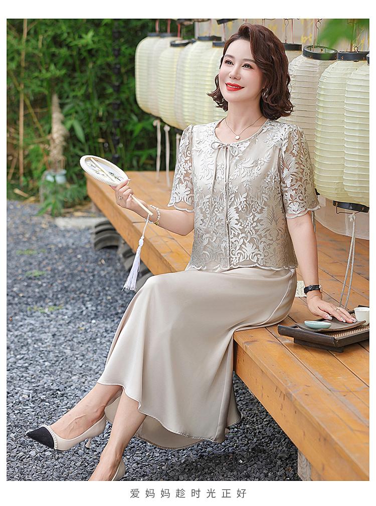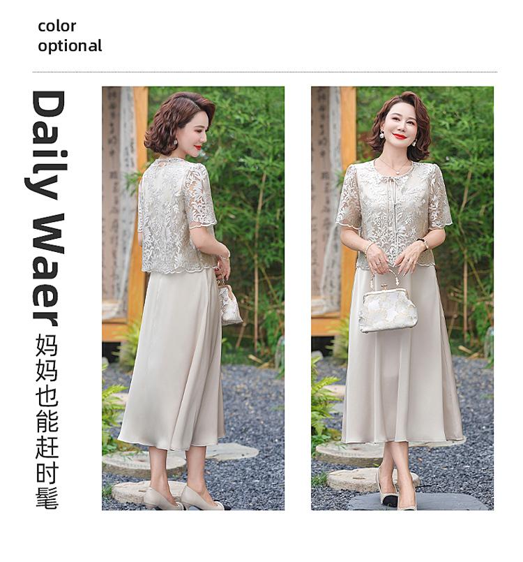 Vestido de Verano para Mamá 2025 Nuevo Traje, Vestido Estilo Occidental, Nuevo Estilo Chino para Mujeres de Mediana Edad y Mayores, Falda de Seda de Dos Piezas