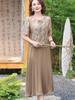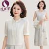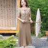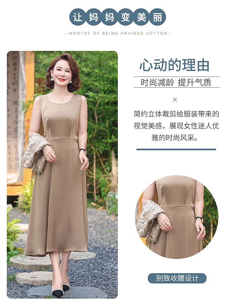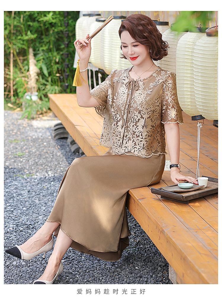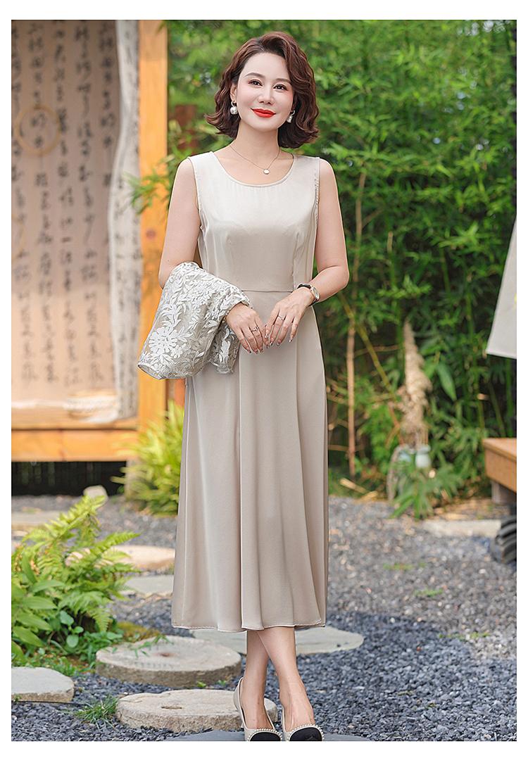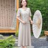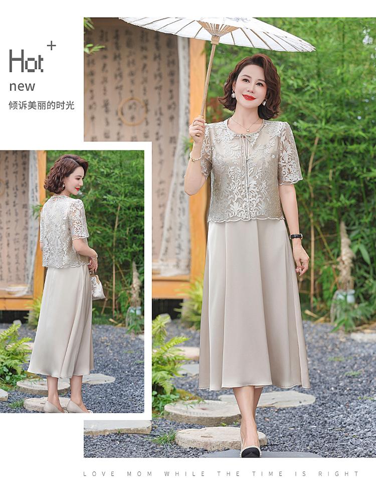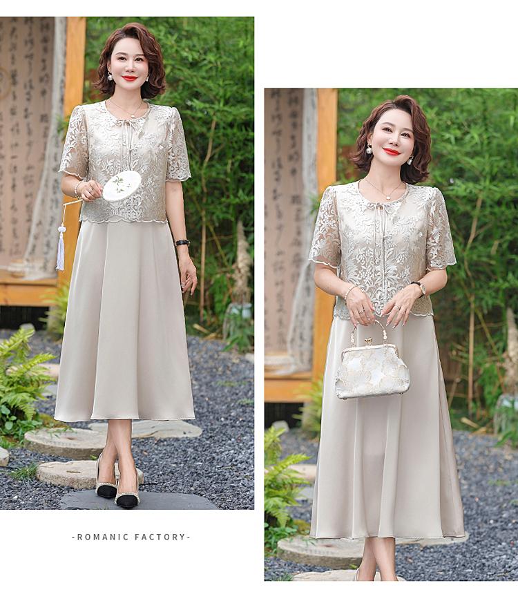 Vestido de Verano para Mamá 2025 Nuevo Traje, Vestido Estilo Occidental, Nuevo Estilo Chino para Mujeres de Mediana Edad y Mayores, Falda de Seda de Dos Piezas