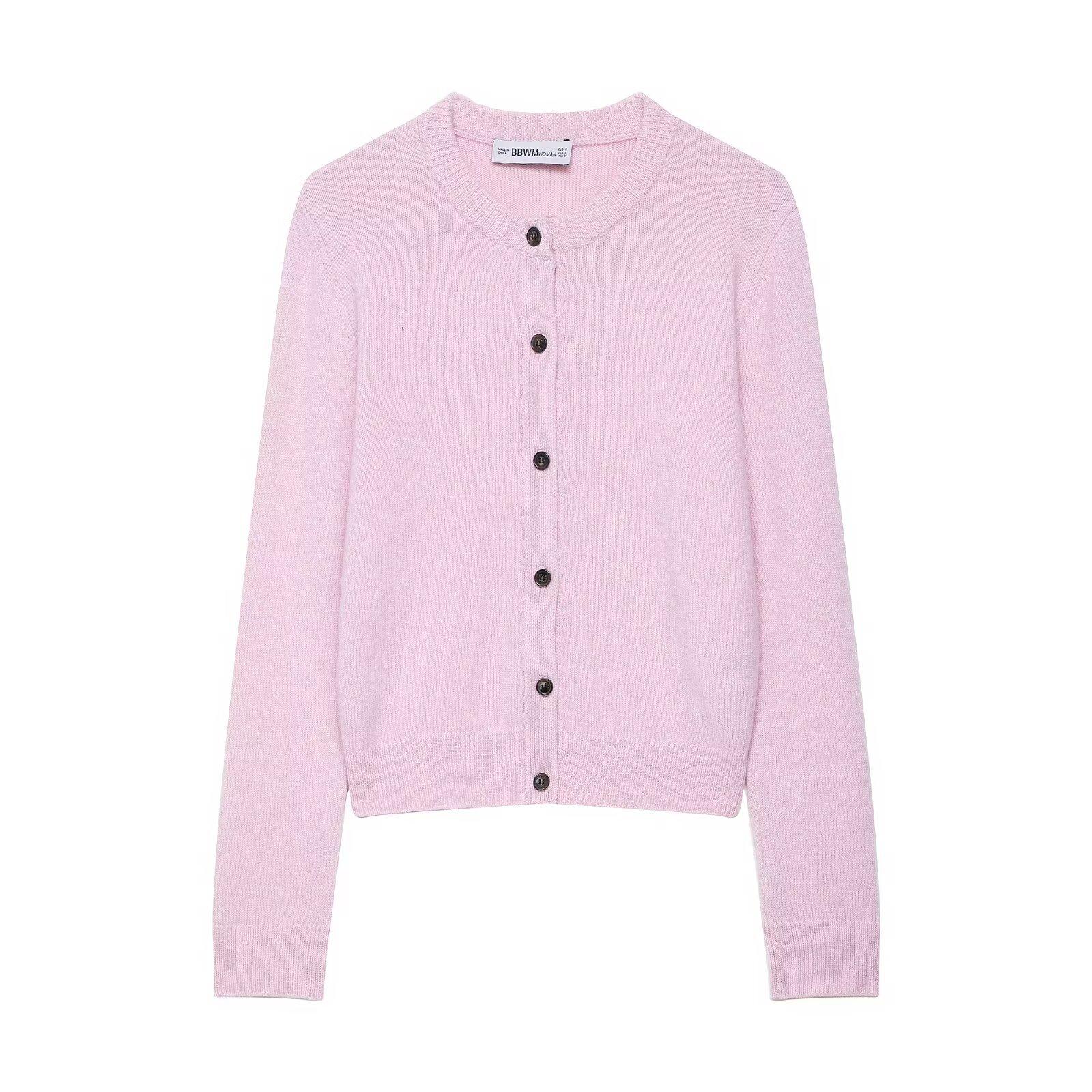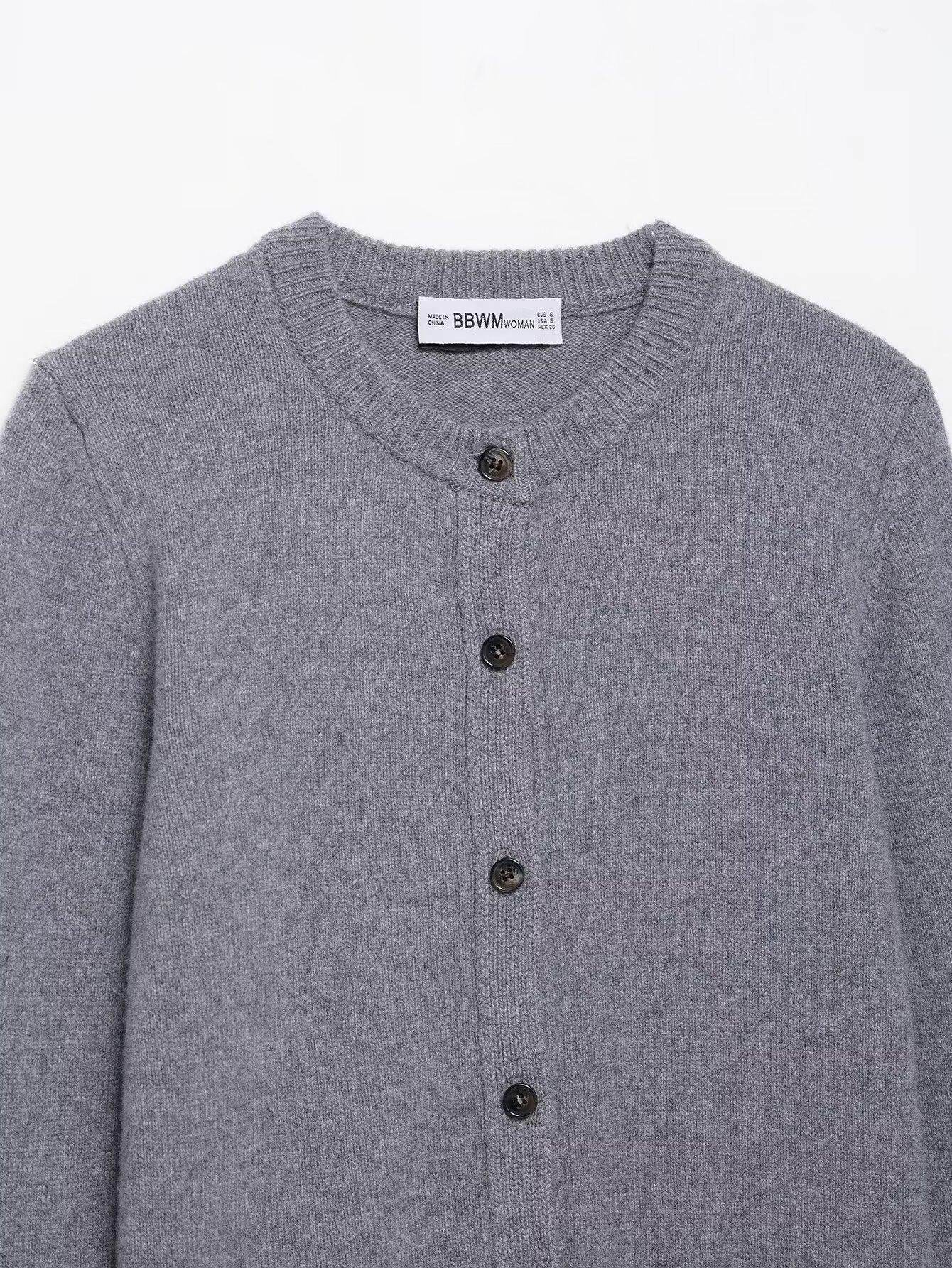 Ropa de Mujer de Comercio Exterior Transfronterizo 2025 Otoño Estilo Europeo y Americano Cuello Redondo Manga Larga Un Botón Color Sólido Cárdigan Tejido Abrigo Mujer A36806