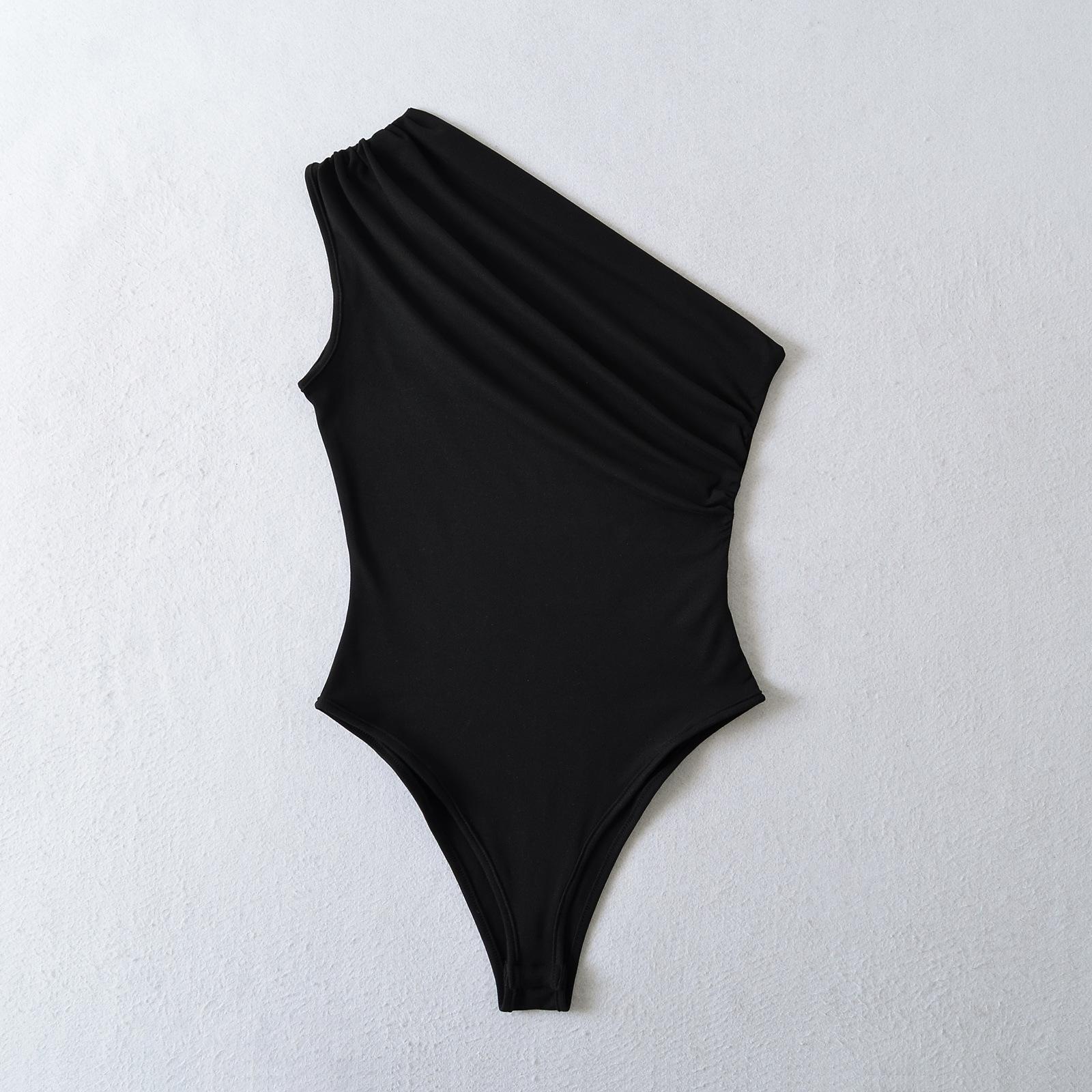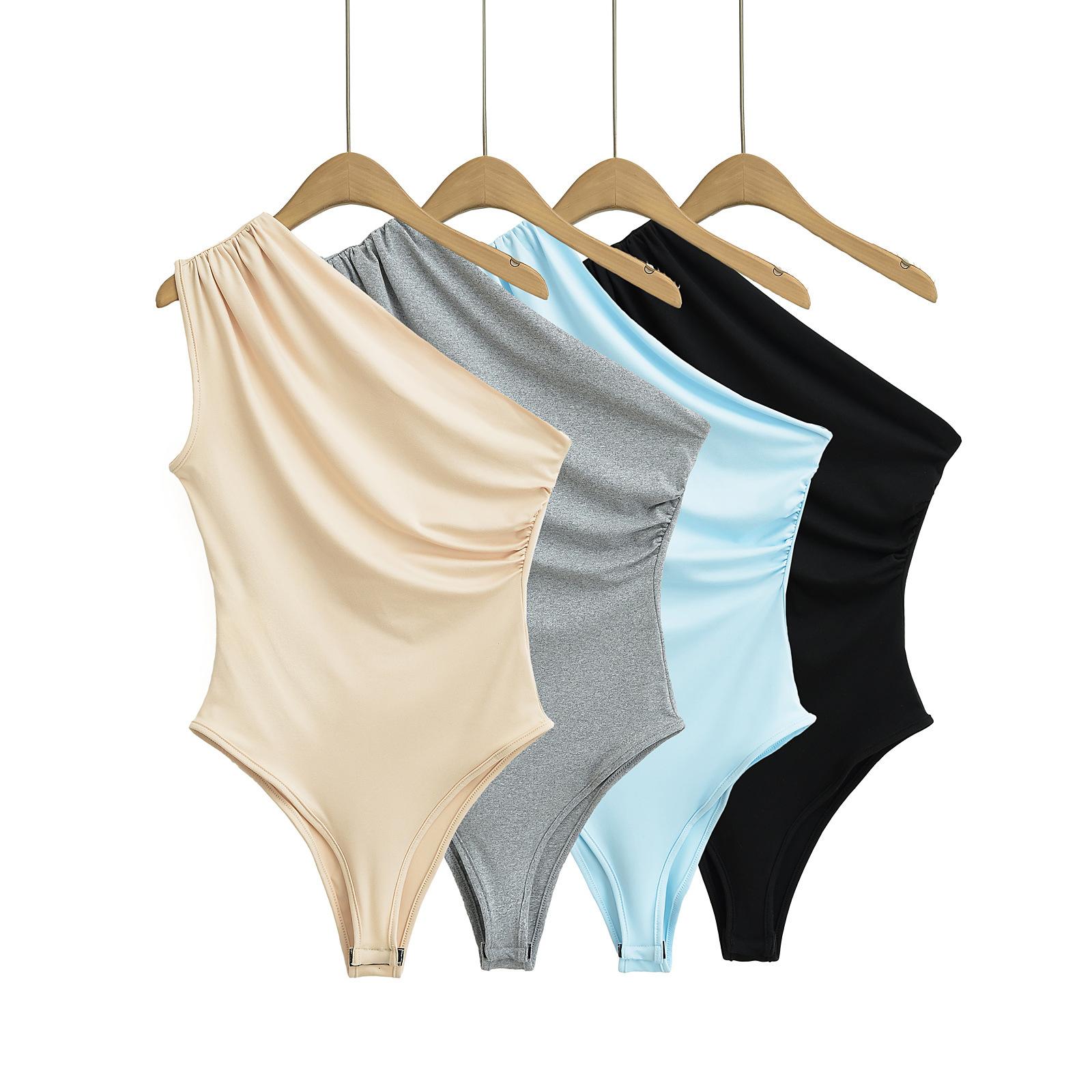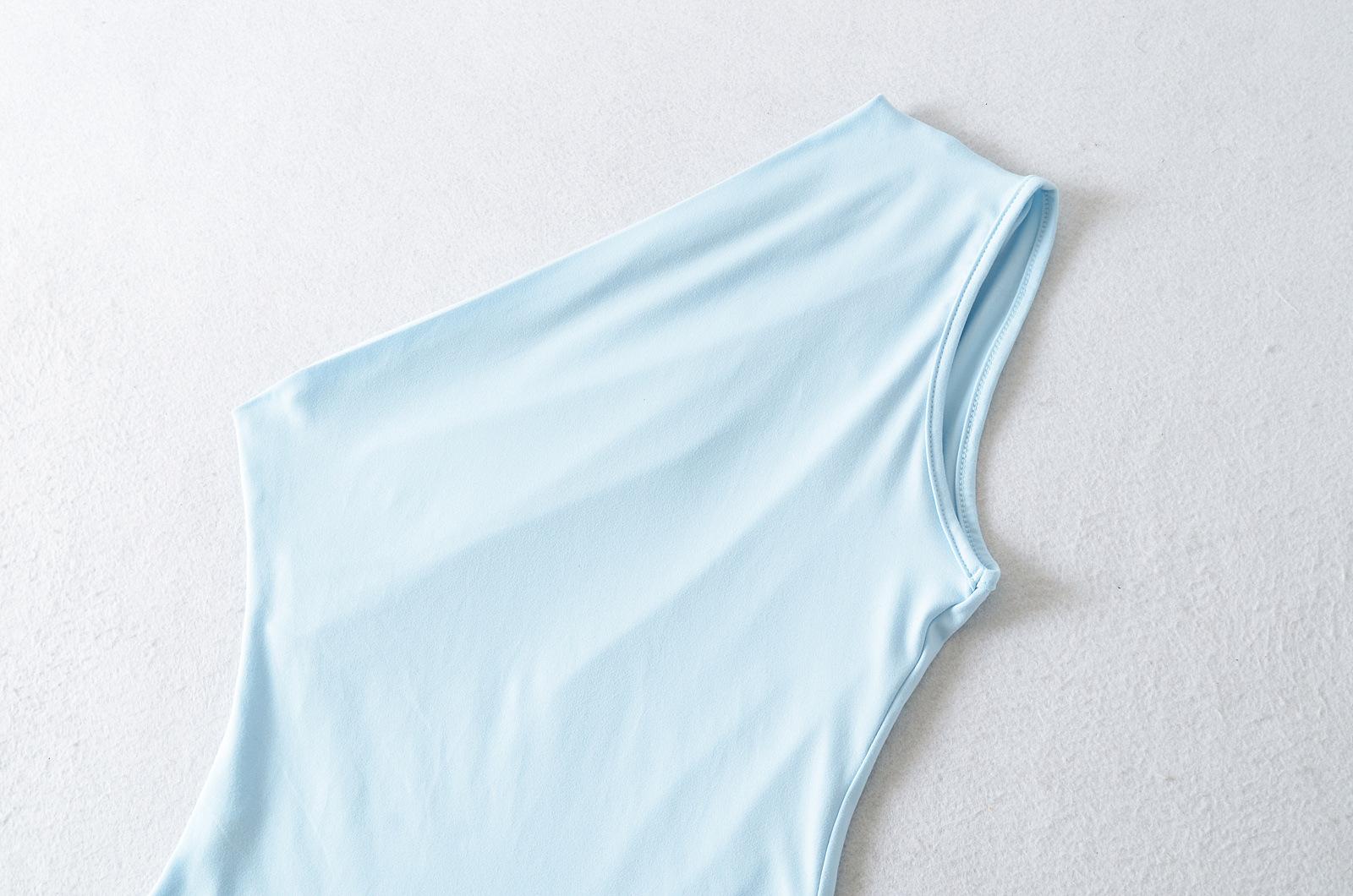 931-Mono ajustado estilo europeo y americano para mujer 2025 nuevo sexy chica hot sin mangas cuello inclinado camisa básica