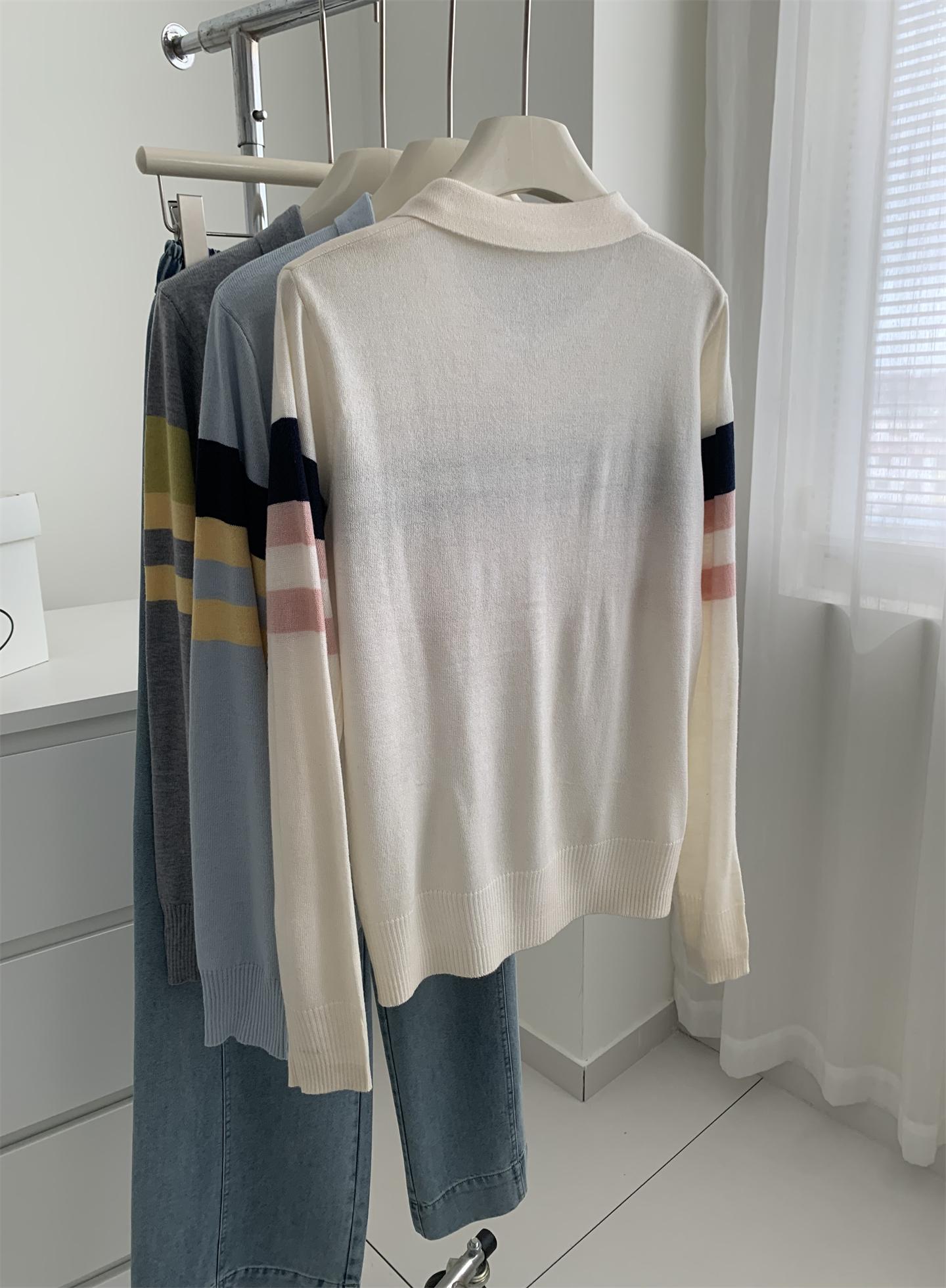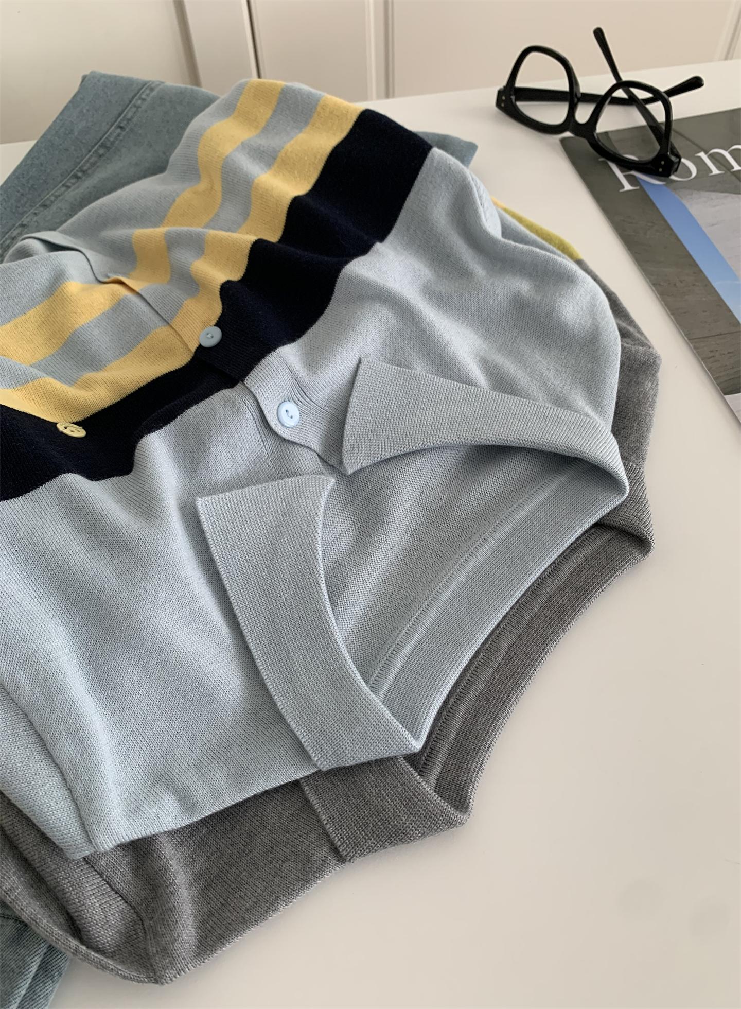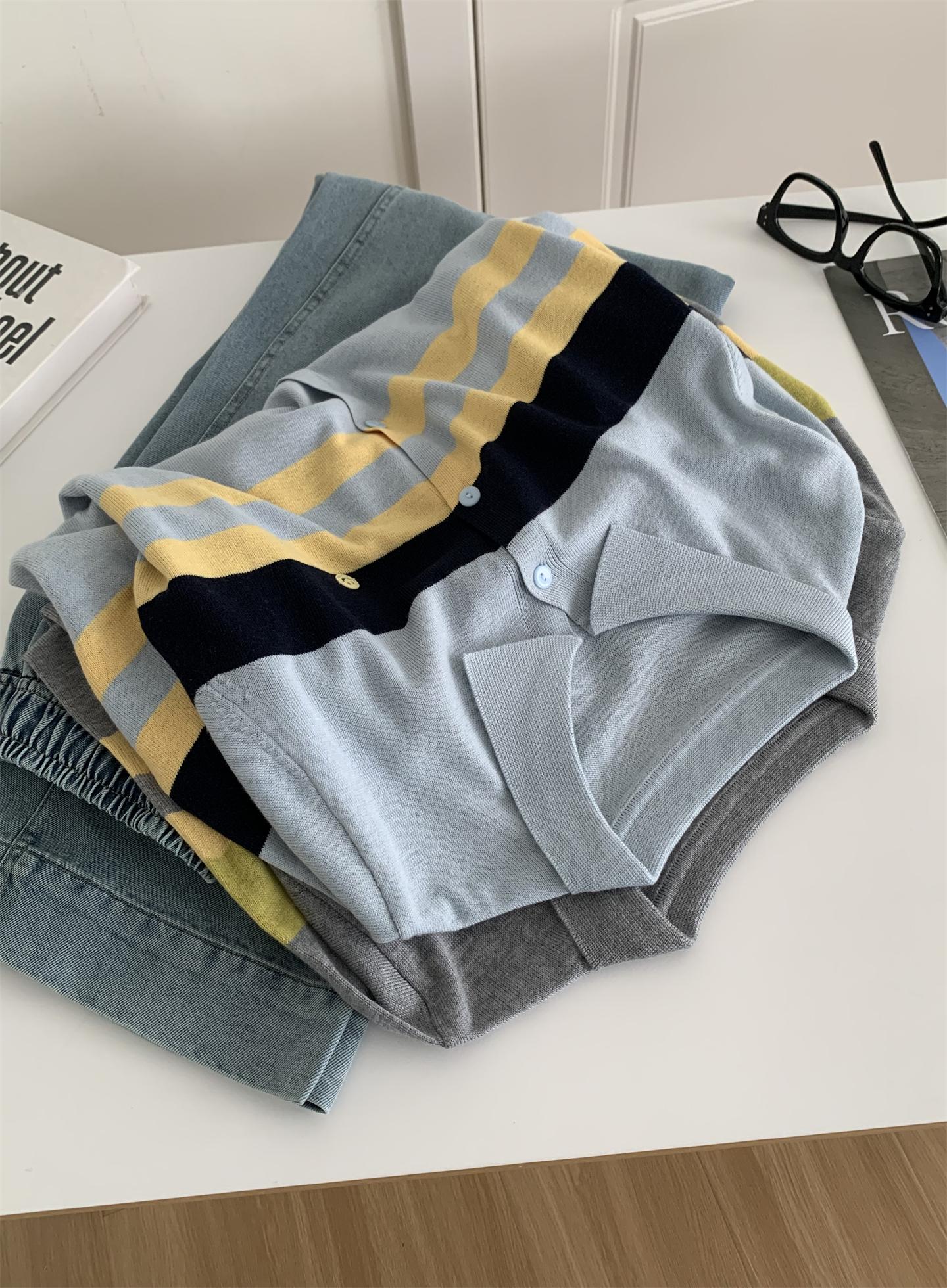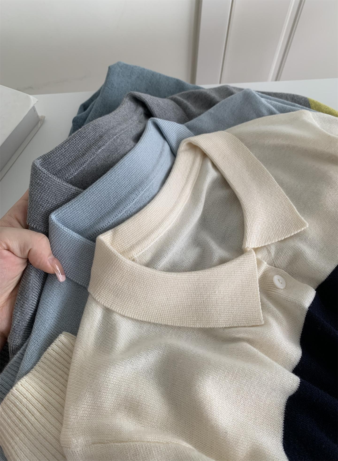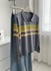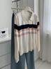 Suéter de Punto con Cuello Abotonado y Cara Sonriente para Mujer, Suave y Delicado con la Piel, Lana Merino, Bloque de Color, Rayado, Tipo Polo, Cárdigan, Chaqueta, Otoño