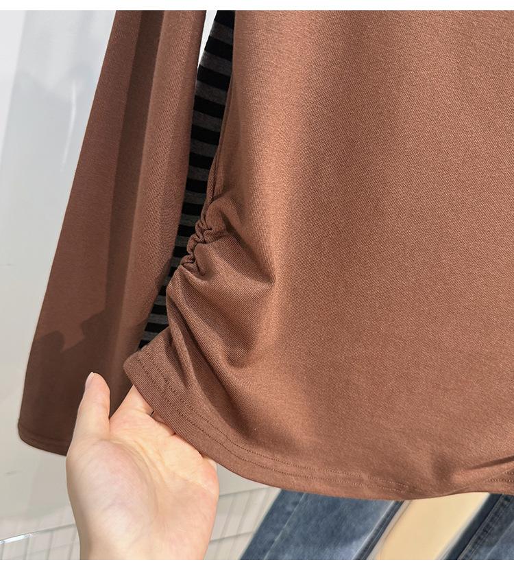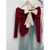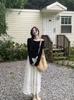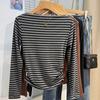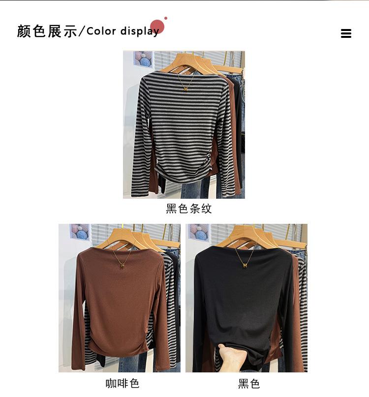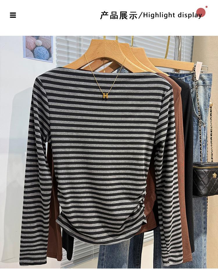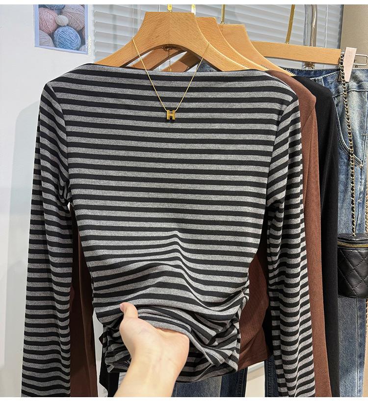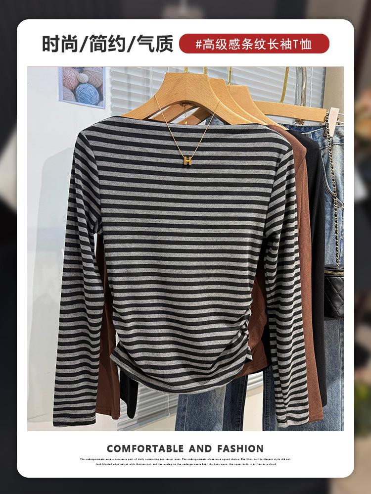 Foto real Camiseta francesa de un hombro de manga larga para mujer otoño e invierno sentido de alta gama fuera del hombro camisa base moda y estilo extranjero top corto
