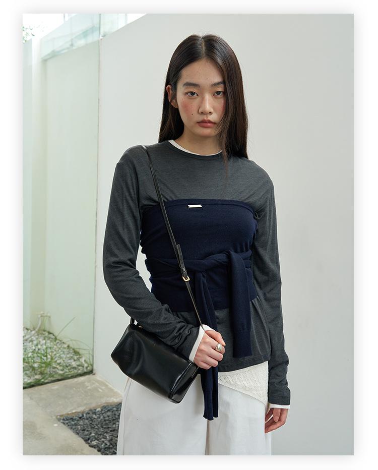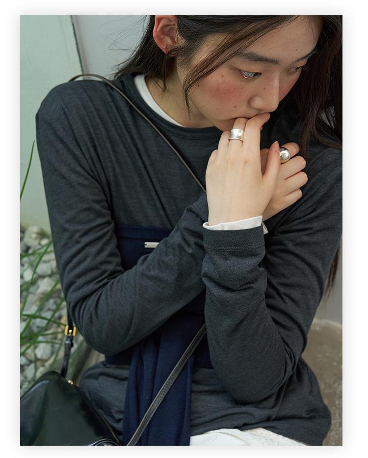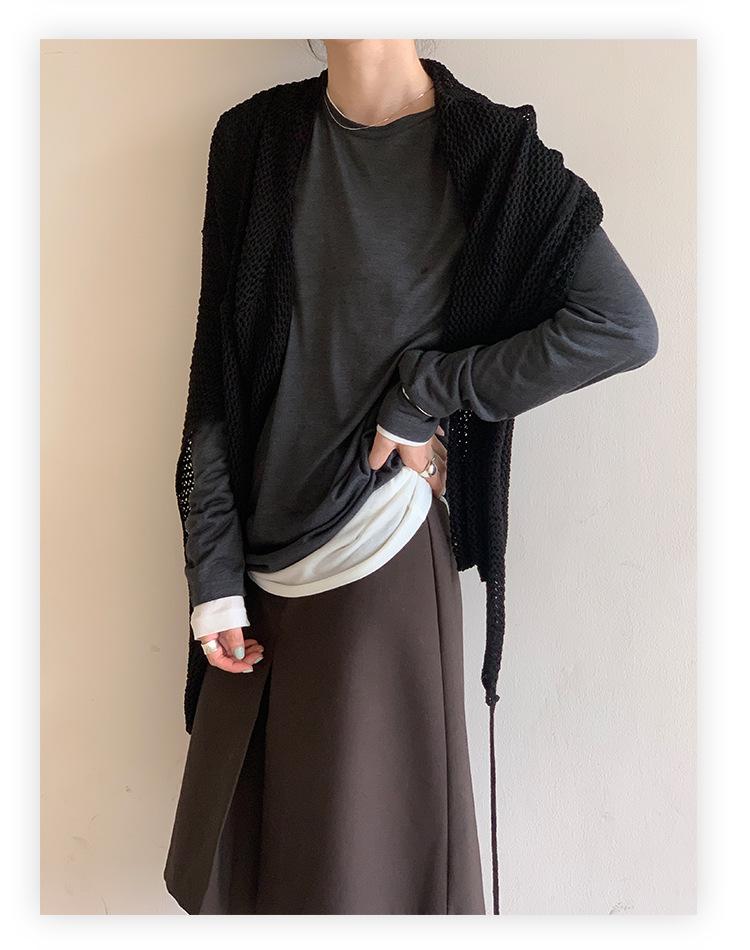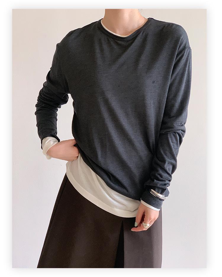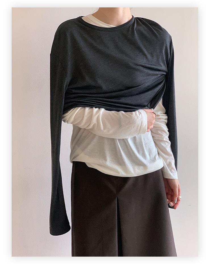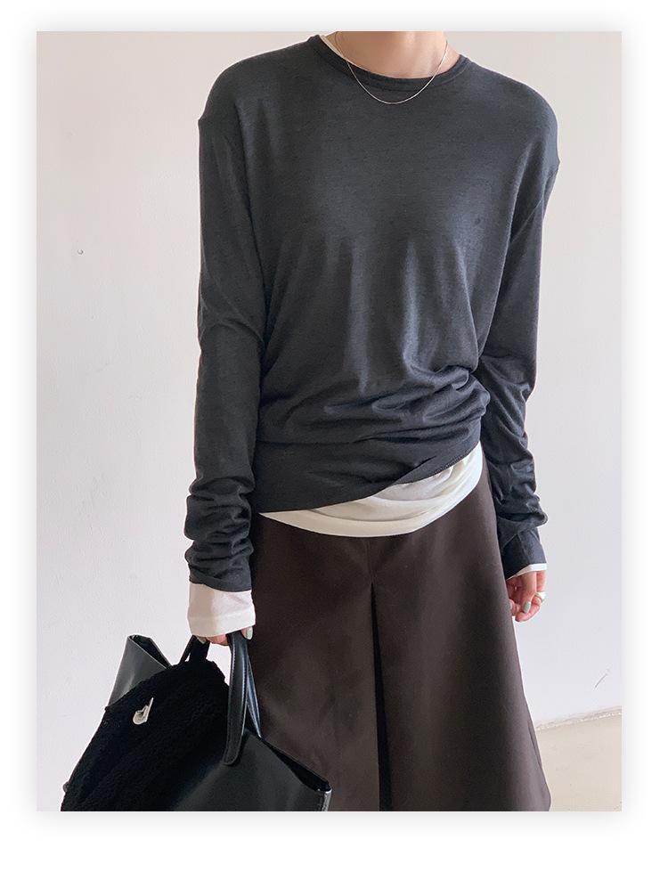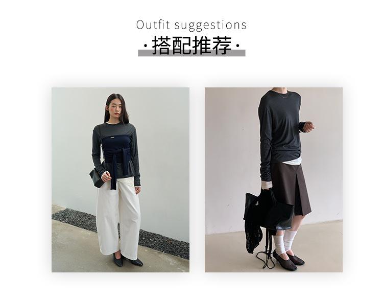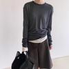 EMONI color sólido estilo coreano holgado adelgazante punto 2025 otoño modal ins versátil camiseta de manga larga 14329