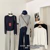 2025 Nueva Camiseta Simple de Cuello Redondo Estilo Coreano para Mujer Primavera y Otoño Holgada Adelgazante Versátil Camiseta Básica Top Casual Adelgazante