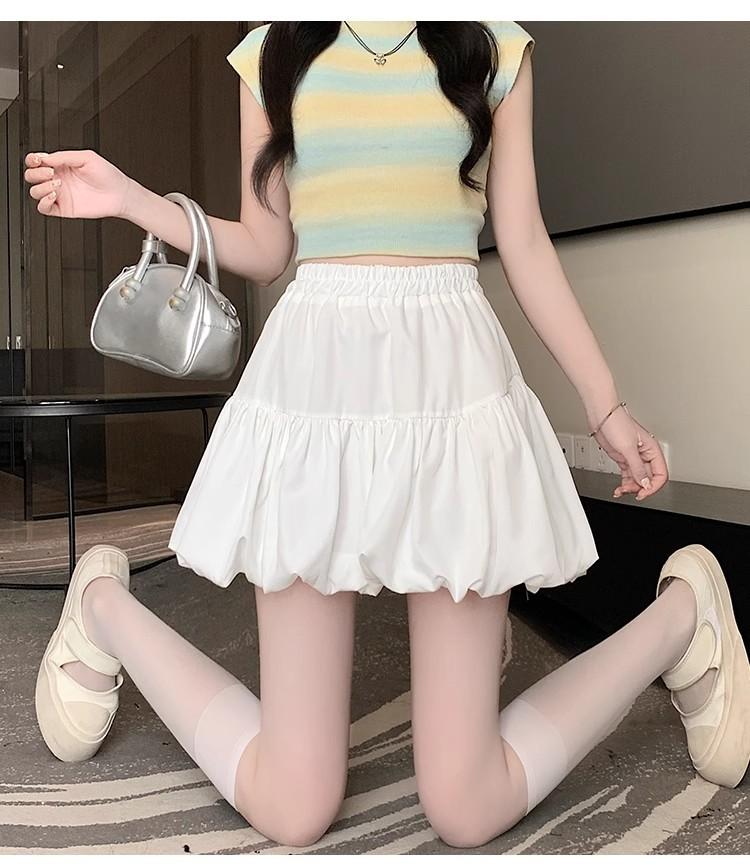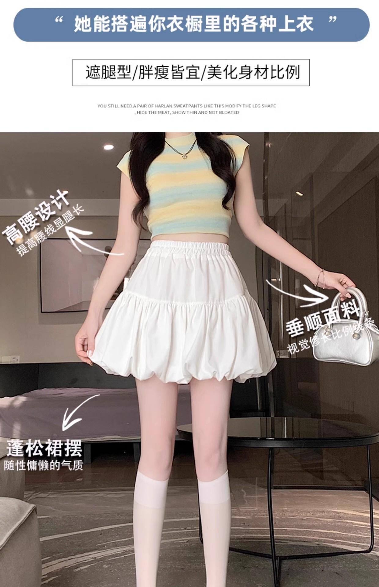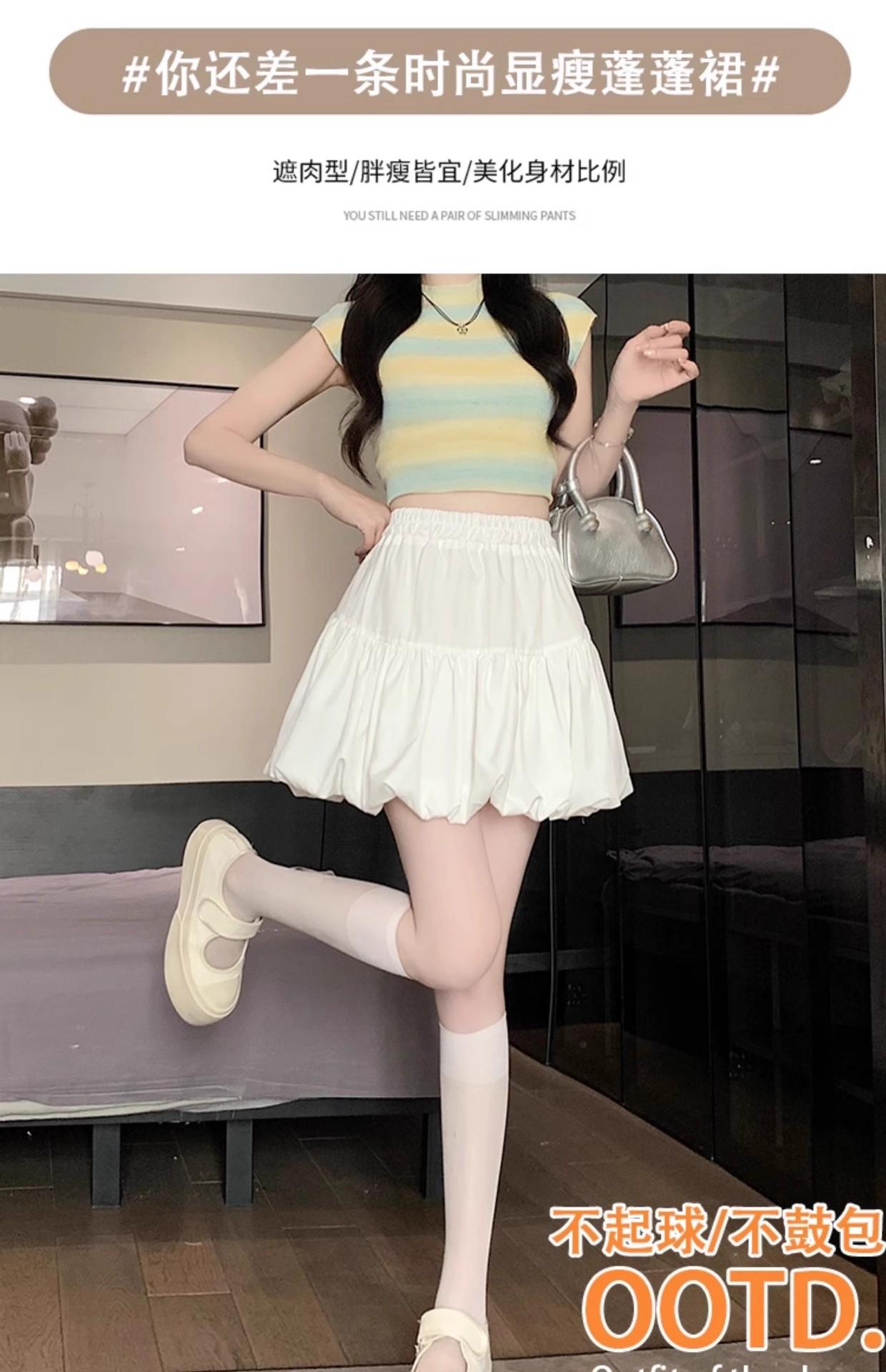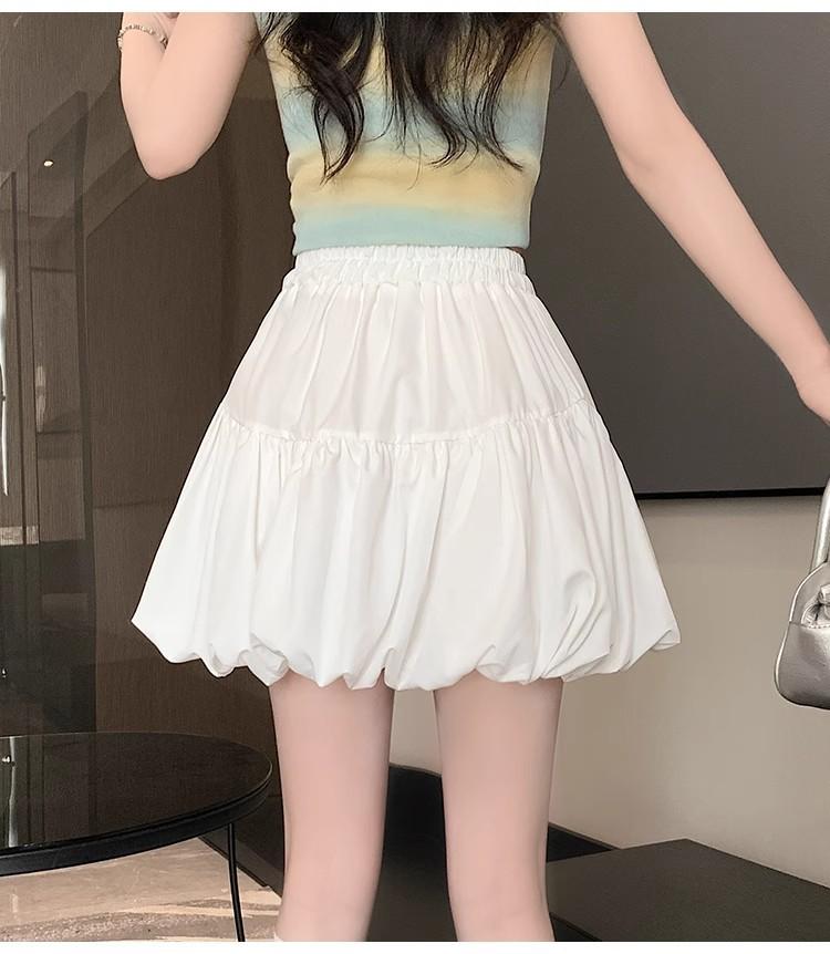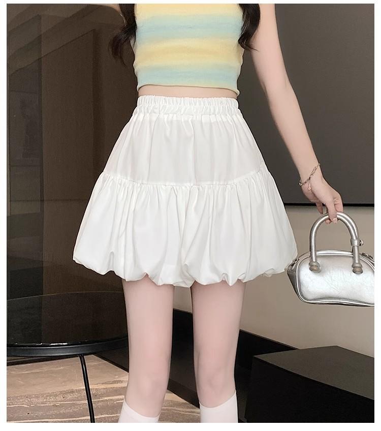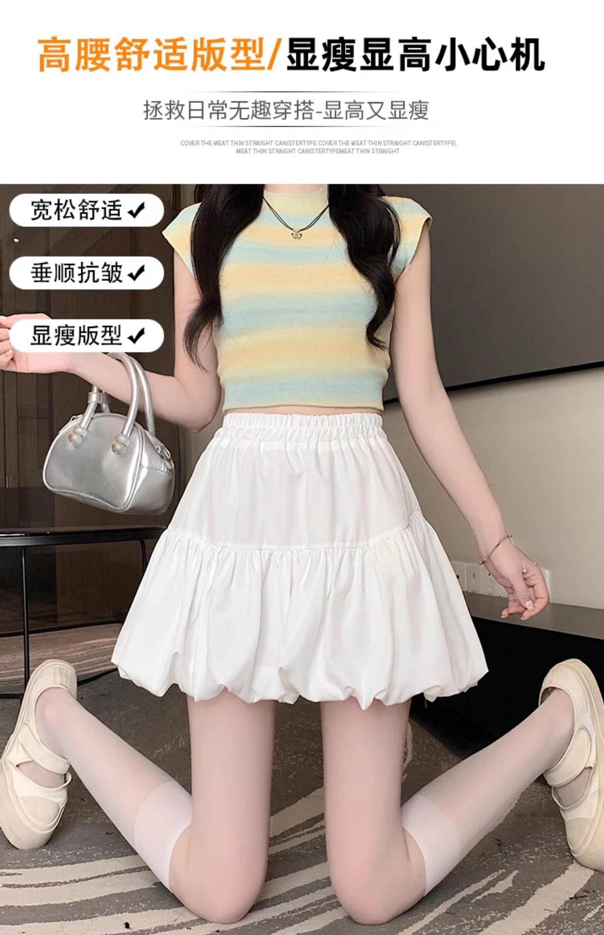 Falda midi blanca mujer 2025 nueva primavera/verano cintura alta moda petite tulipán elástica línea A falda abullonada minifalda
