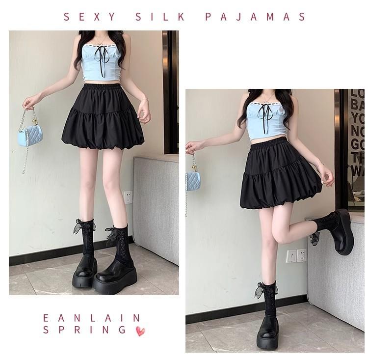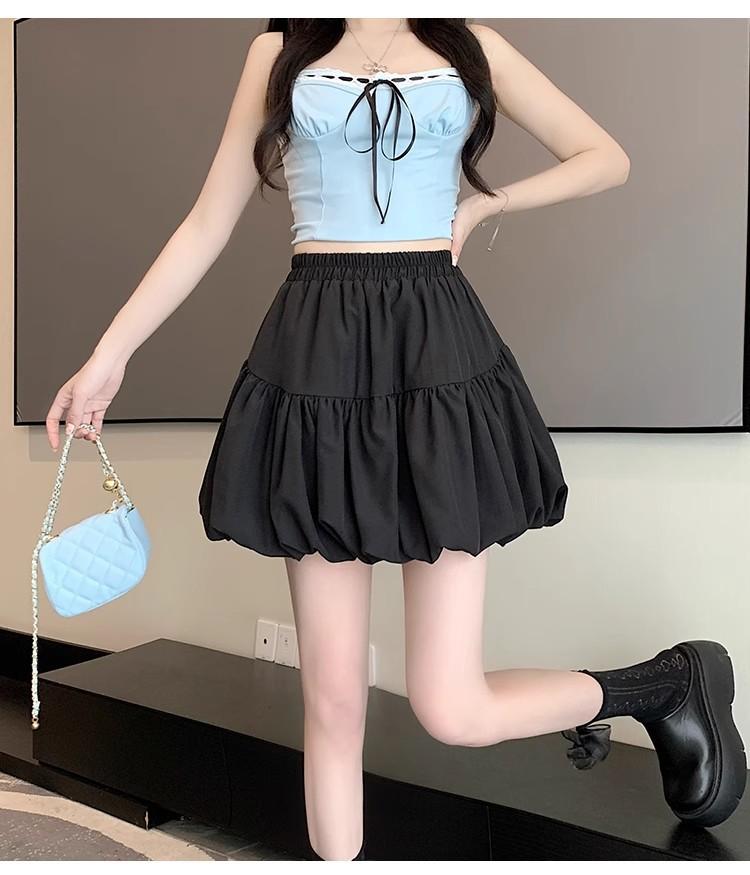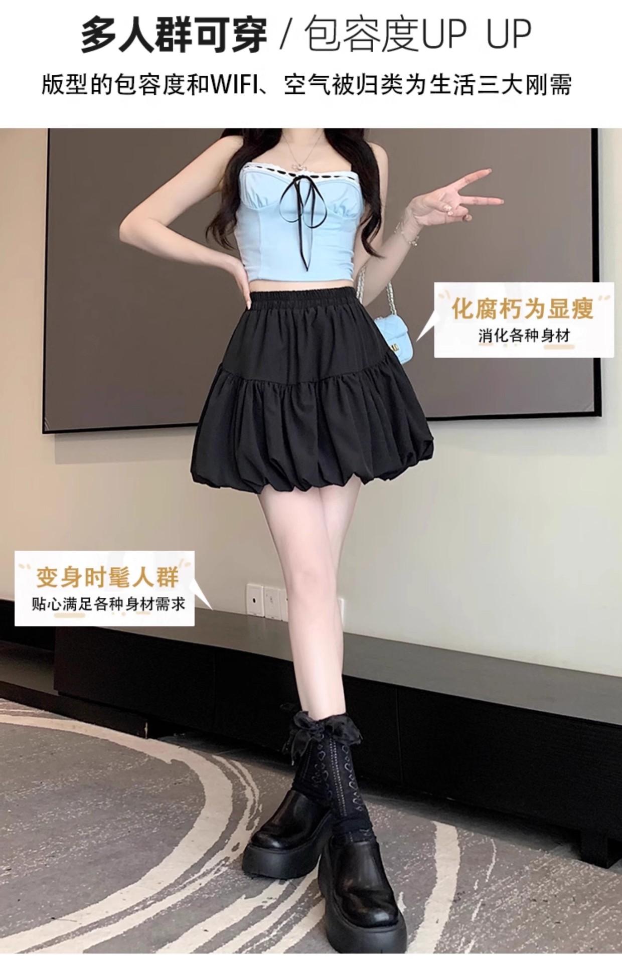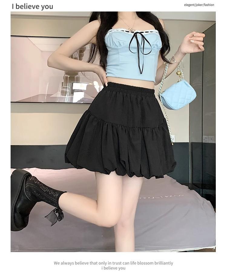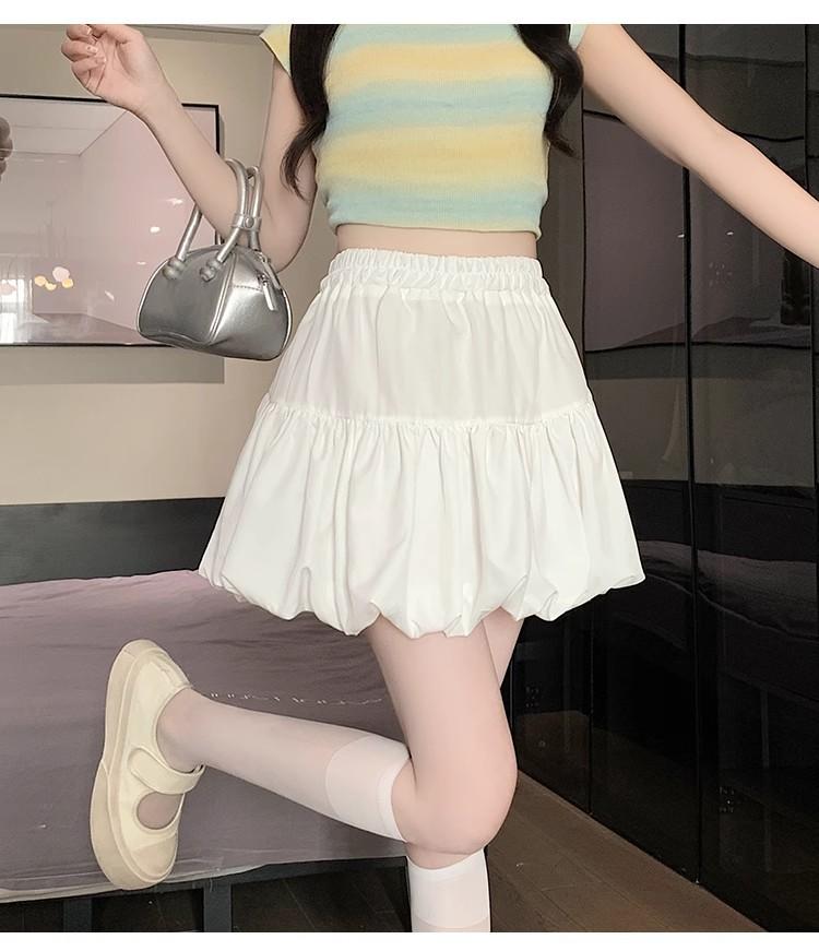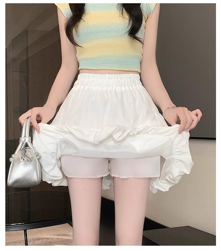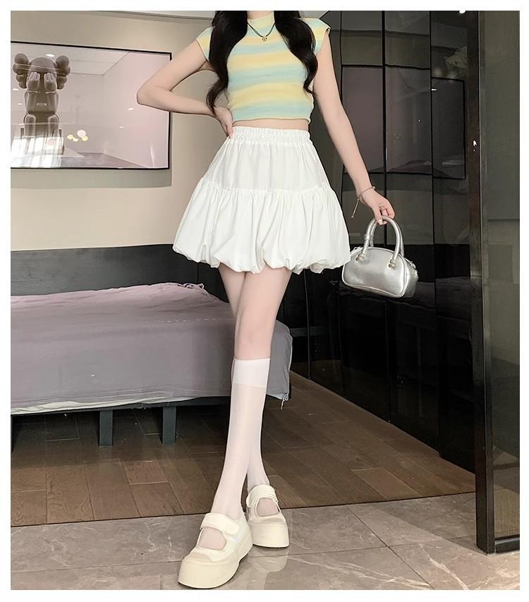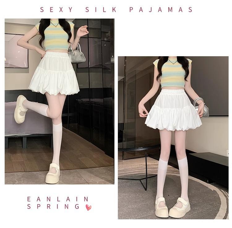 Falda midi blanca mujer 2025 nueva primavera/verano cintura alta moda petite tulipán elástica línea A falda abullonada minifalda