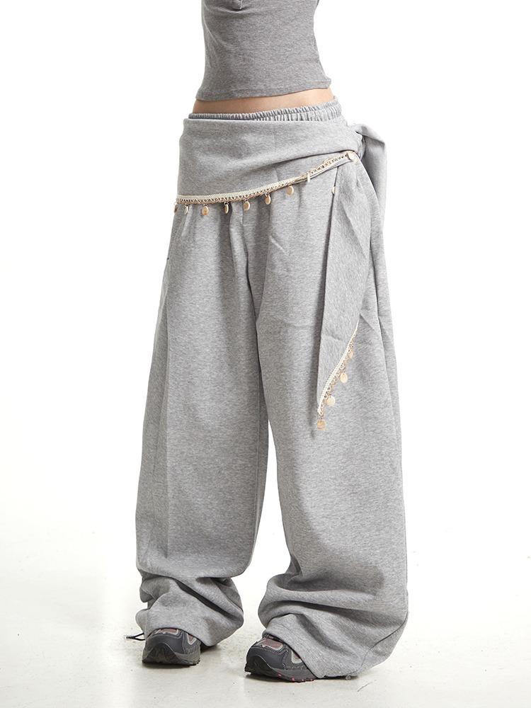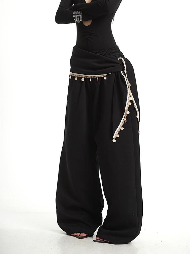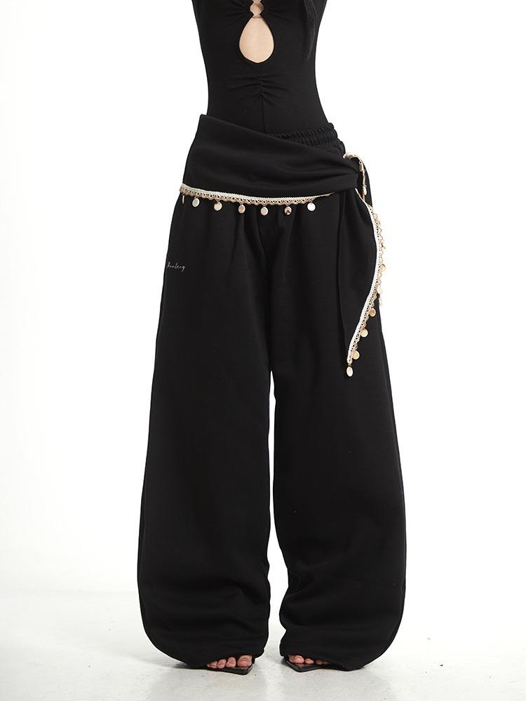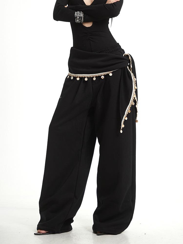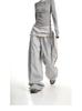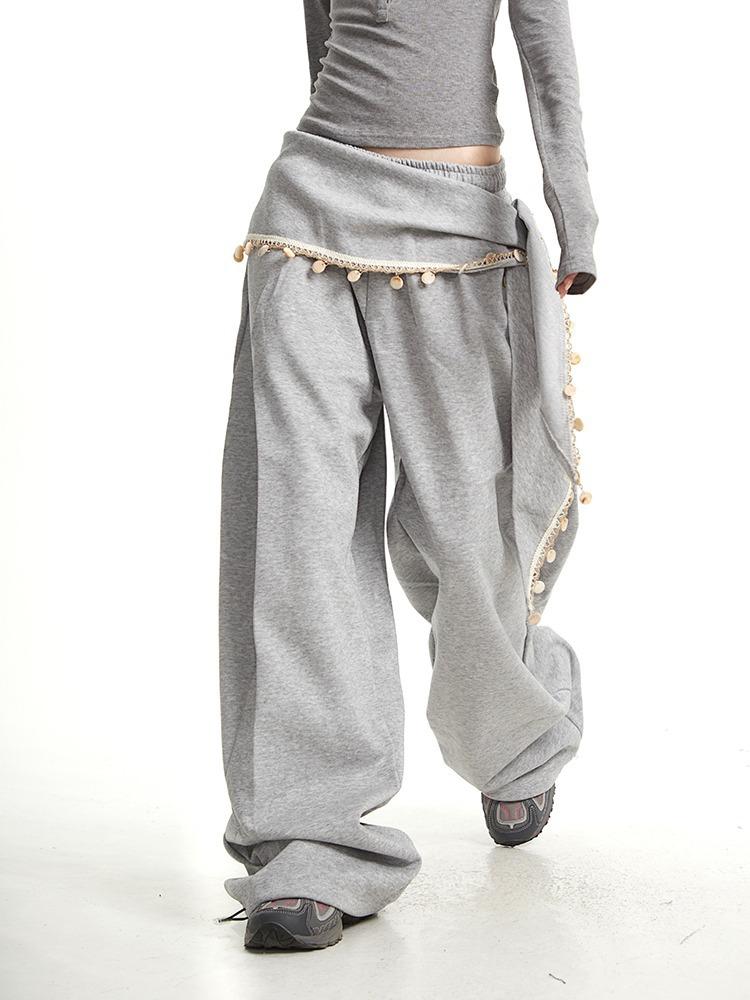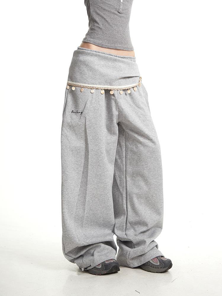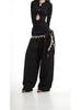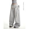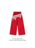 Pantalones largos casuales de encaje estilo americano nuevo con solapa desmontable en el trasero para mujer, pierna recta suelta, pierna ancha, pantalones casuales