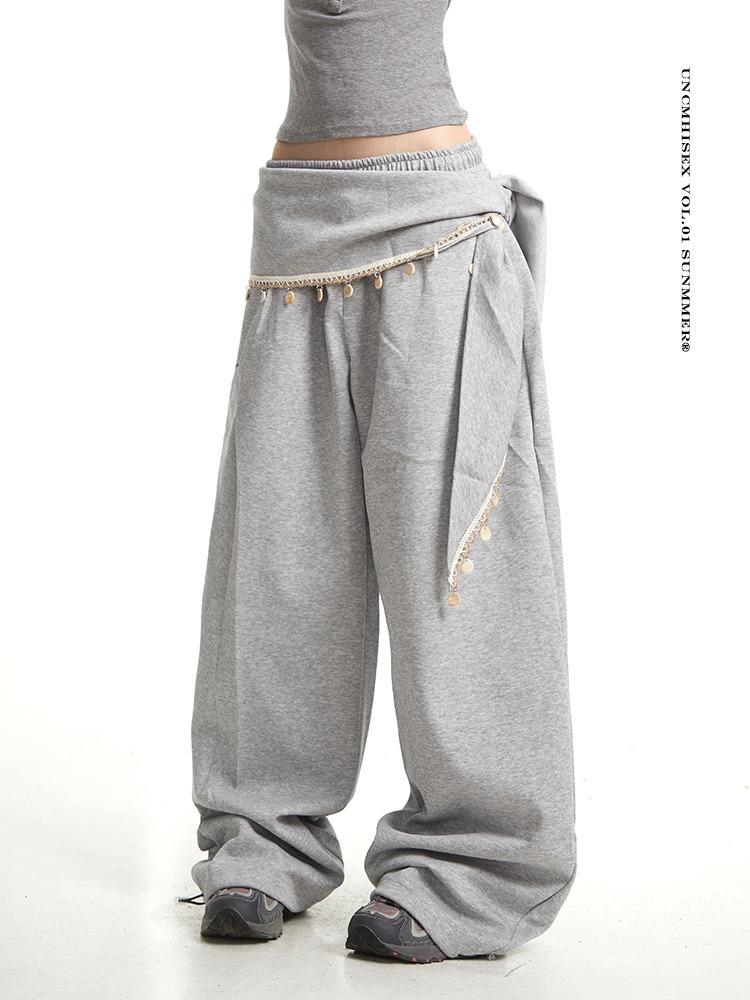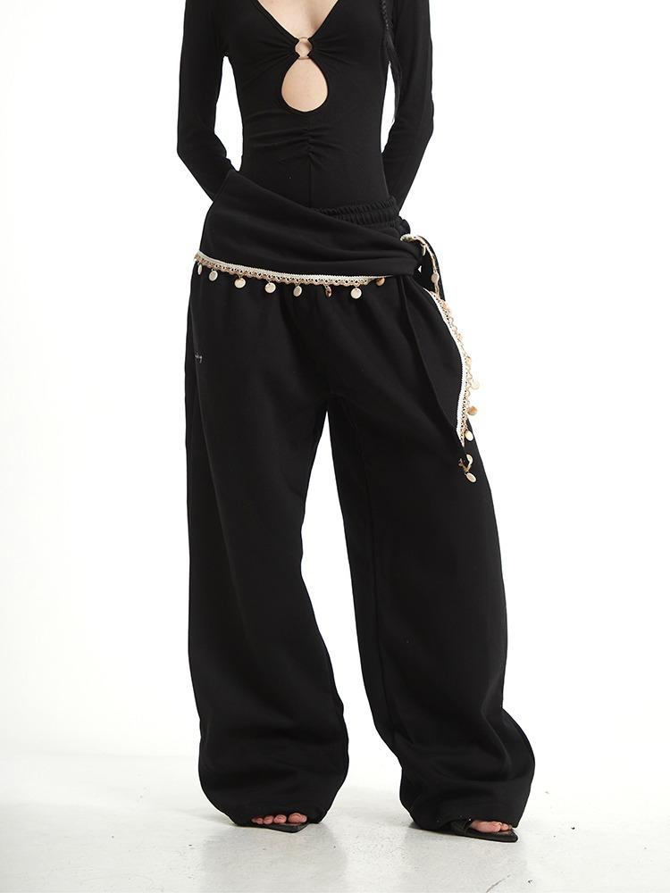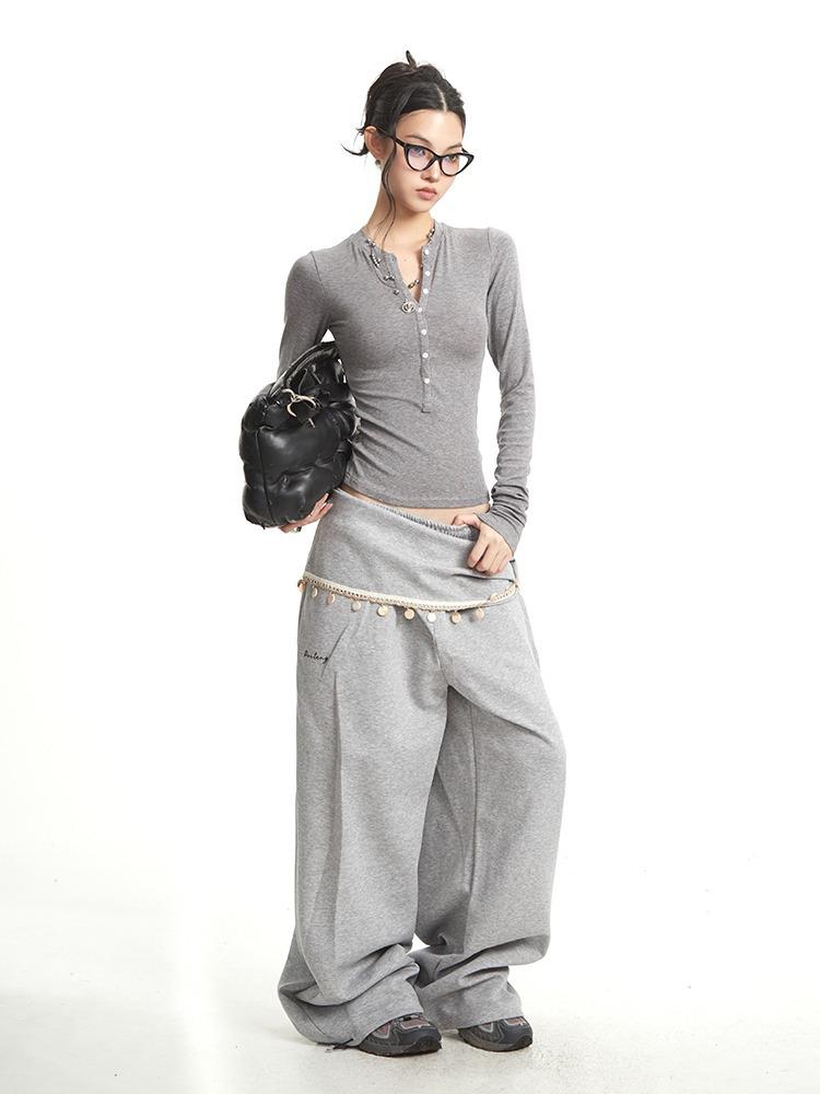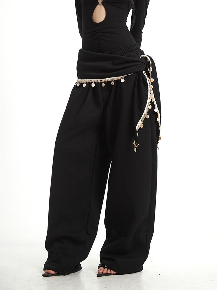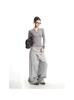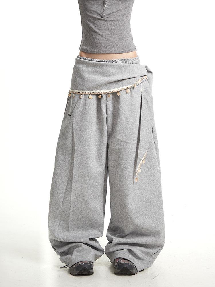 Pantalones largos casuales de encaje estilo americano nuevo con solapa desmontable en el trasero para mujer, pierna recta suelta, pierna ancha, pantalones casuales