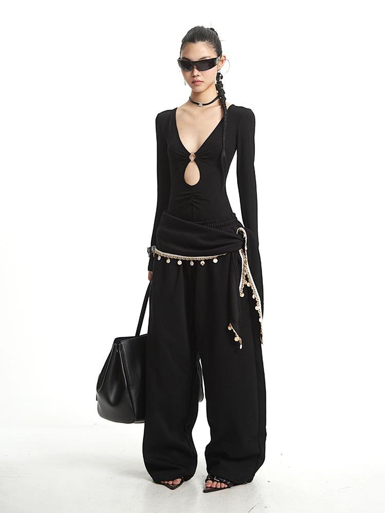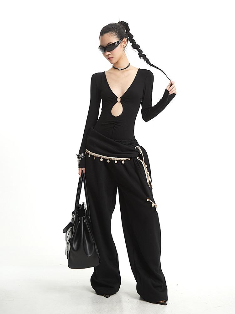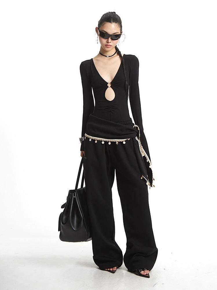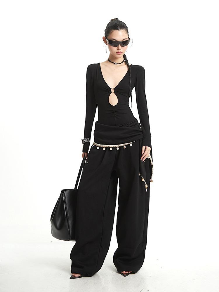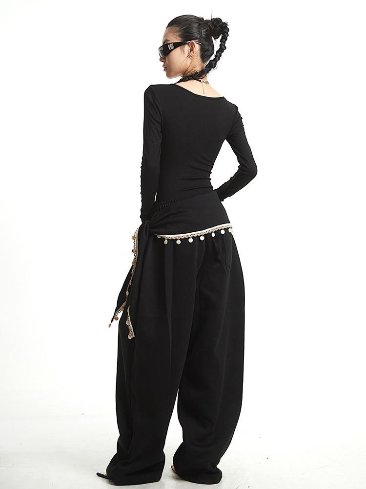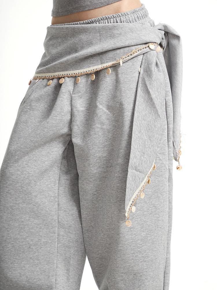 Pantalones largos casuales de encaje estilo americano nuevo con solapa desmontable en el trasero para mujer, pierna recta suelta, pierna ancha, pantalones casuales